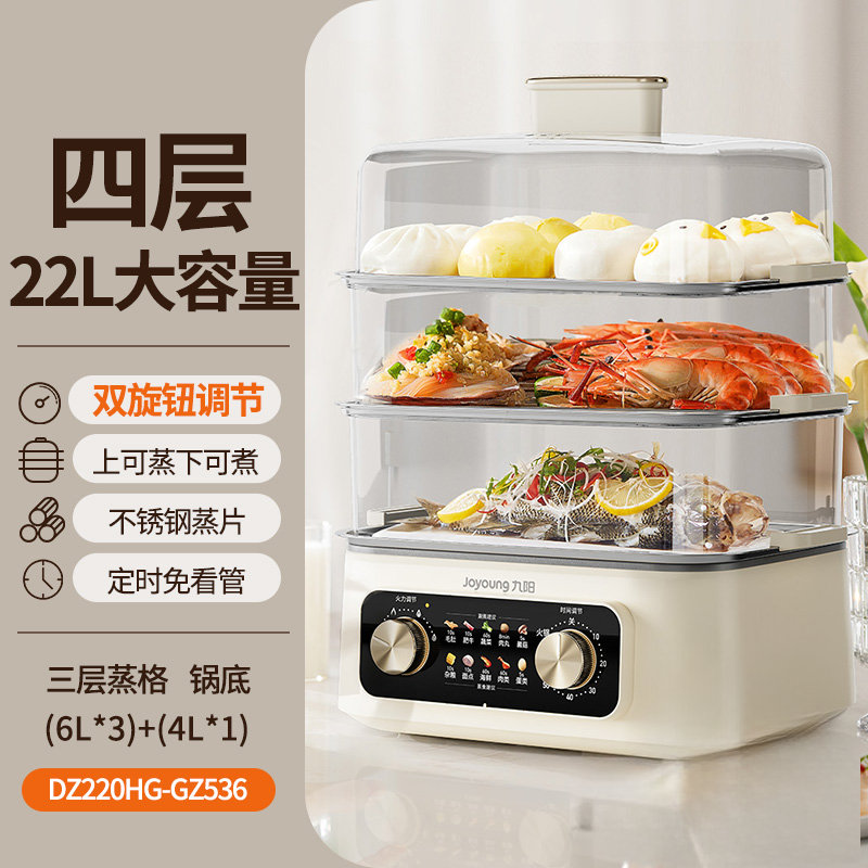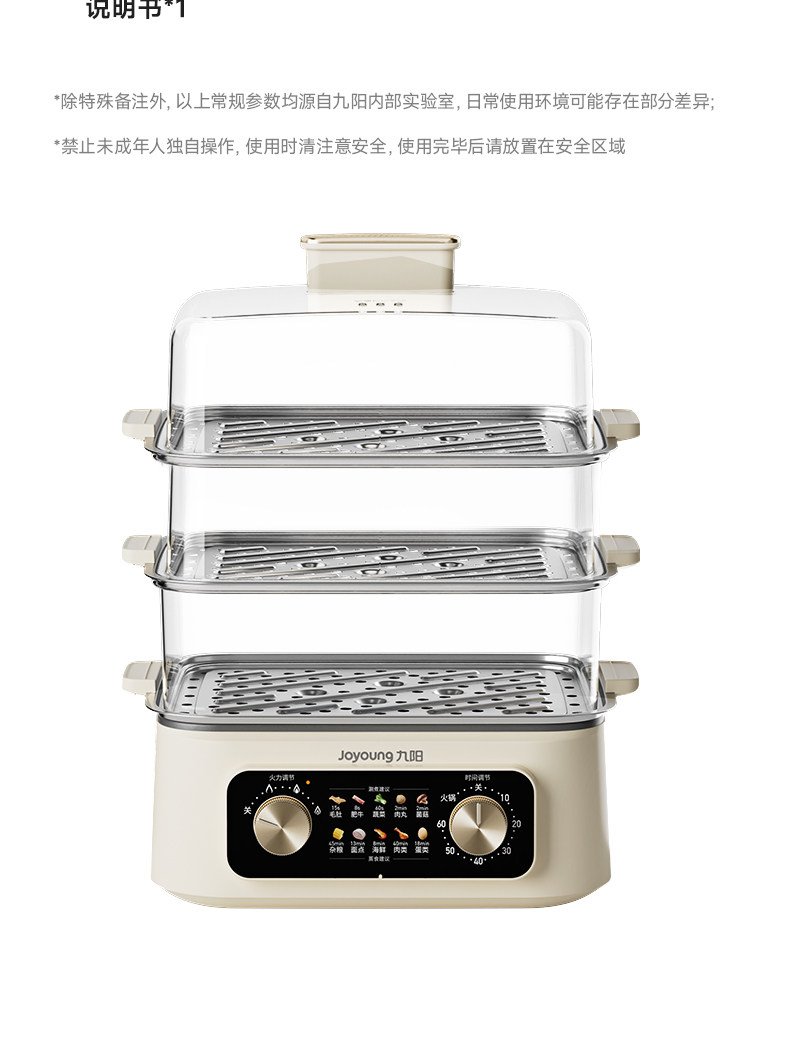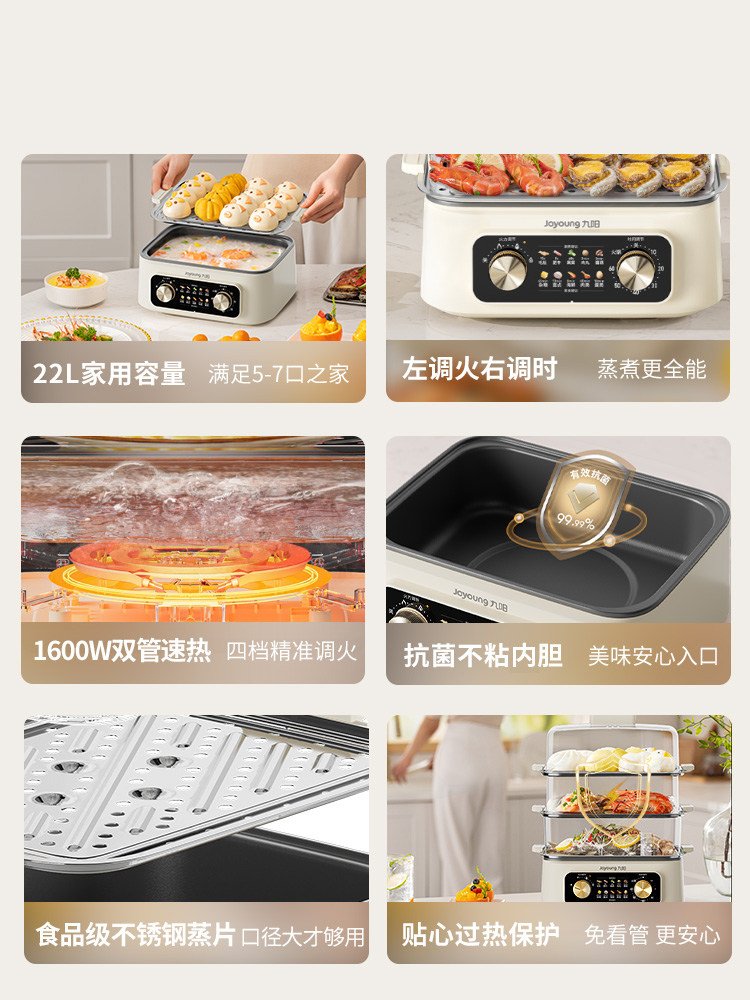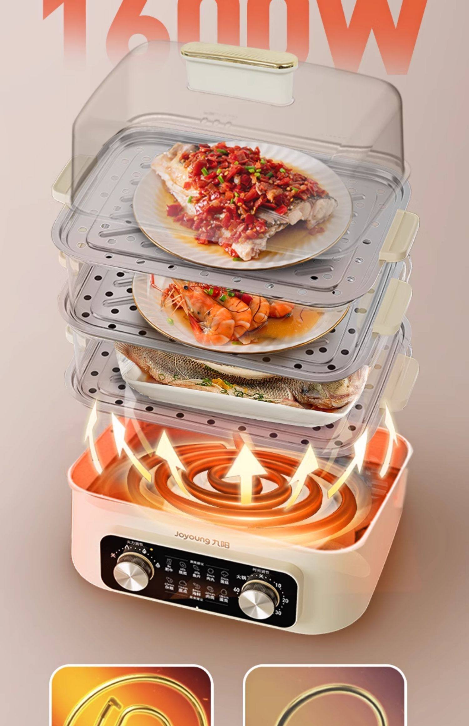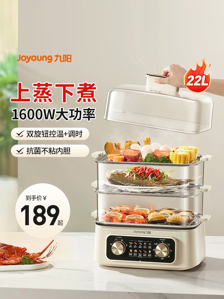 九阳电蒸锅家用多功能三层蒸煮炖一体锅多层早餐机蒸箱大容量