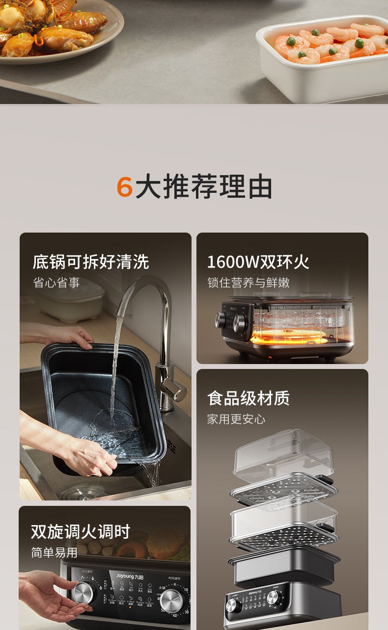 九阳电蒸锅家用2024新款多功能多层大容量蒸煮一体锅可拆官方正品