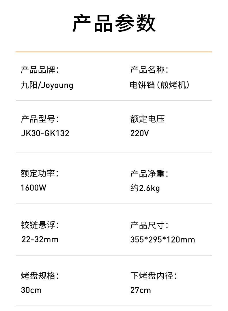 九阳电饼铛家用双面加热2025新款加深加大烙饼煎饼锅官方烹饪机 数量
