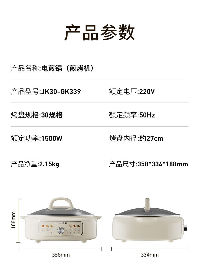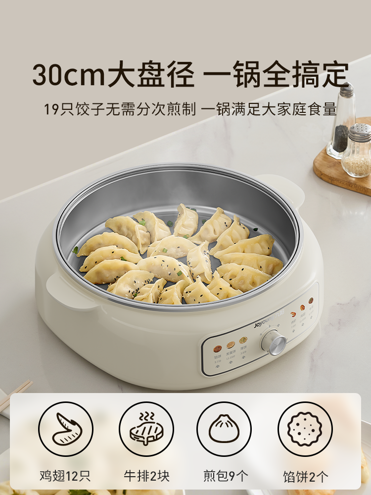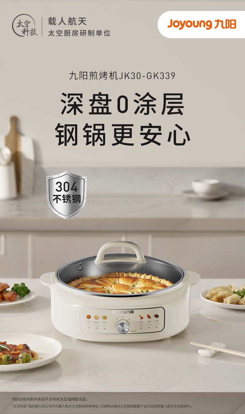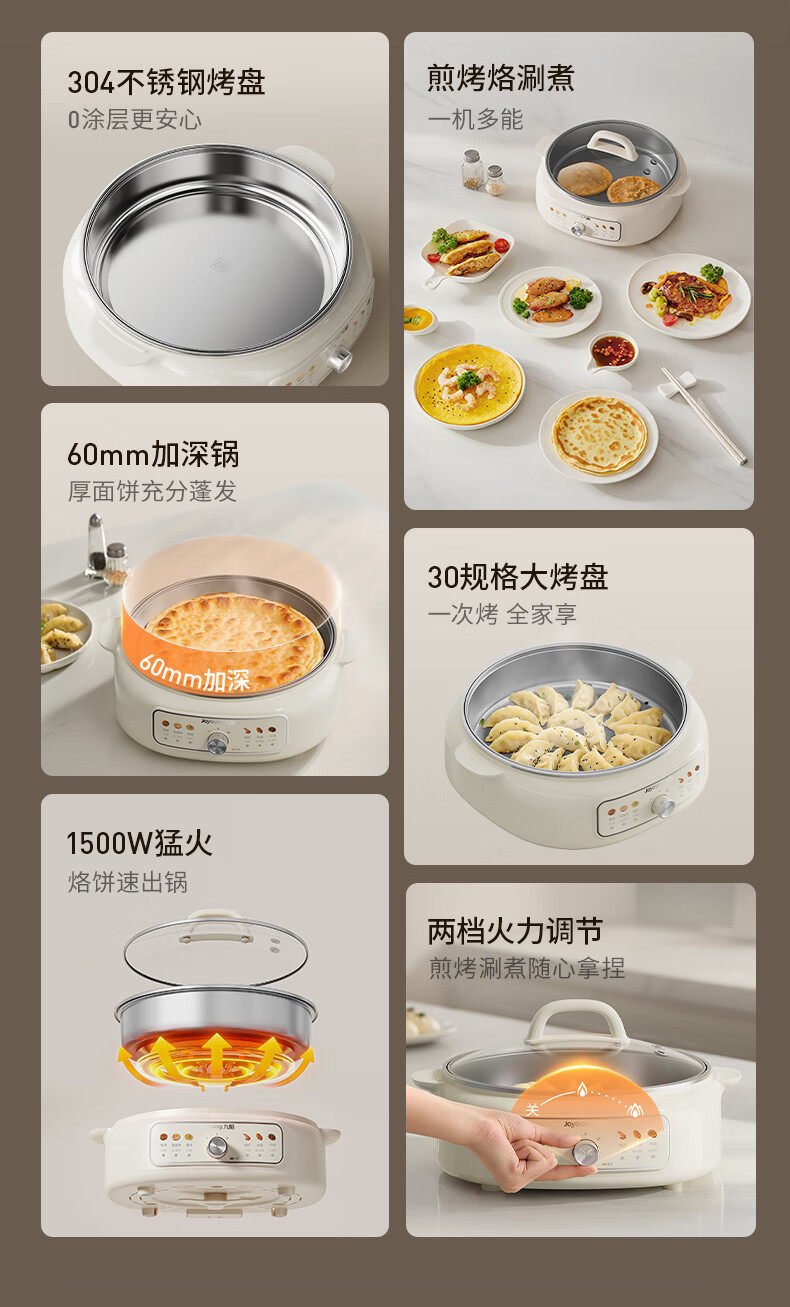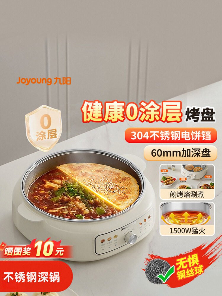 九阳电饼铛家用0涂层不锈钢加深电火锅煮锅烙煎饼一体锅2025新款 数量