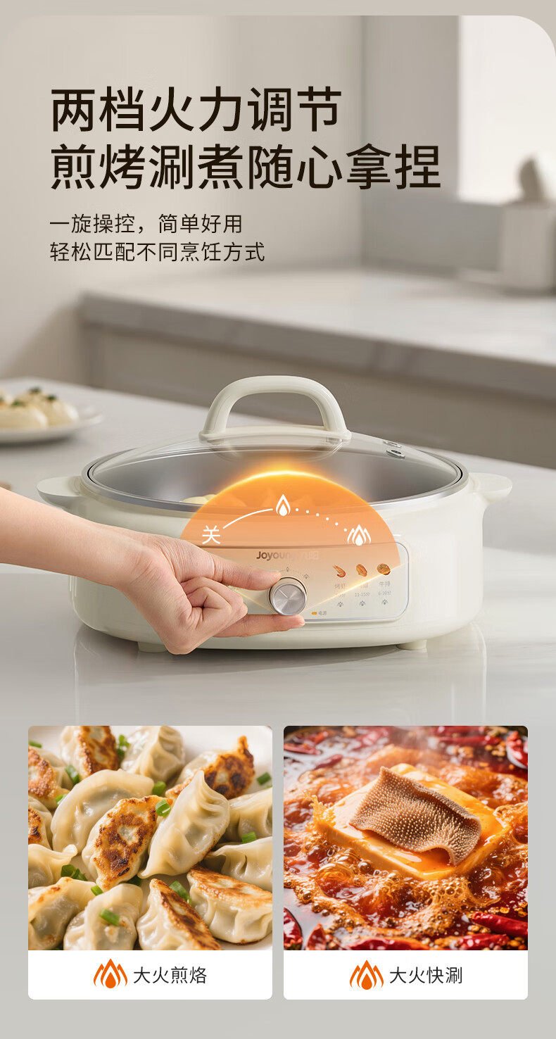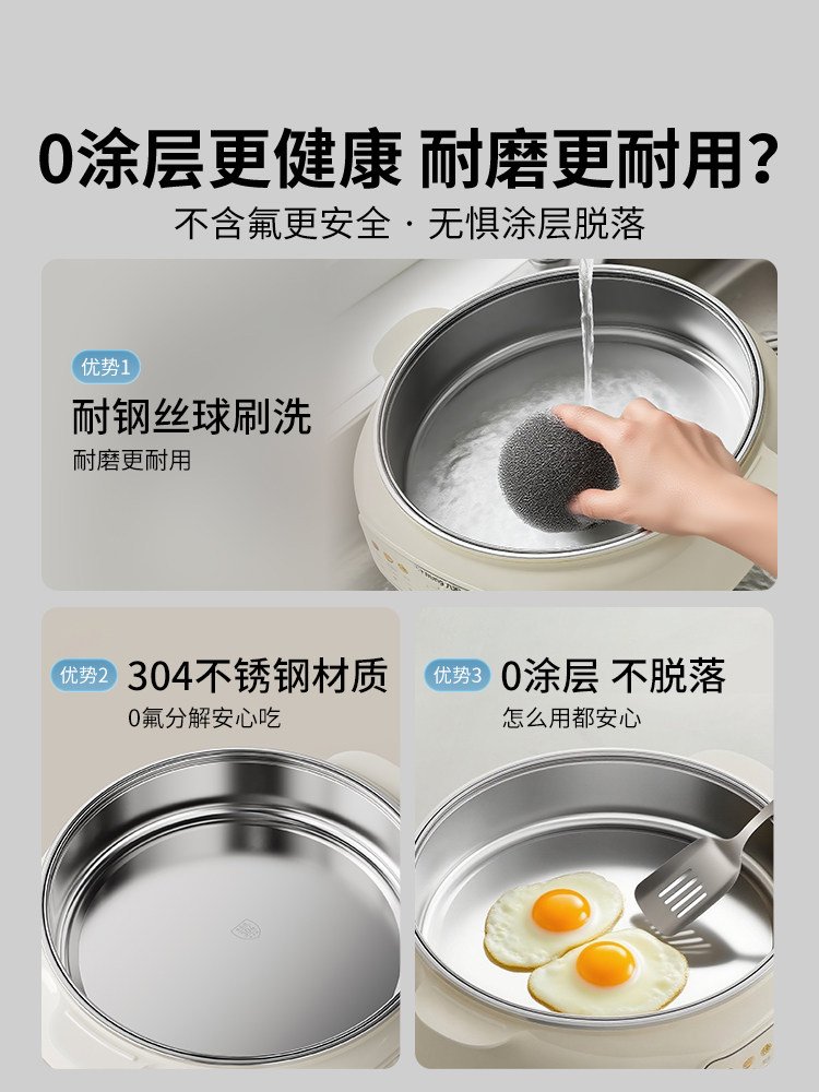 九阳电饼铛家用0涂层不锈钢加深电火锅煮锅烙煎饼一体锅2025新款