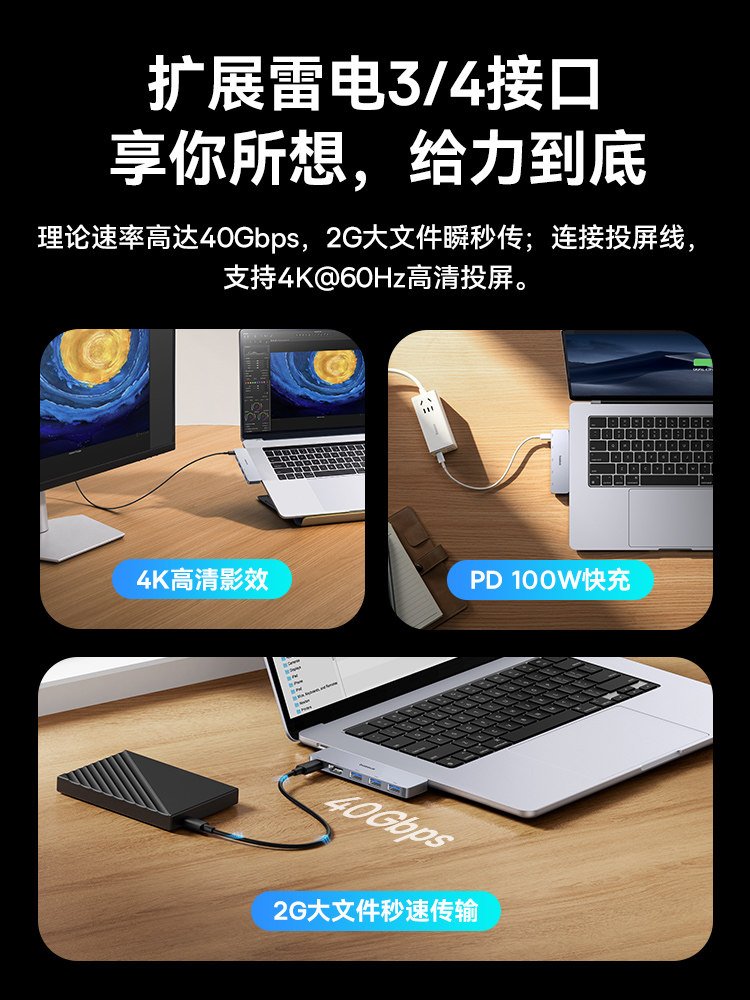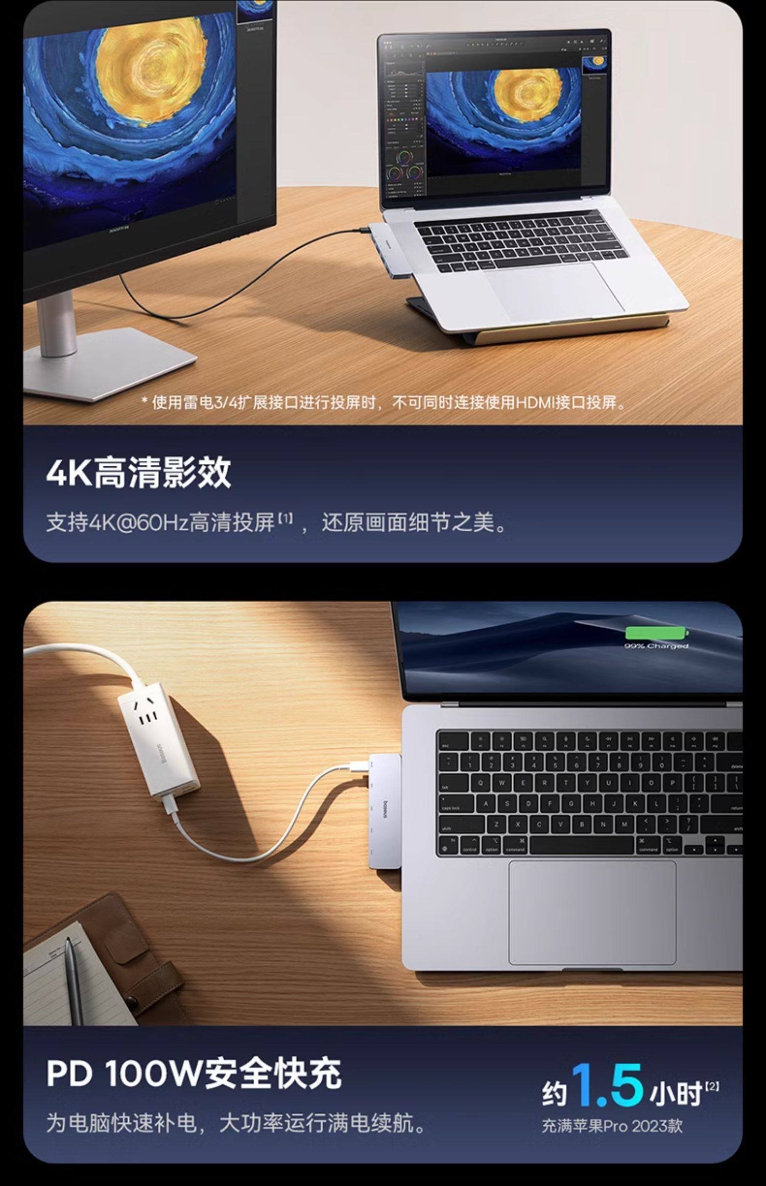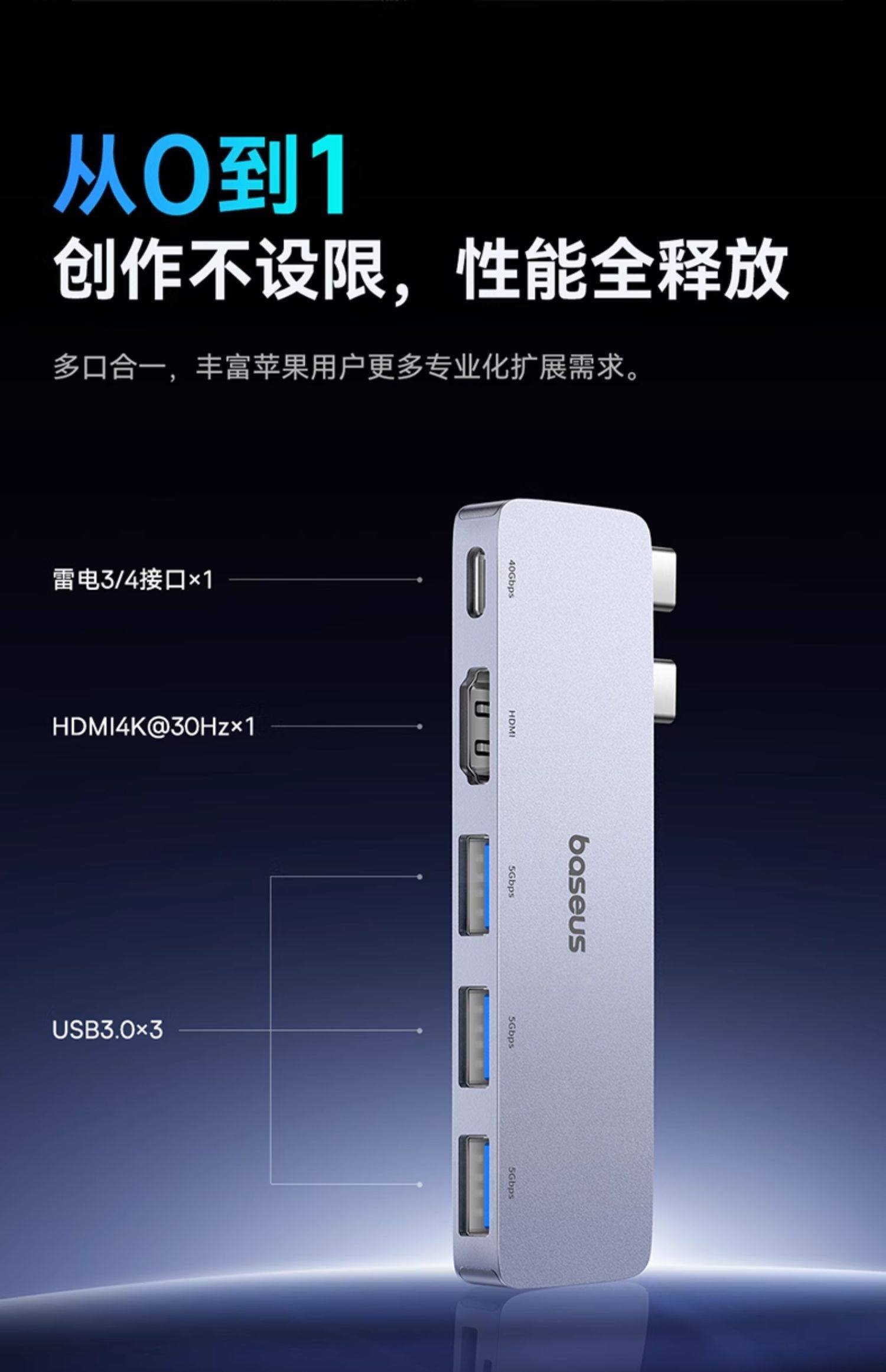 倍思拓展坞扩展typec集分线器适用苹果mac电脑air转接头macbook笔记本usb雷电4接口转换器hub