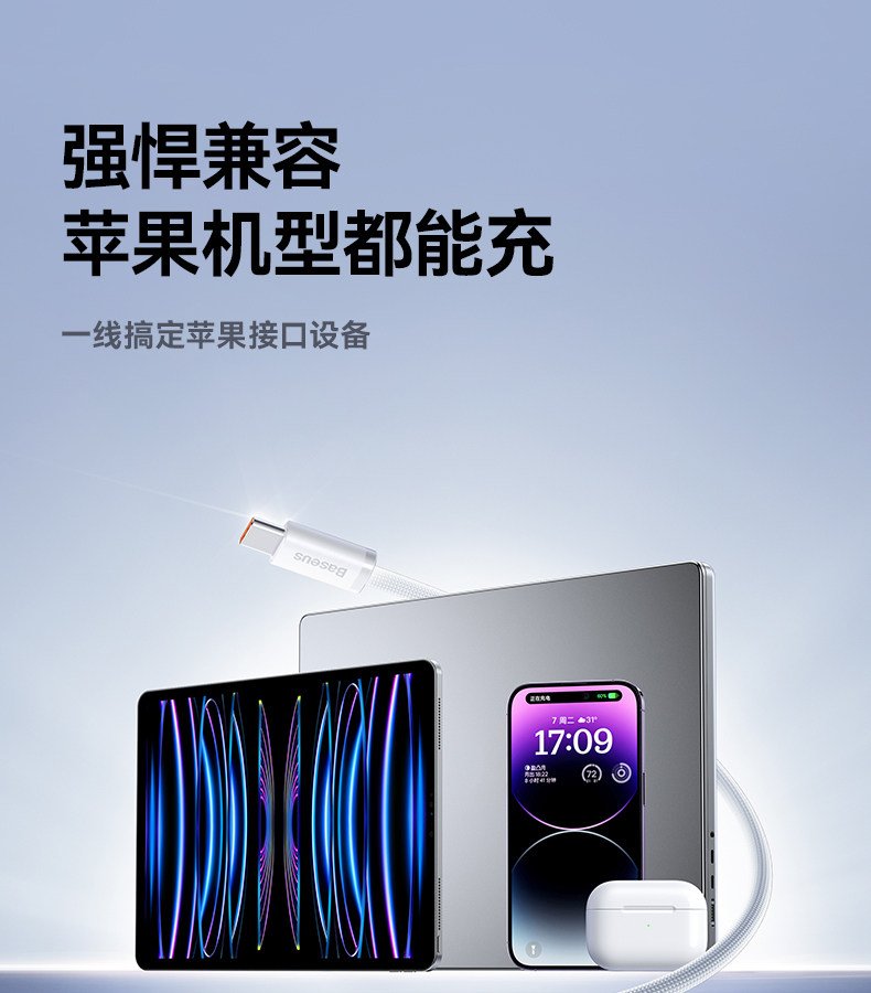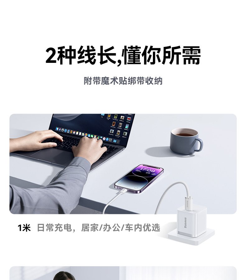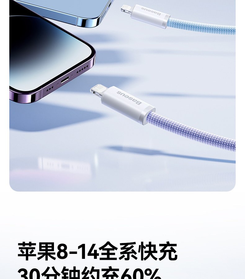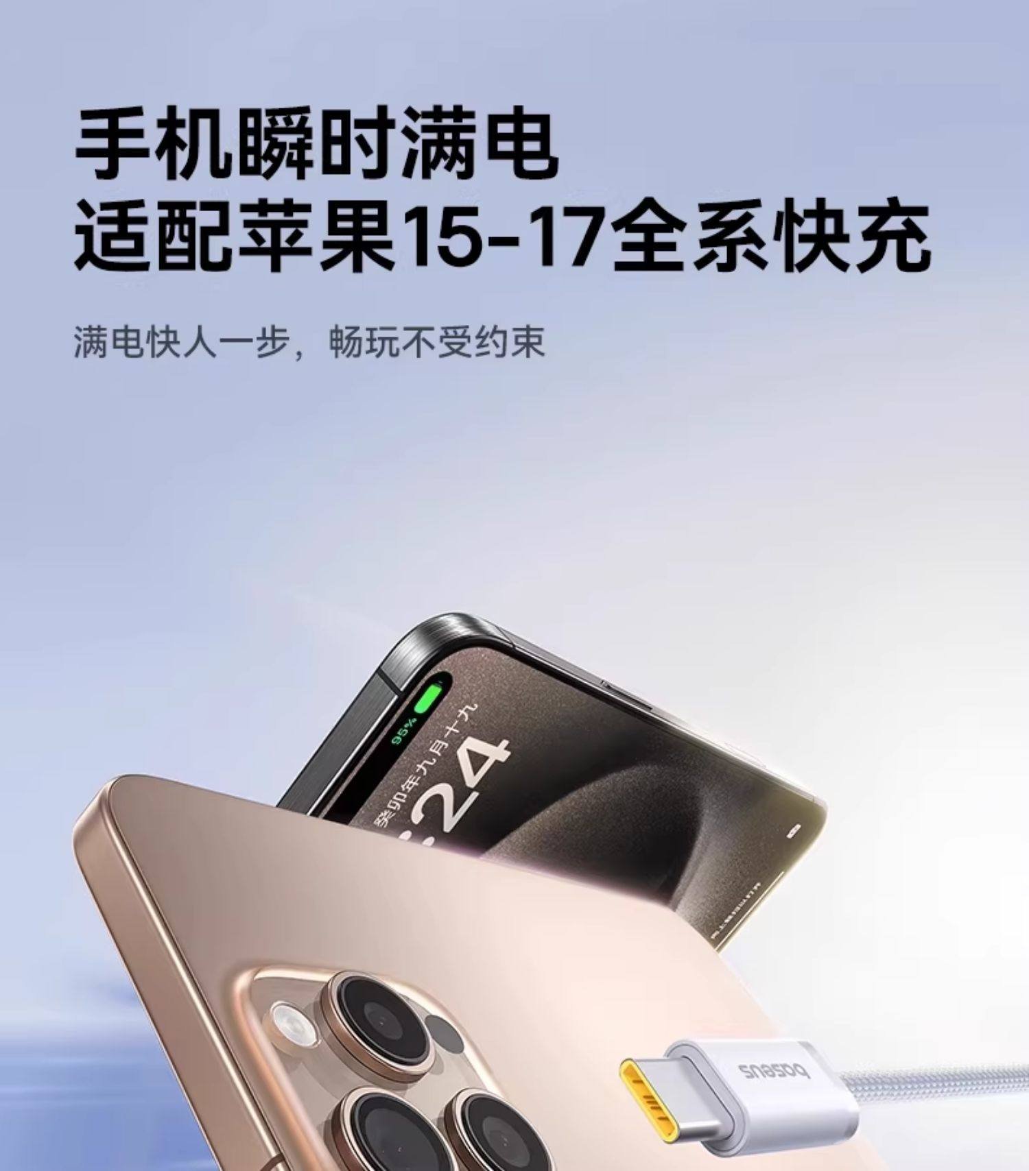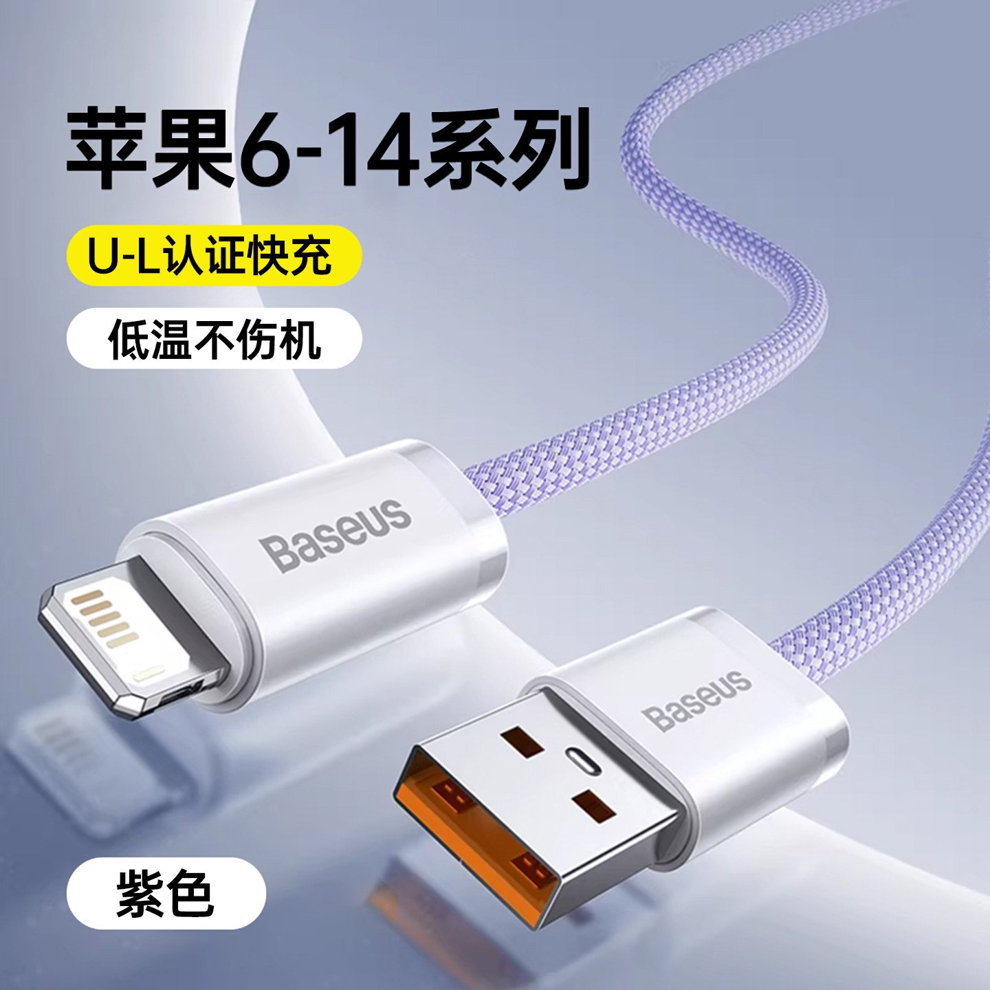 倍思适用苹果14充电线iphone13数据线快充17pro器12手机16车载USB15promax平板8ipad11typec转lightning2米长