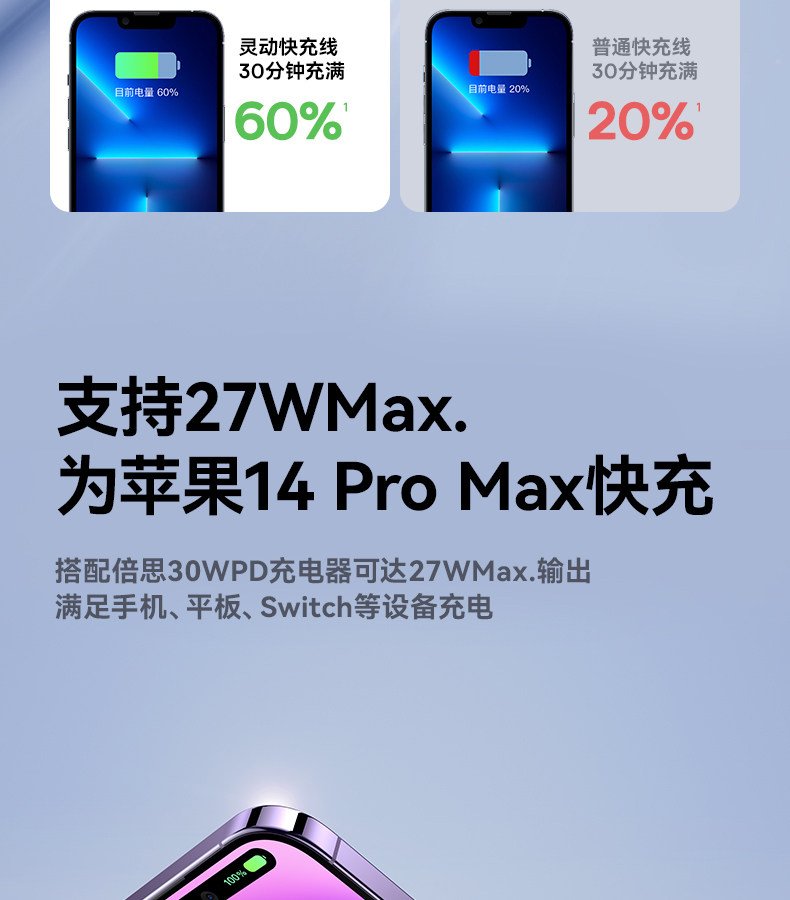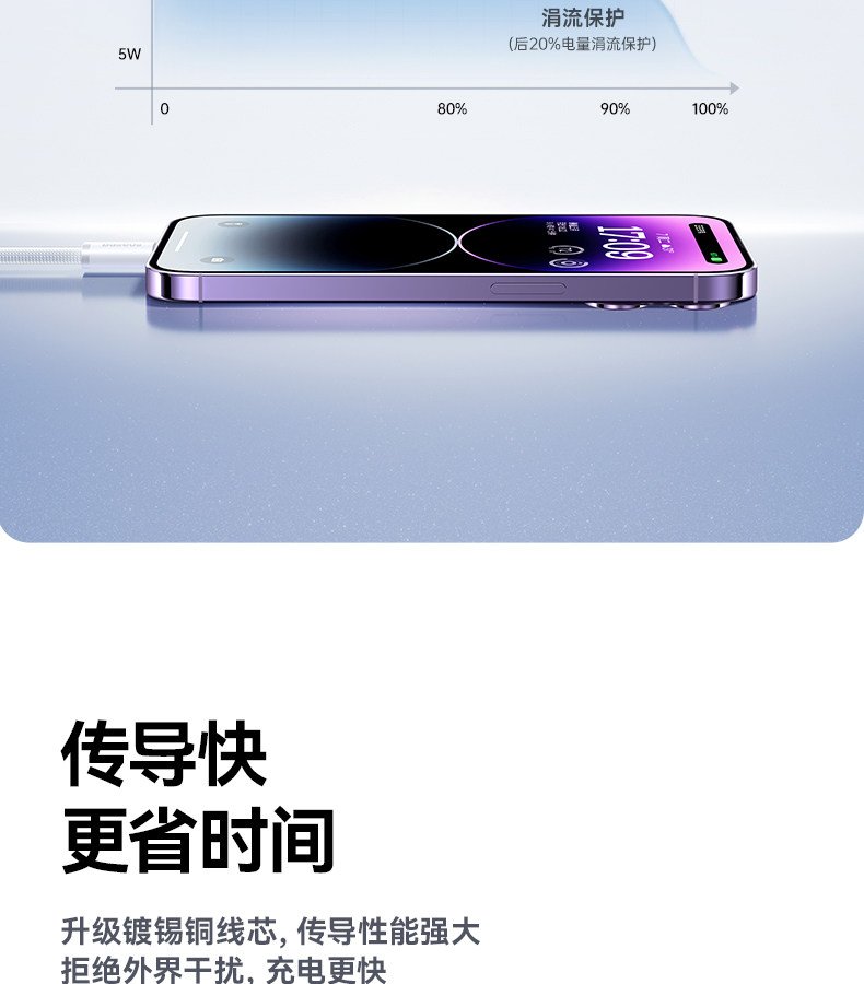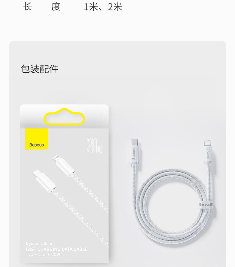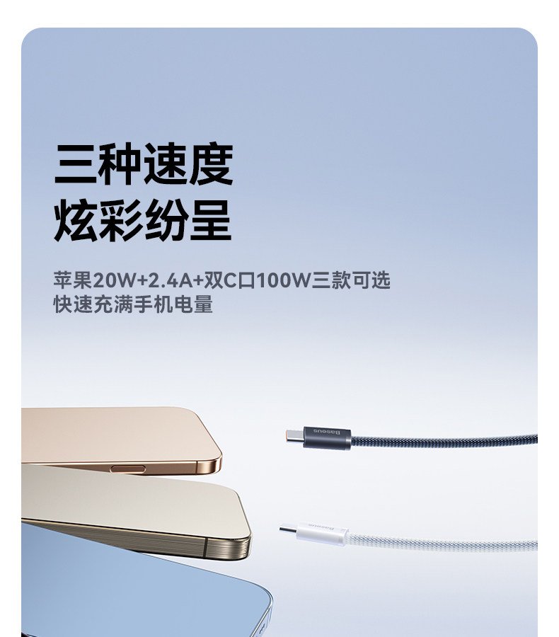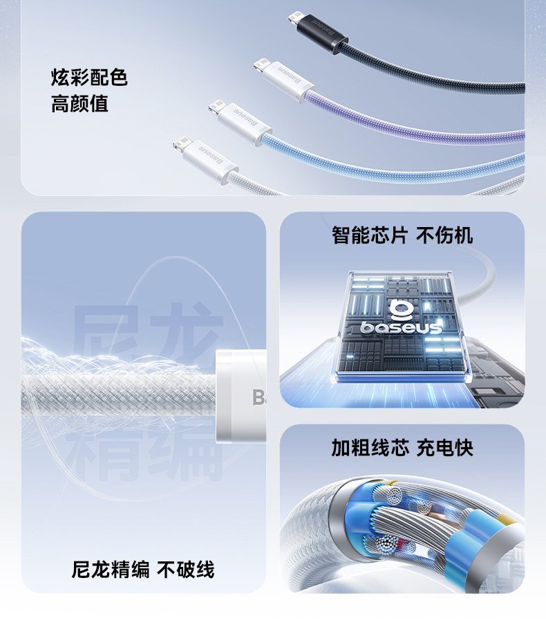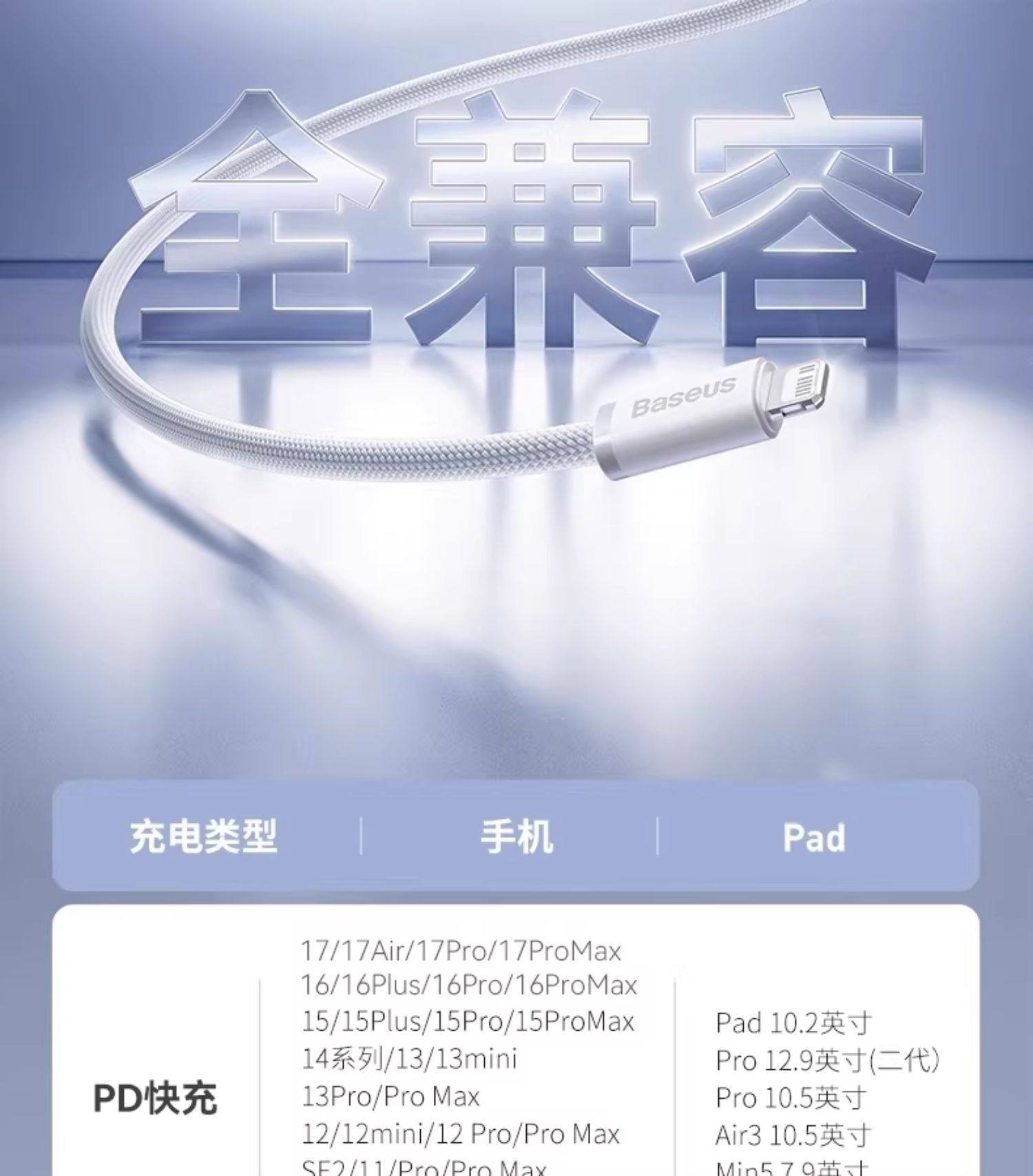 倍思适用苹果14充电线iphone13数据线快充17pro器12手机16车载USB15promax平板8ipad11typec转lightning2米长