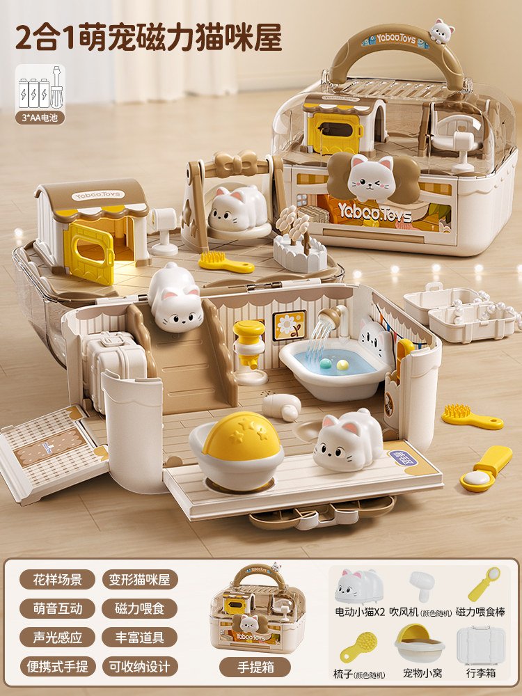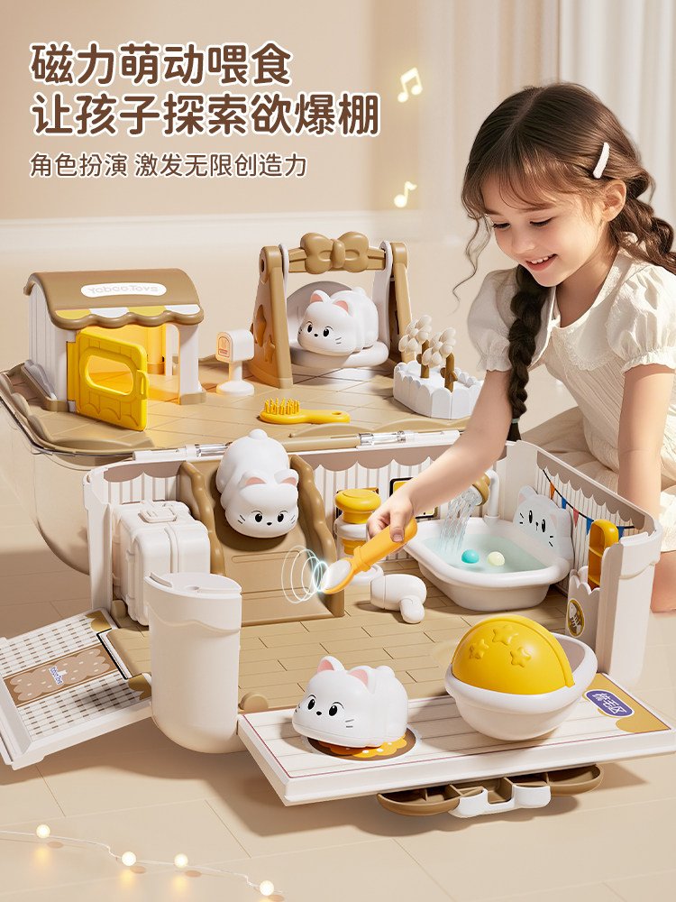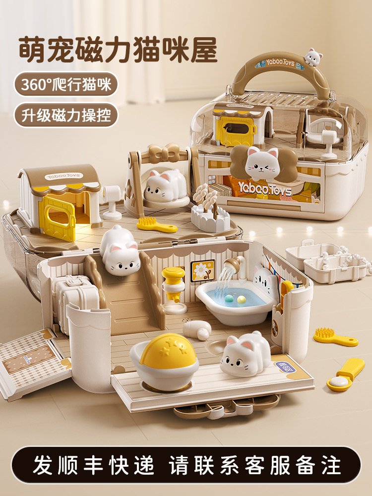儿童玩具女孩子磁力过家家女童公主新年3猫咪娃娃屋生日礼物
