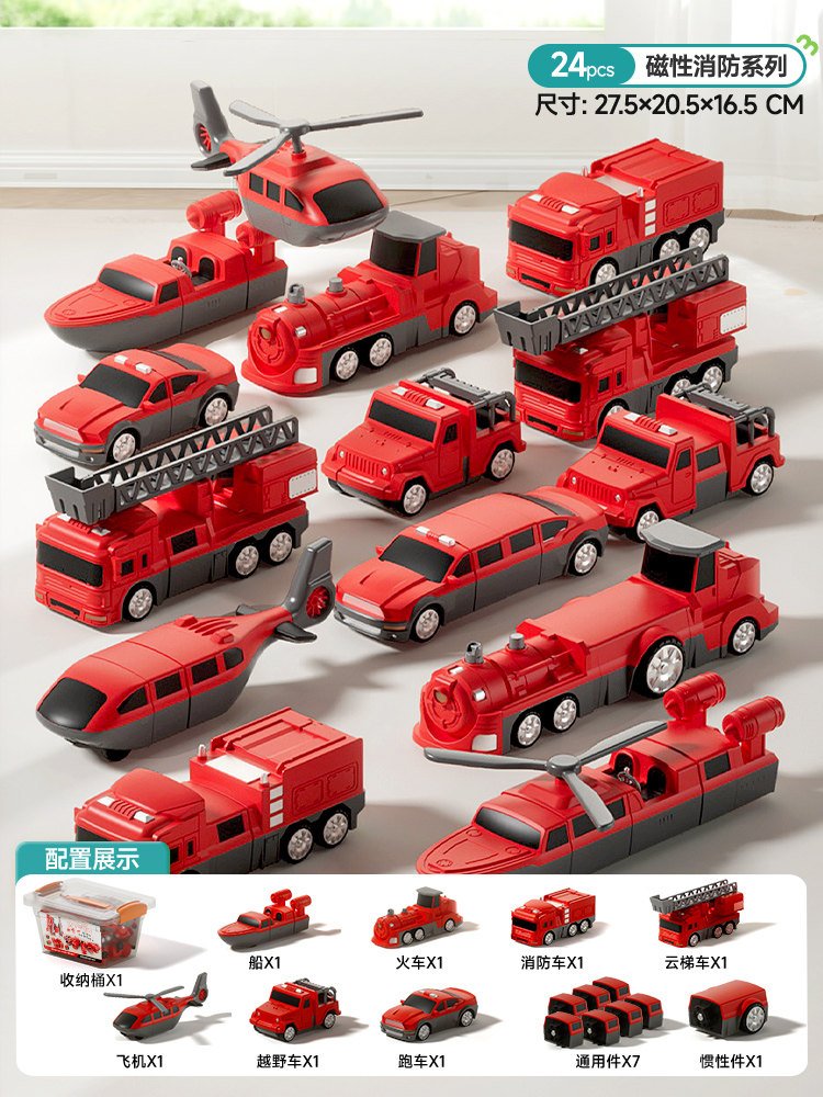 磁力拼装工程车【100+玩法】24件套「收纳桶」消防