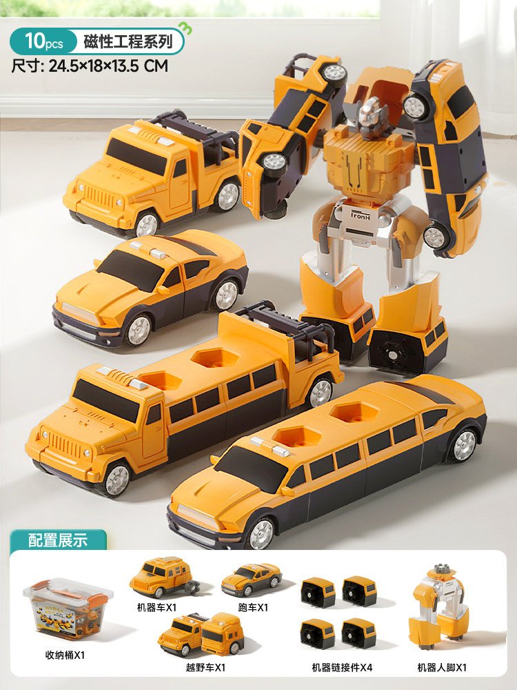 工程款-变形磁力机器人【30+玩法】10件套「收纳桶」
