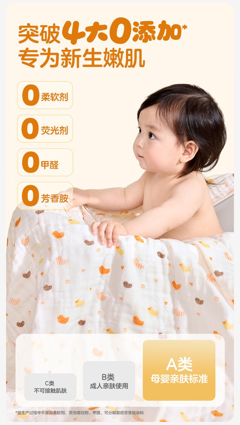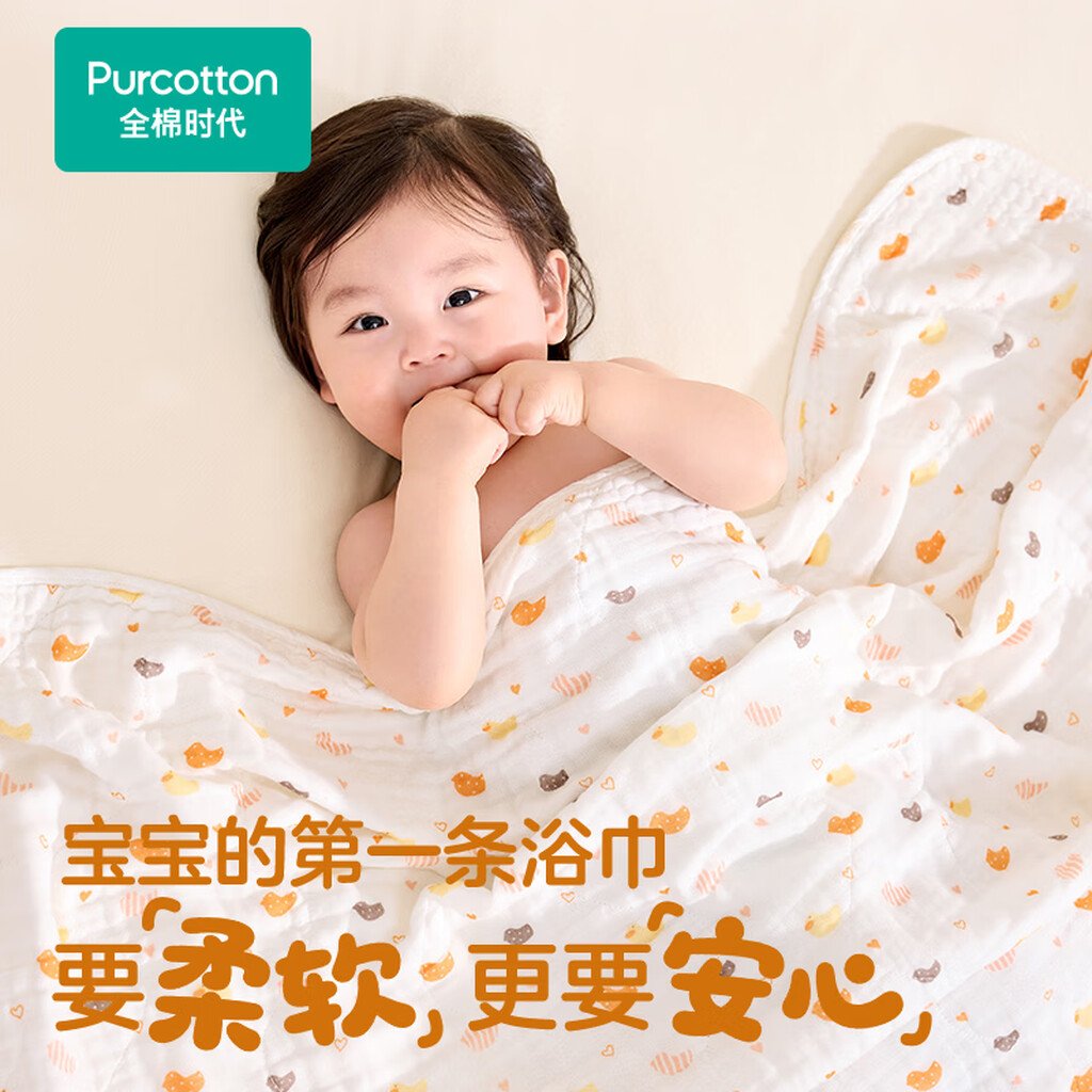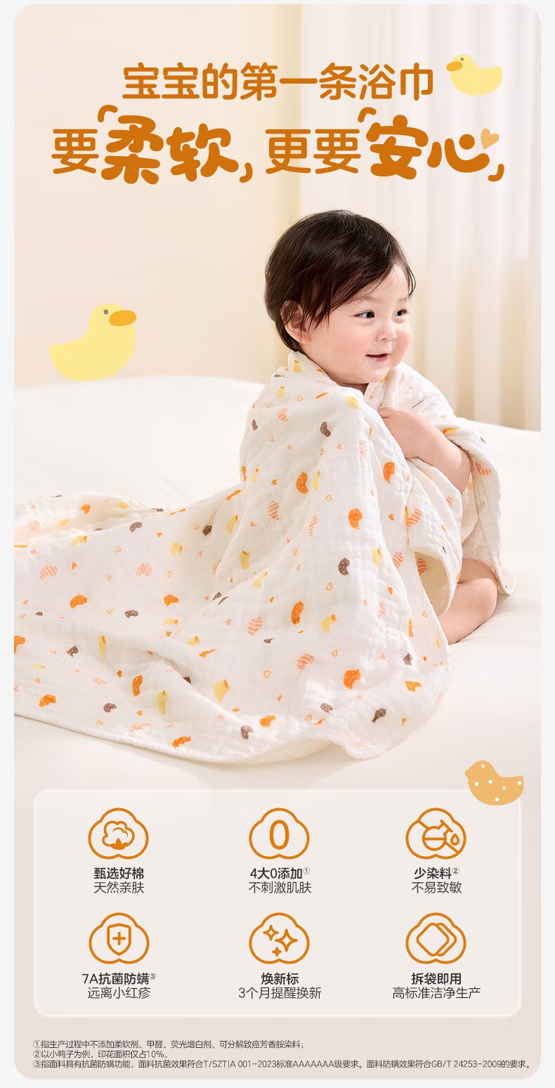全棉时代婴儿浴巾纯棉纱布浴巾宝宝新生儿超柔亲肤吸水洗澡巾儿童大毛巾 【经典款 六层柔纱】小鸭子 95*95cm 数量