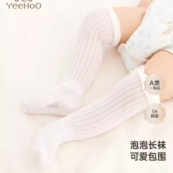 英氏新生婴儿袜子夏季薄款女宝可爱过膝长袜新款夏天宝宝白色袜子