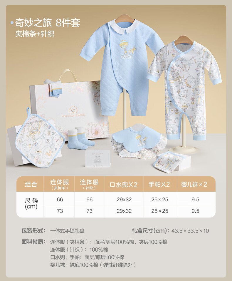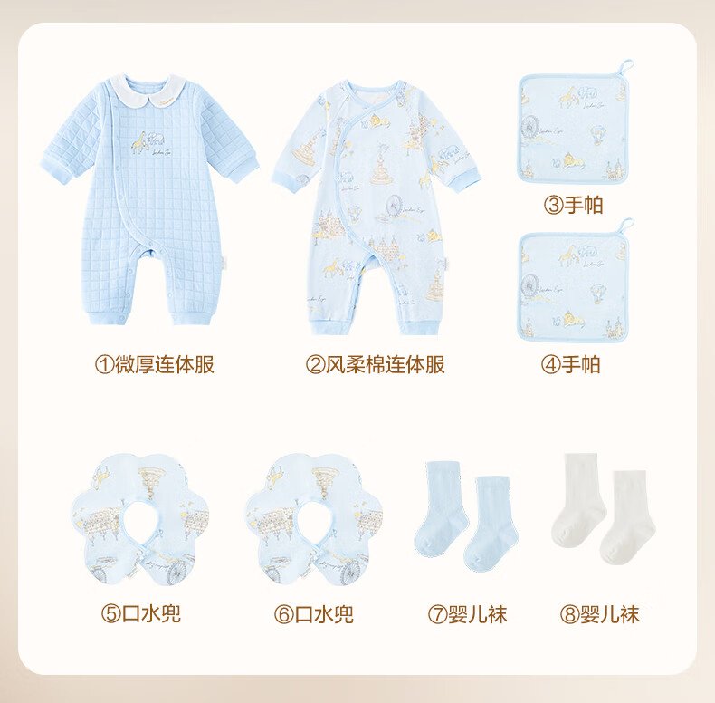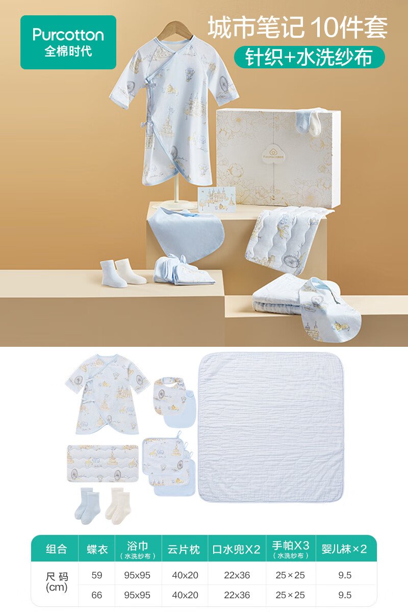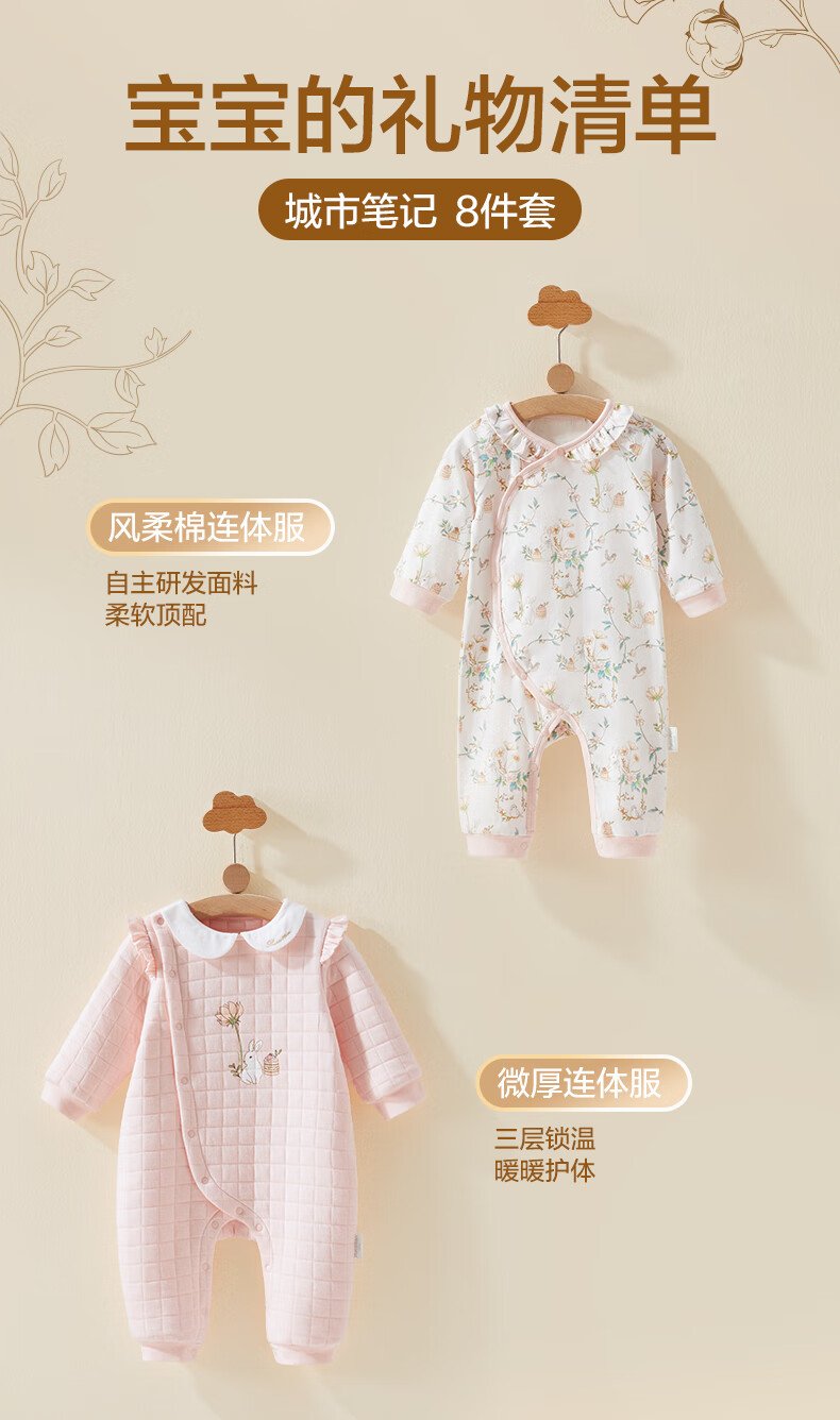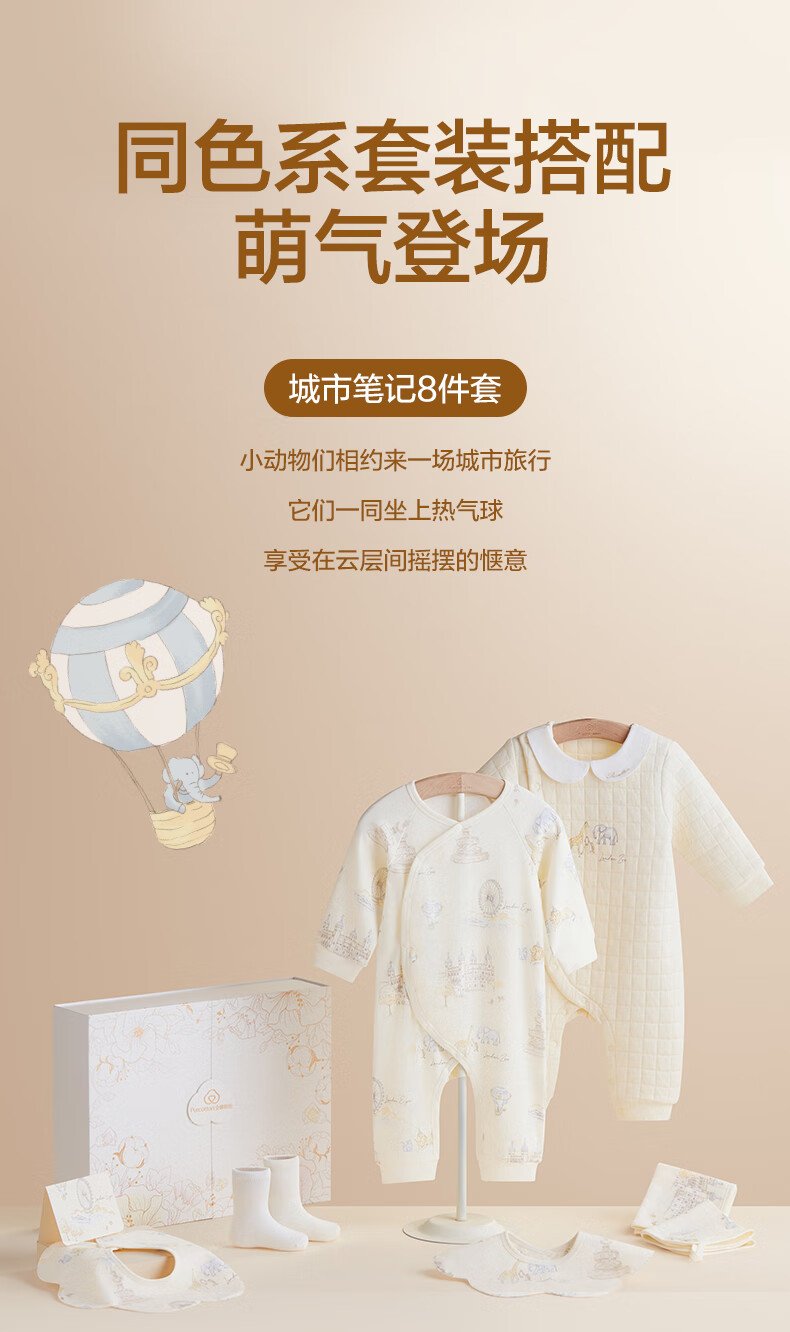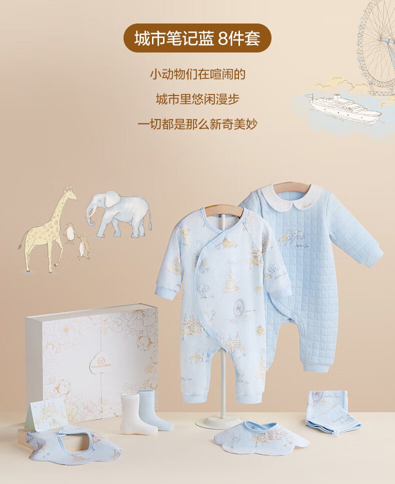 全棉时代婴儿礼盒新生儿见面礼宝宝满月礼物连体衣童装待产包衣服秋冬59码 【秋冬款-8件】城市笔记 (手提袋) 66cm 适合3-6个月
