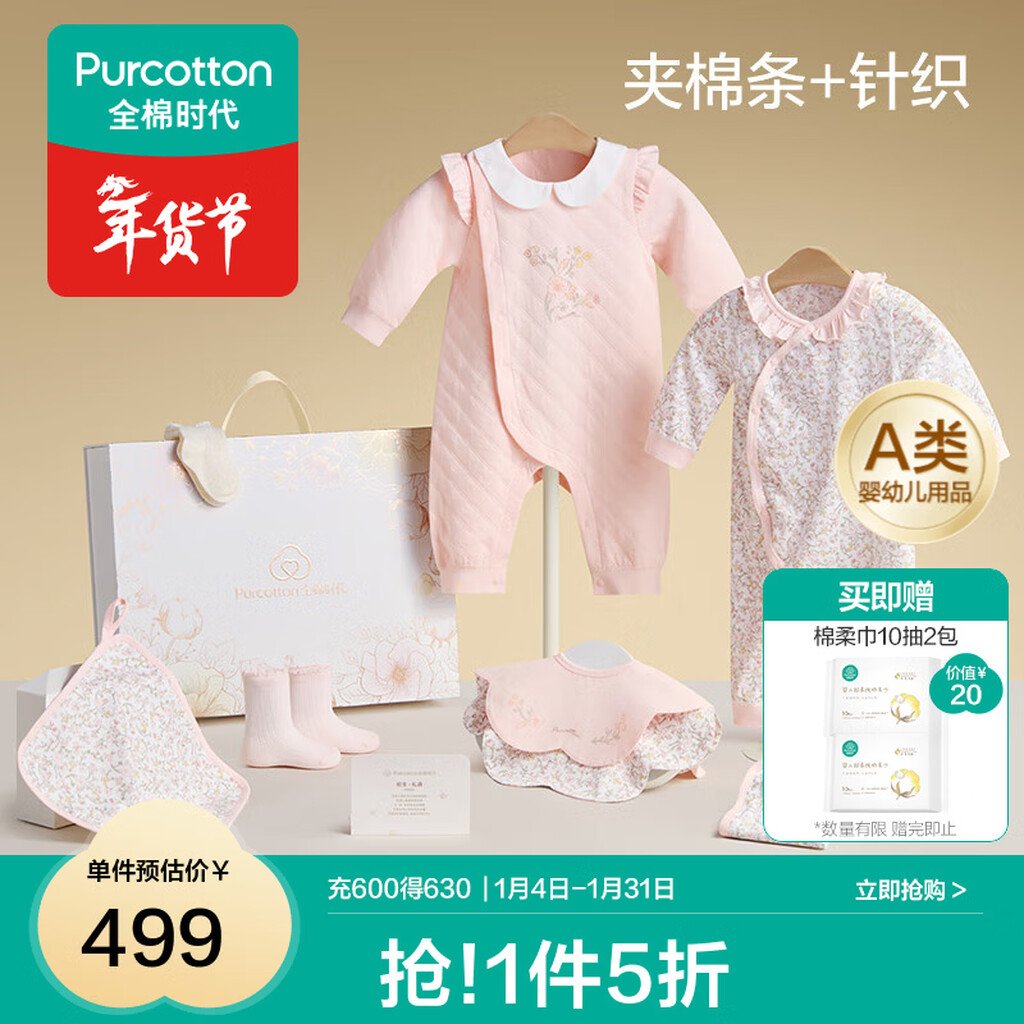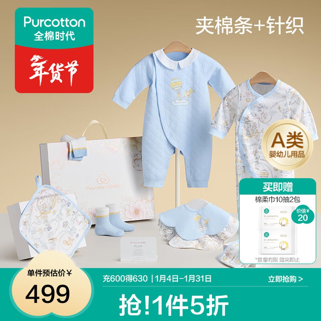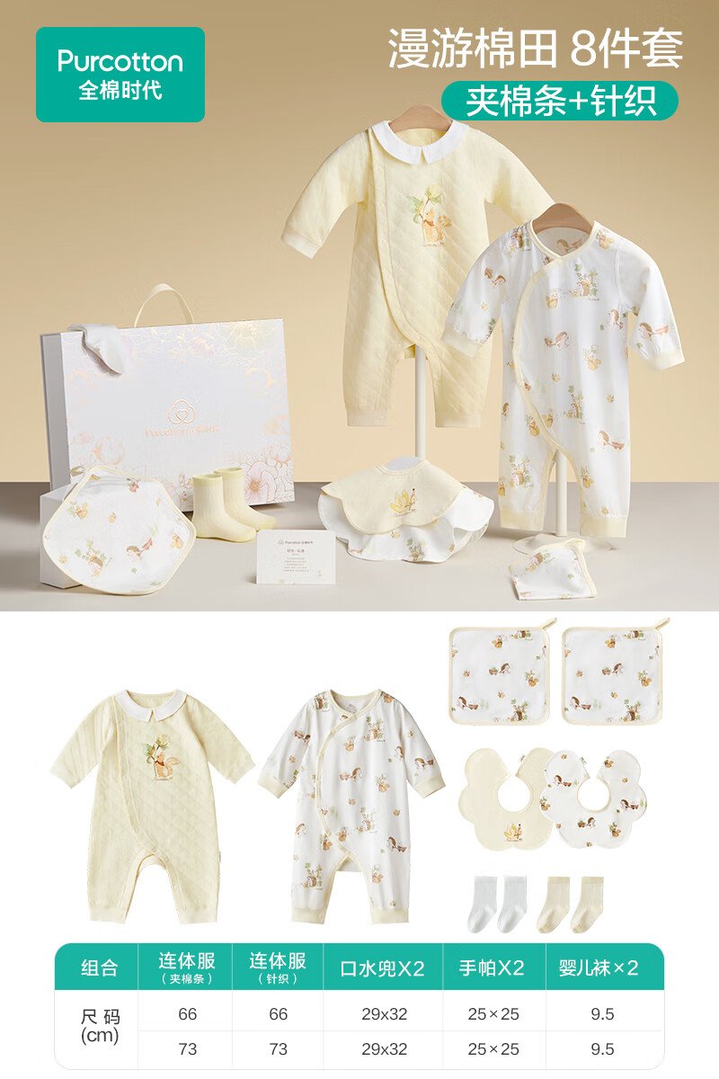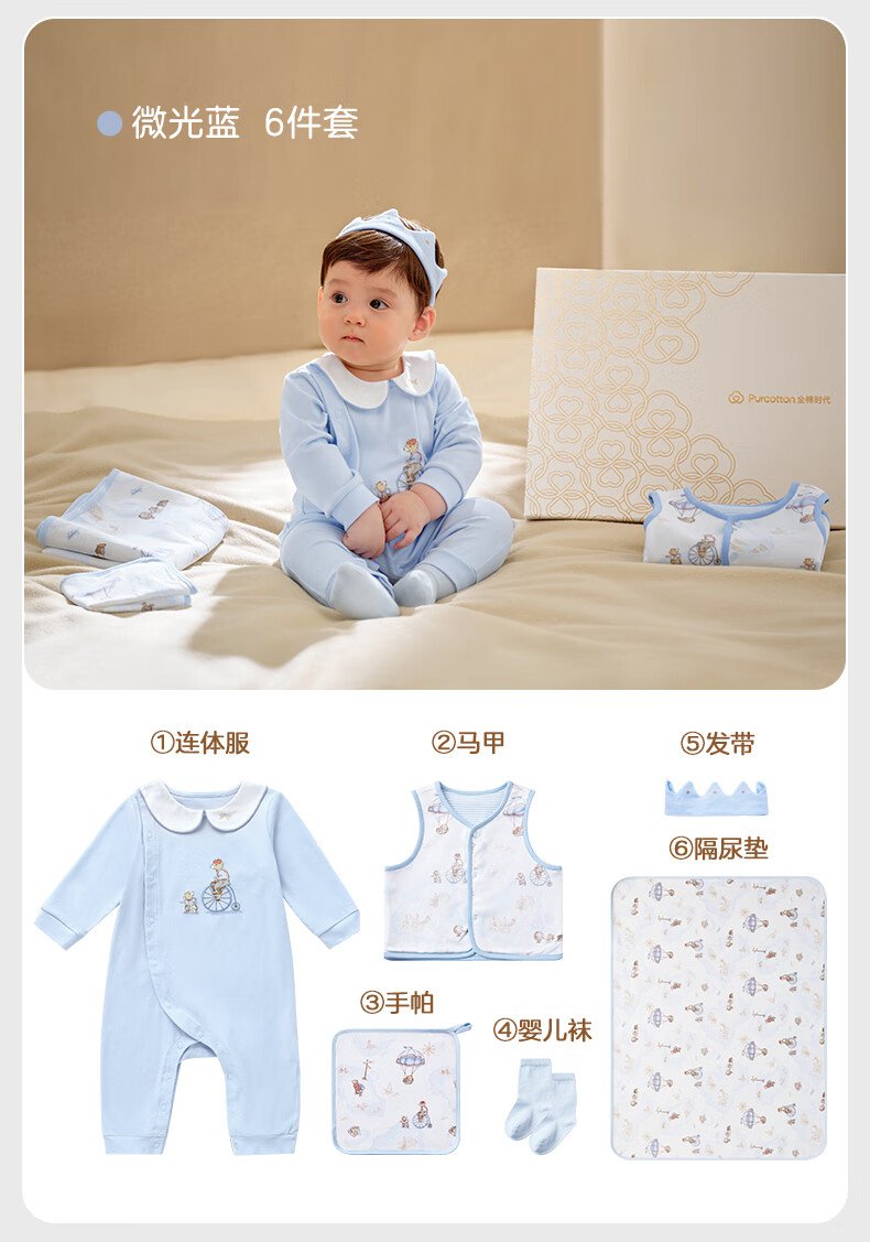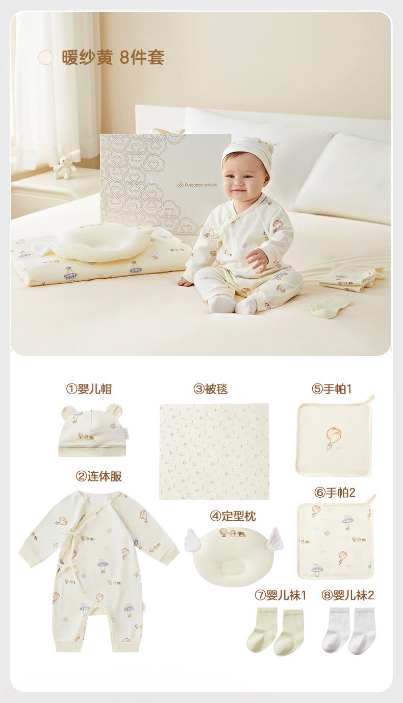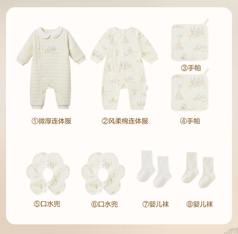 全棉时代婴儿礼盒新生儿见面礼宝宝满月礼物连体衣童装待产包衣服秋冬59码 【秋冬款-8件】城市笔记 (手提袋) 66cm 适合3-6个月