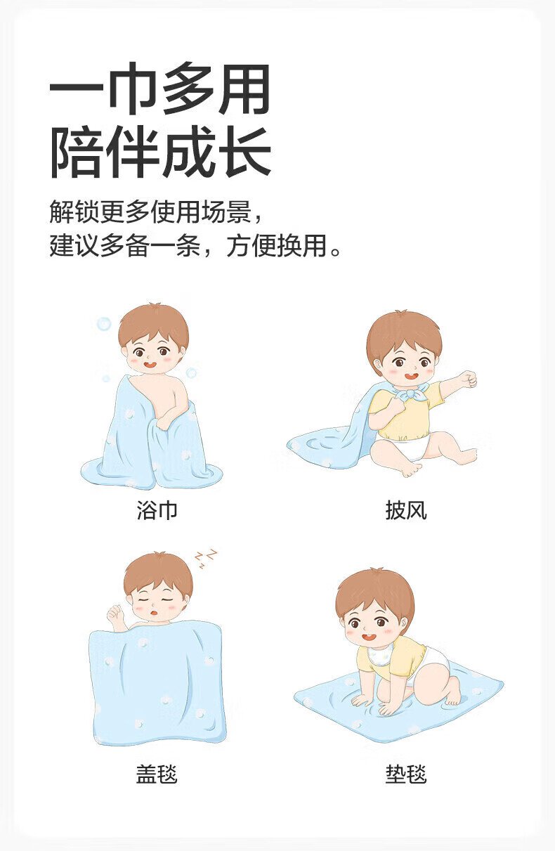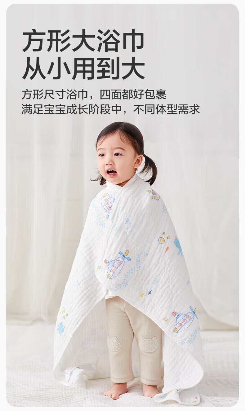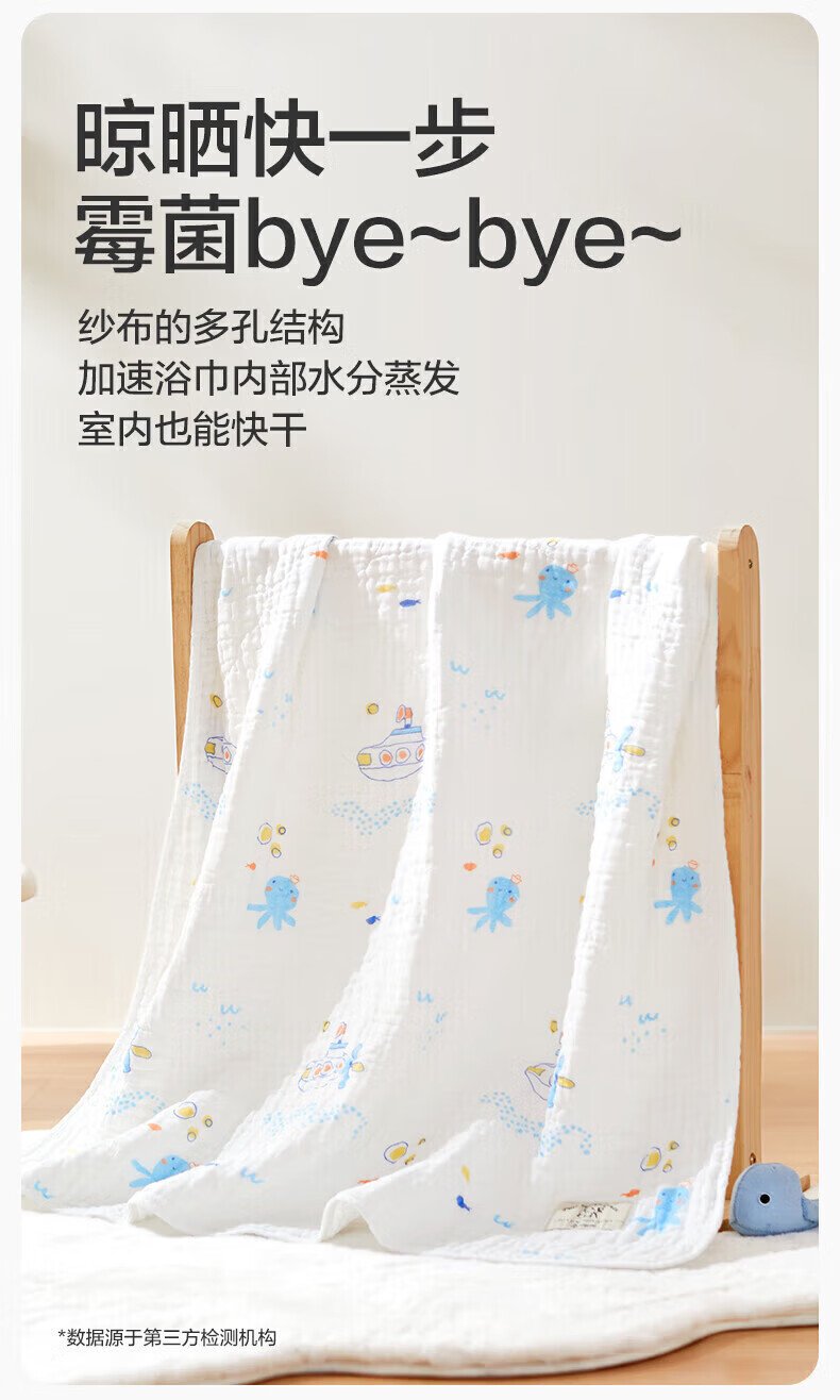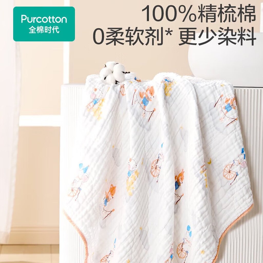 全棉时代(PurCotton)婴儿纱布浴巾纯棉宝宝新生儿童浴巾软吸水 【限时补贴 2条装】 四层柔纱 奇妙云端 95cm 数量
