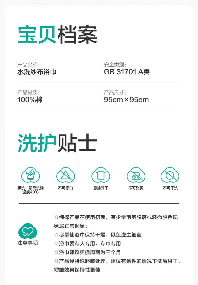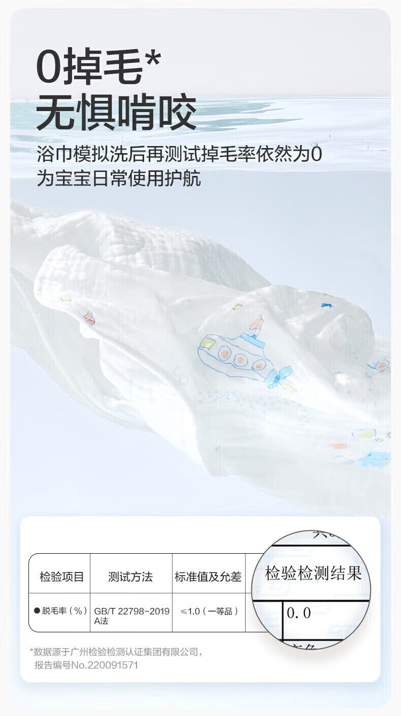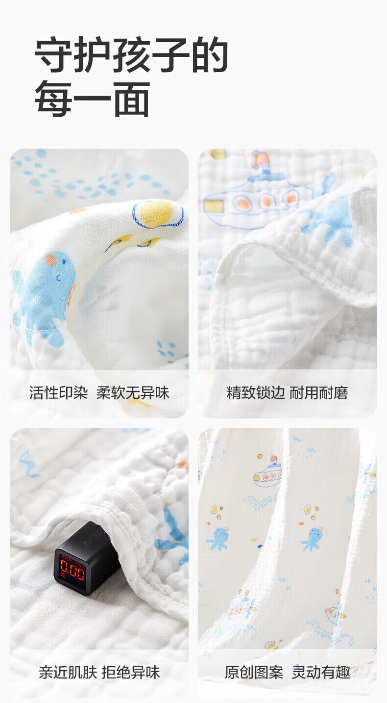 全棉时代(PurCotton)婴儿纱布浴巾纯棉宝宝新生儿童浴巾软吸水 【限时补贴 2条装】 四层柔纱 奇妙云端 95cm 数量