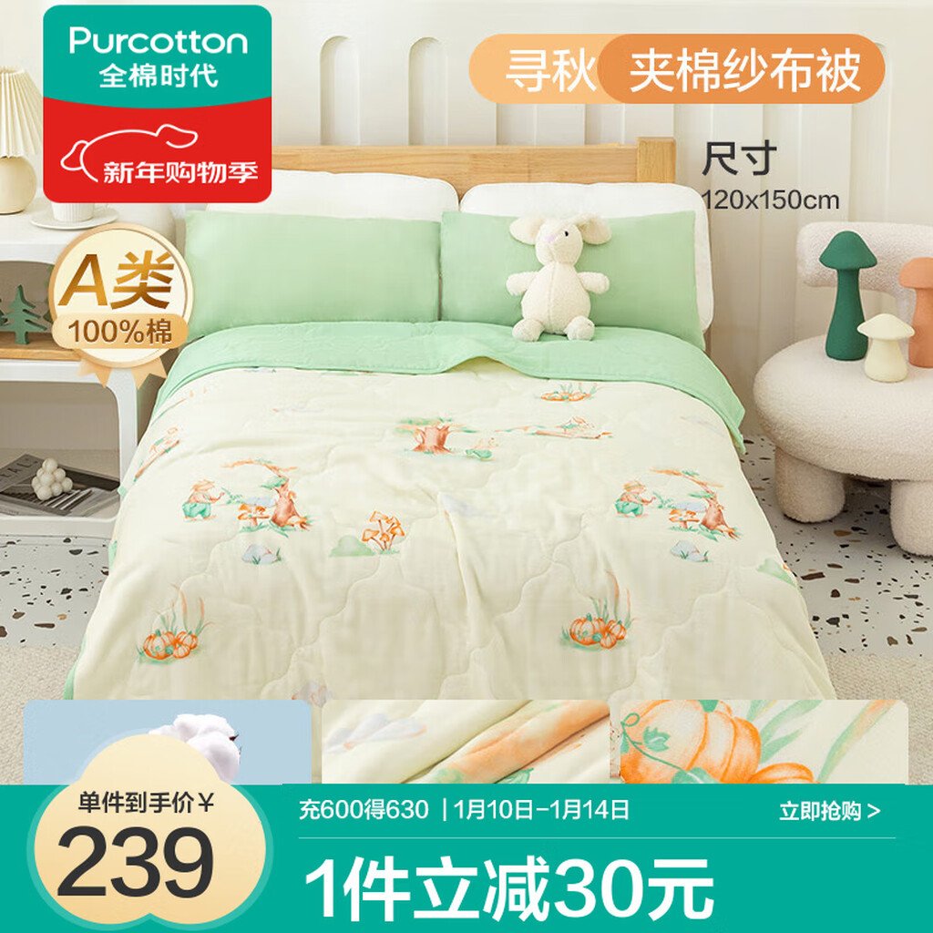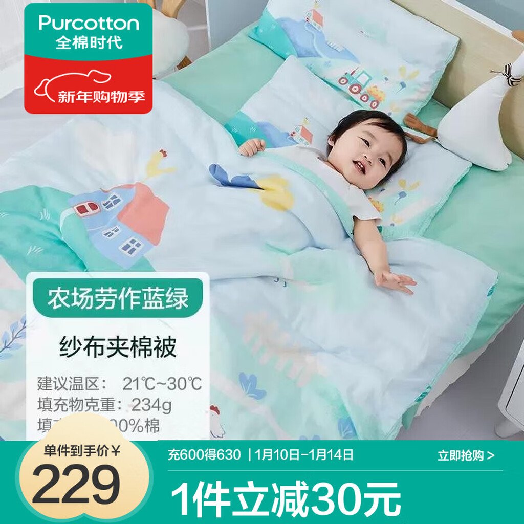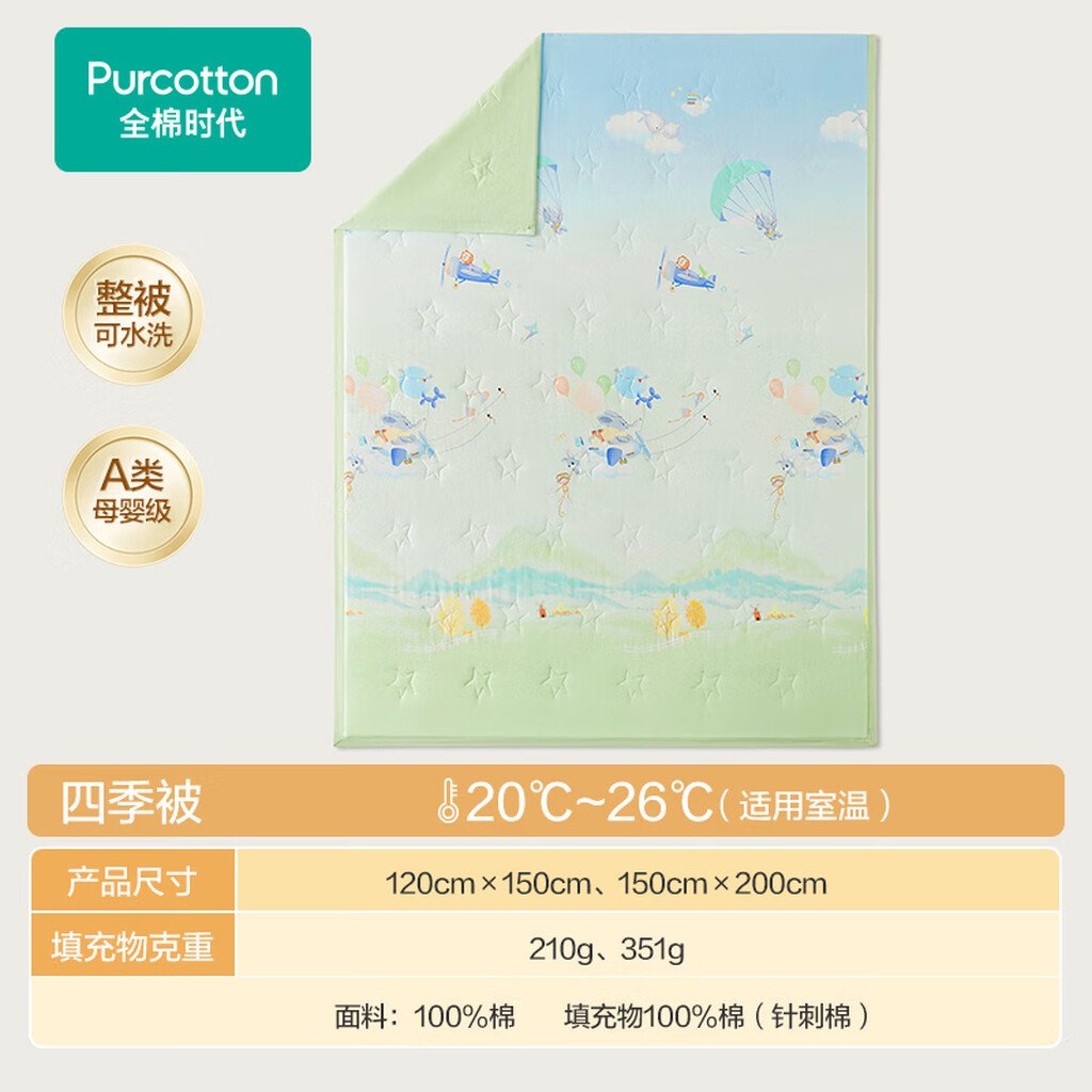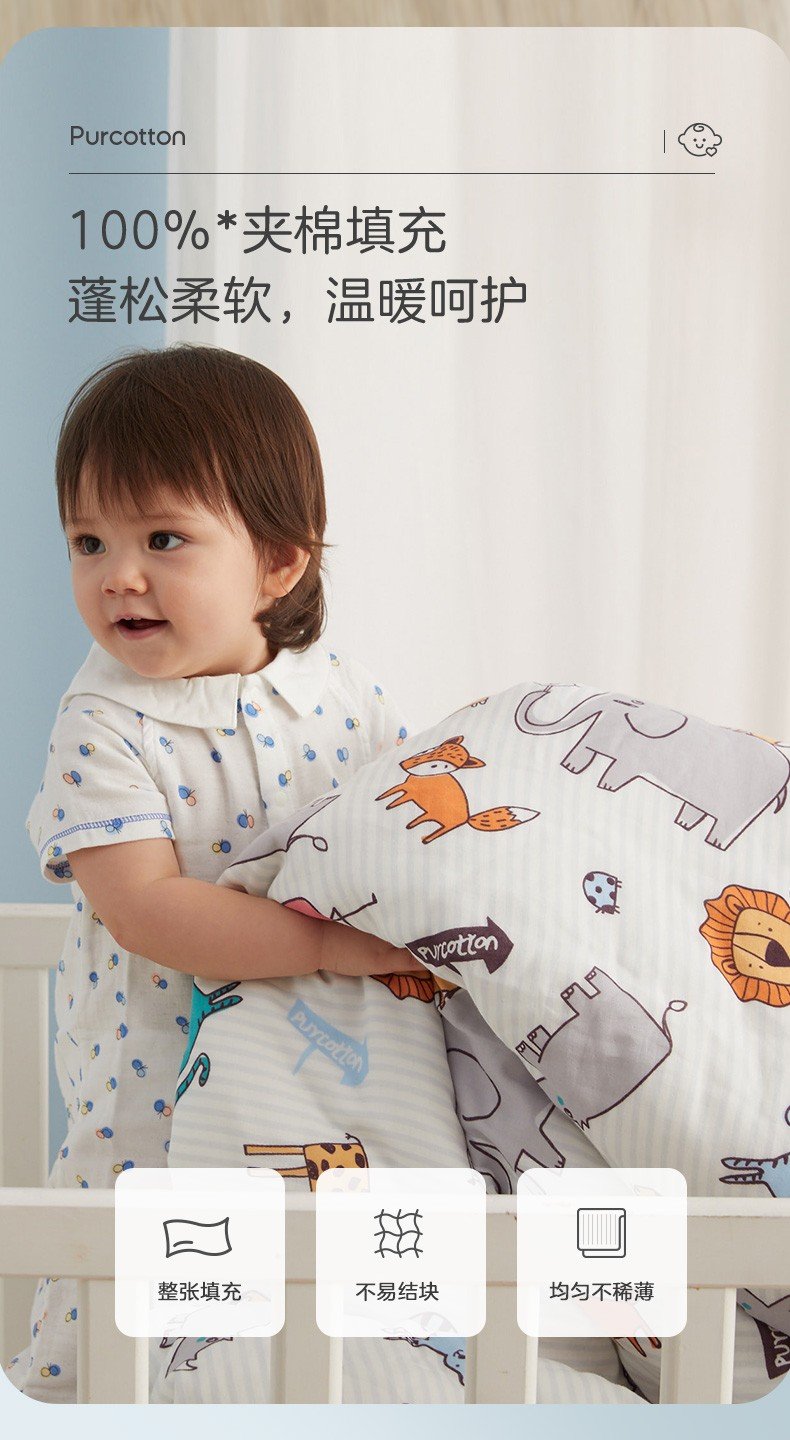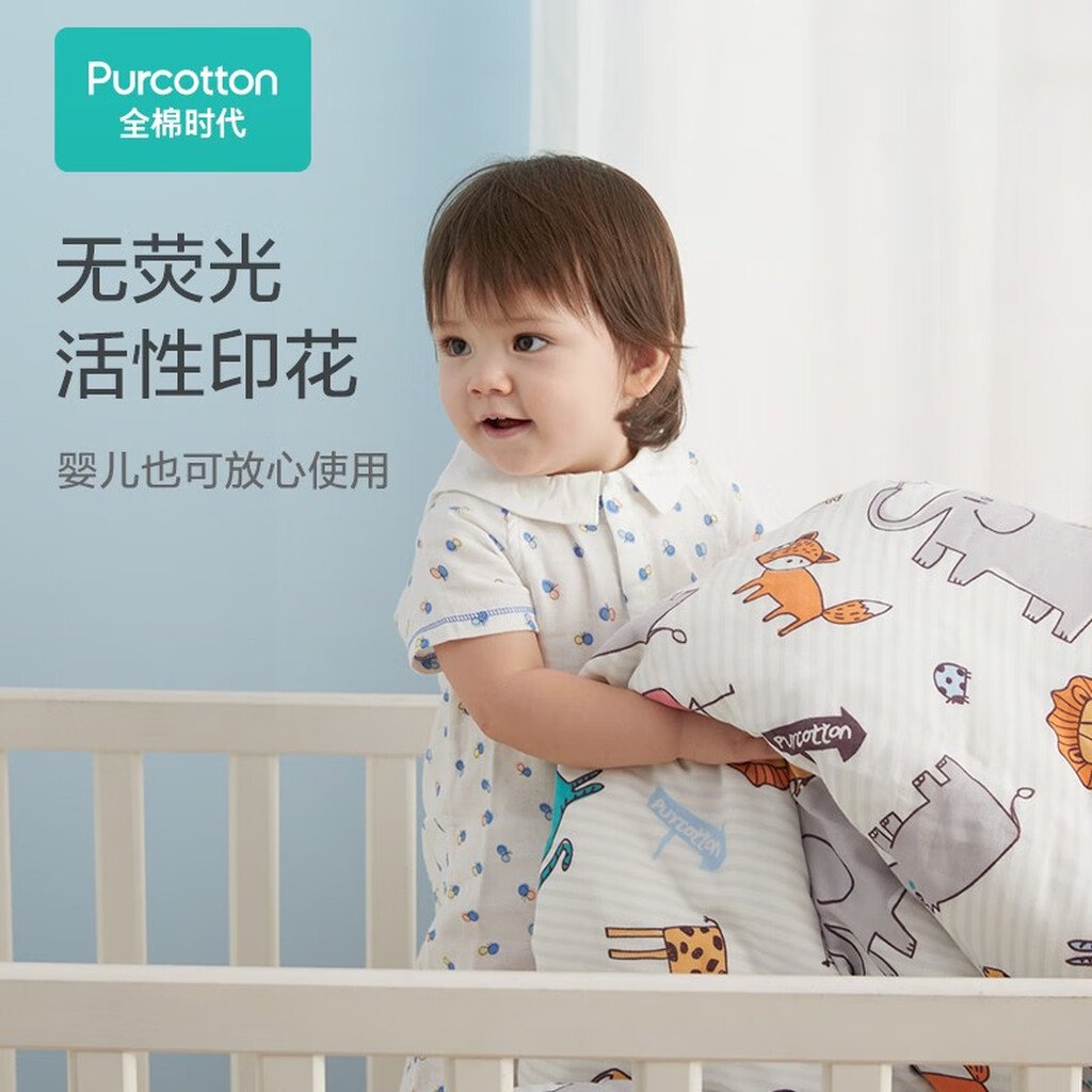 全棉时代 婴儿被子儿童纱布夹棉被100%纯棉婴儿宝宝棉纱被四季通用盖被 【萌趣小动物 21-30℃】120×150cm 数量