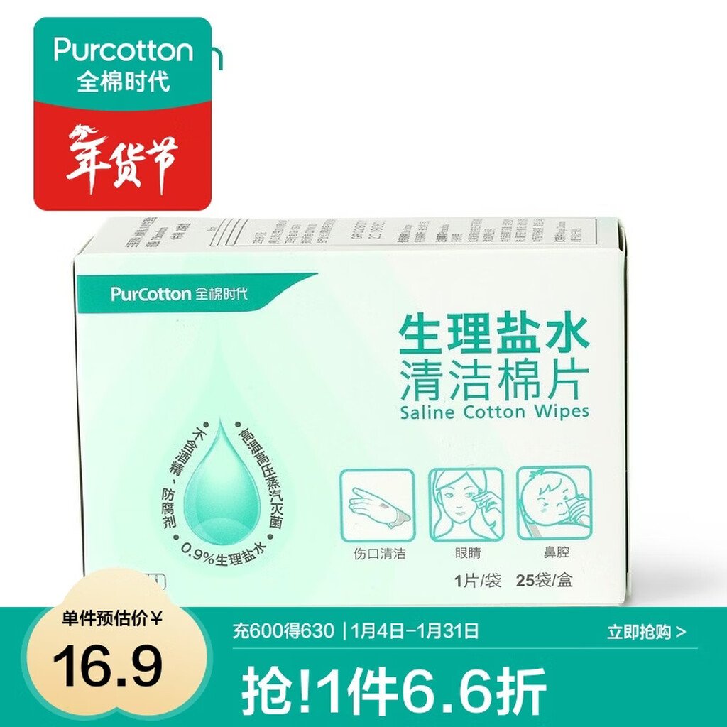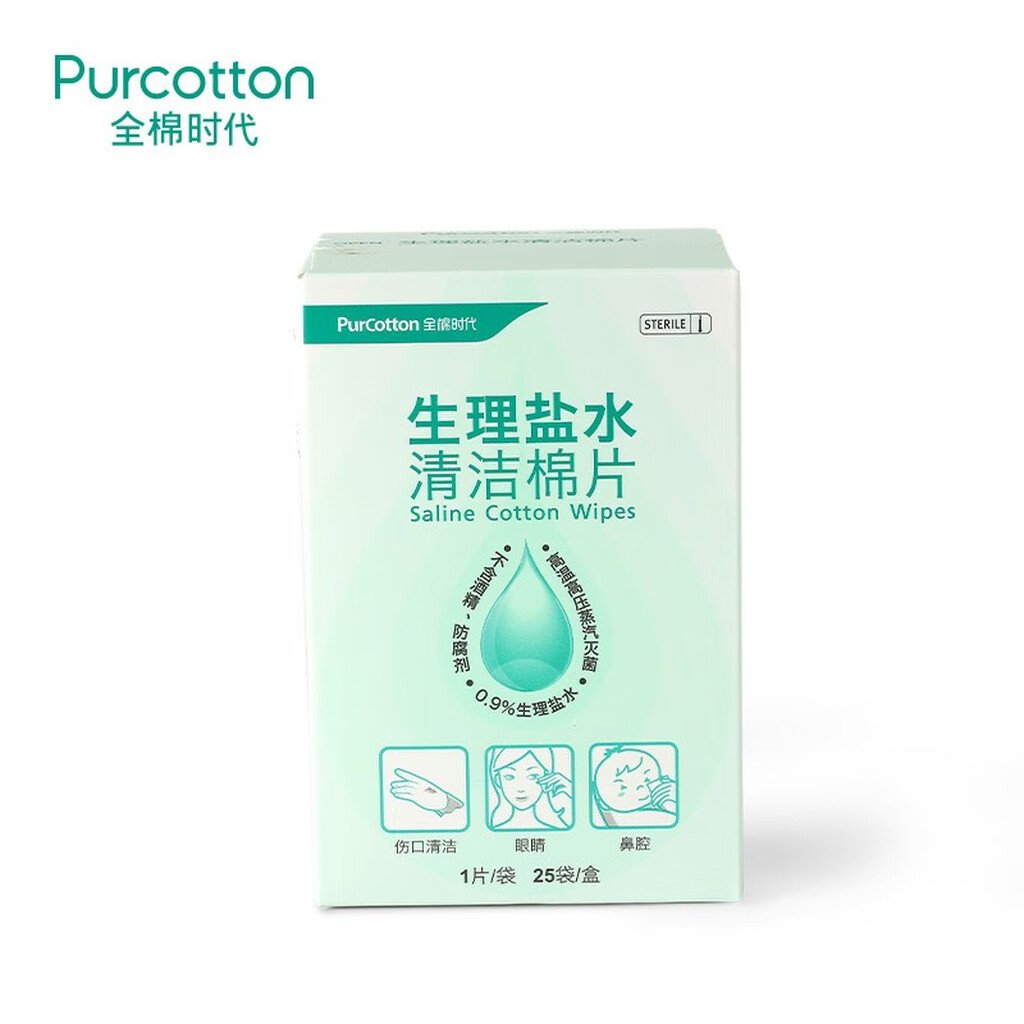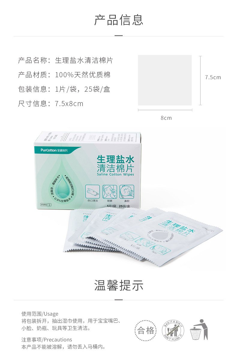 全棉时代 生理盐水清洁棉湿巾婴儿小包单片湿纸巾盒装7.5*8cm 25袋/盒 数量