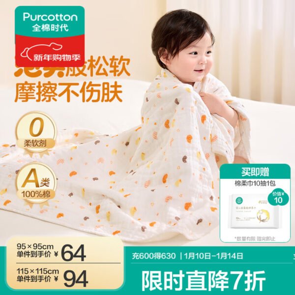 全棉时代婴儿浴巾纯棉纱布浴巾宝宝新生儿超柔亲肤吸水洗澡巾儿童大毛巾 【经典款 六层柔纱】小鸭子 95*95cm