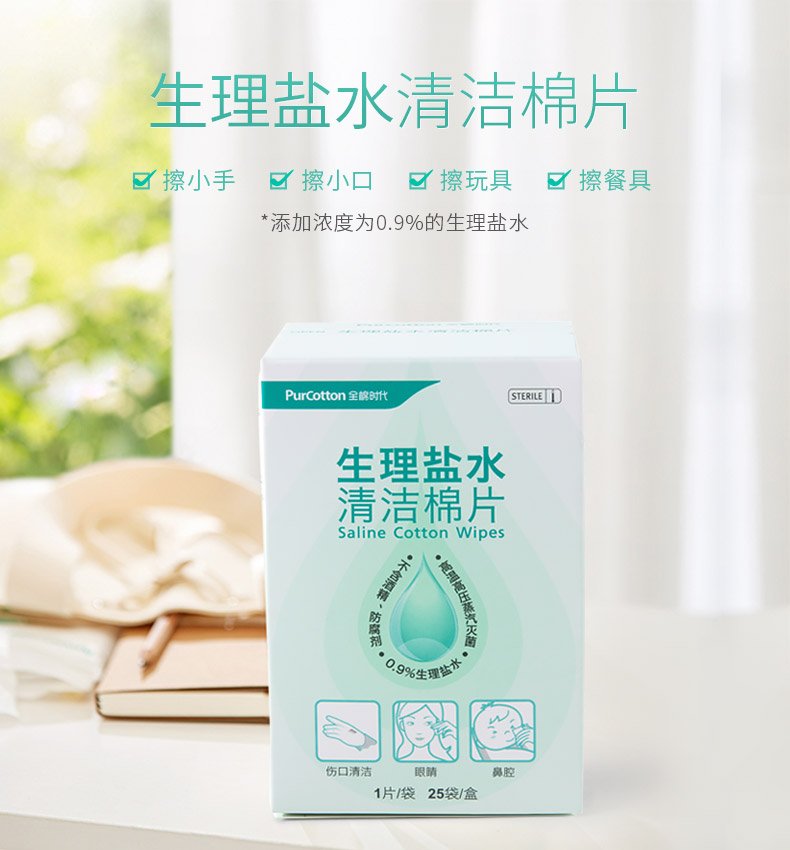 全棉时代 生理盐水清洁棉湿巾婴儿小包单片湿纸巾盒装7.5*8cm 25袋/盒
