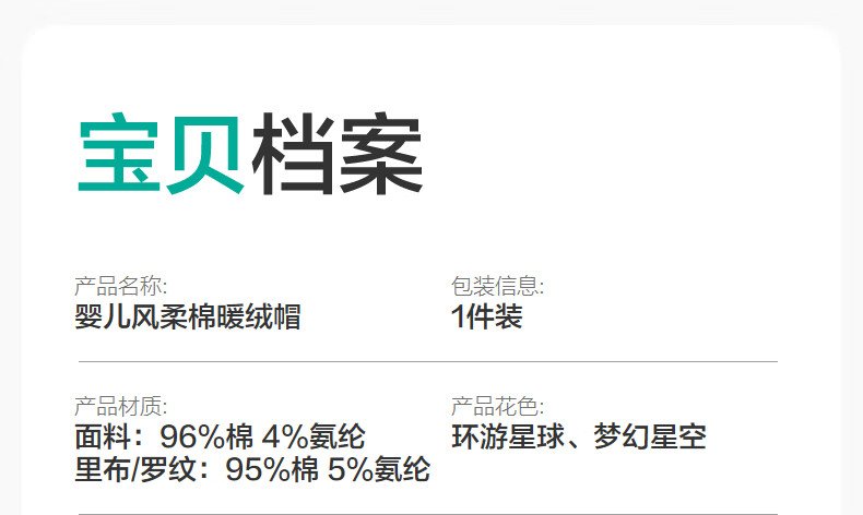 全棉时代2024冬婴儿风柔棉暖绒帽 36cm-38cm 环游星球,1件装 梦幻星空 38cm-40cm 数量