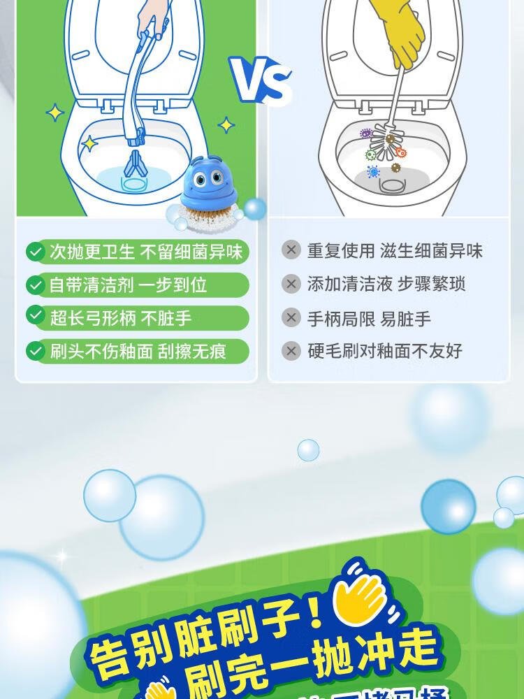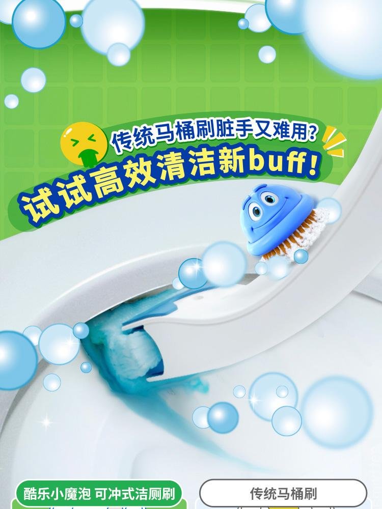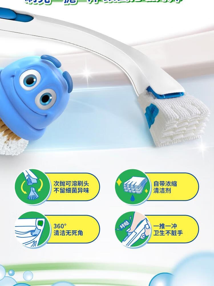 可冲式洁厕刷套组 1支手柄+1底座+40片替换刷头