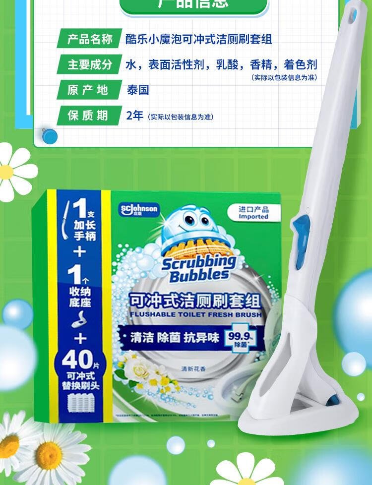 可冲式洁厕刷套组 1支手柄+1底座+40片替换刷头 数量