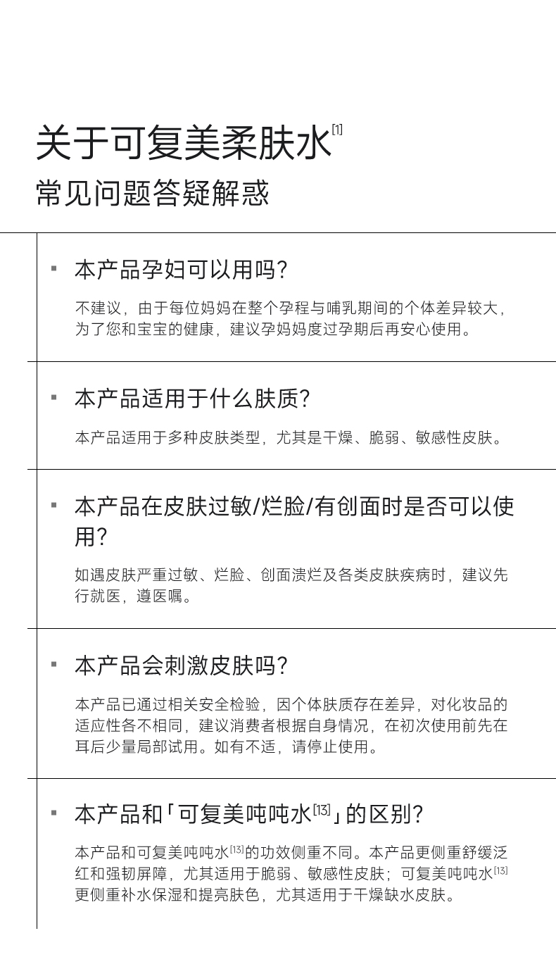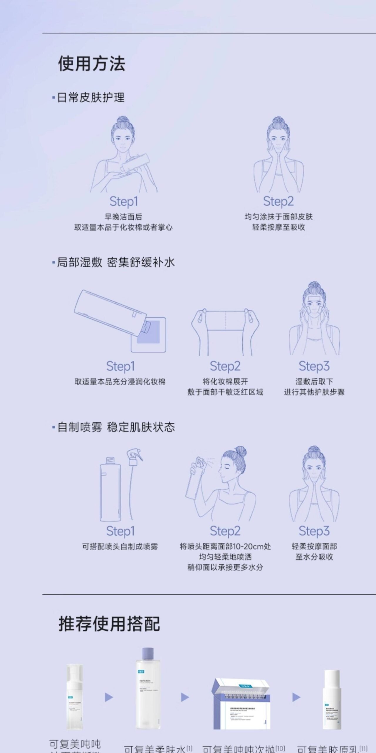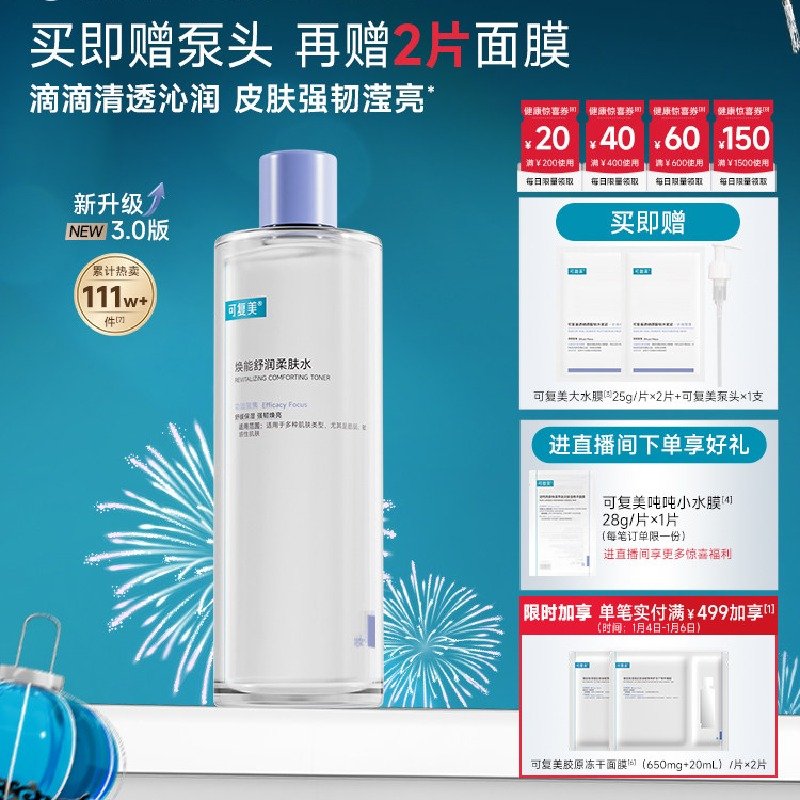 可复美柔肤水补水保湿修护精华水湿敷平衡舒缓皮肤爽肤水500mL/瓶 数量