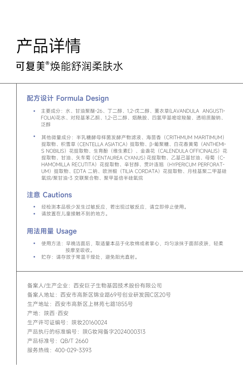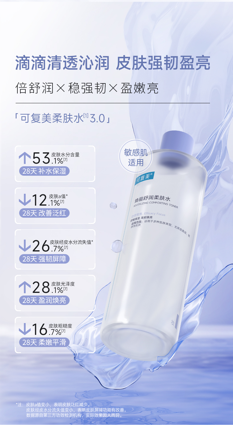 可复美柔肤水补水保湿修护精华水湿敷平衡舒缓皮肤爽肤水500mL/瓶