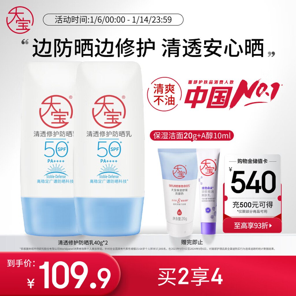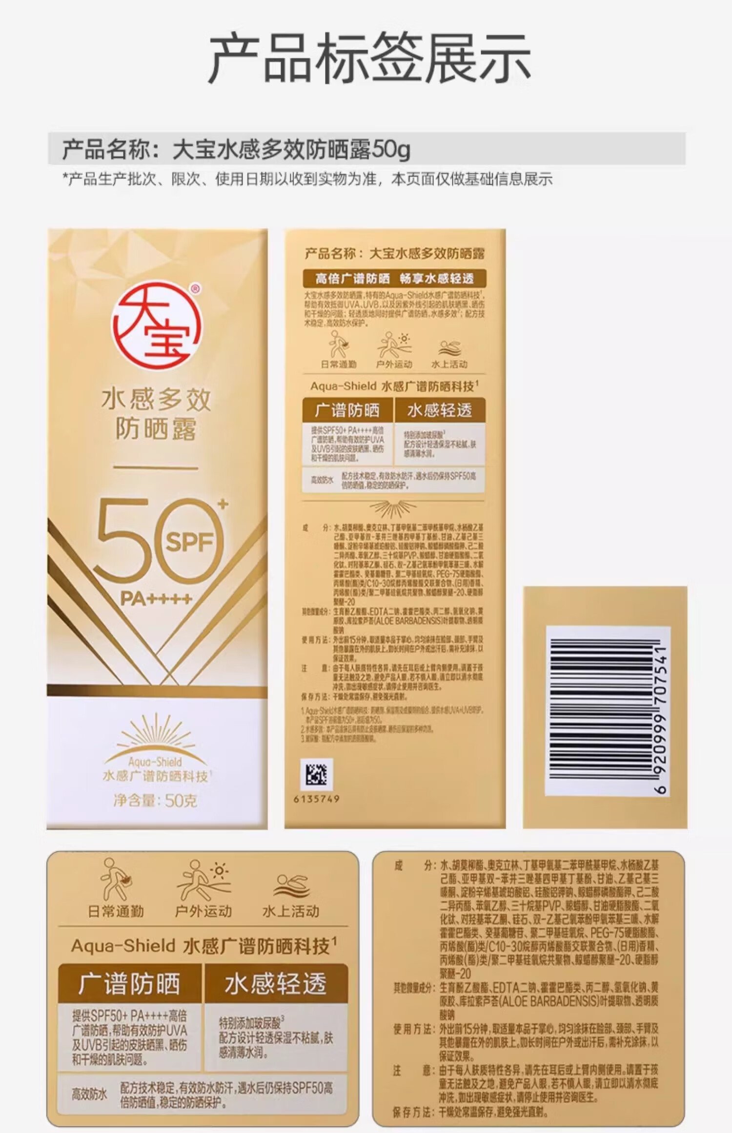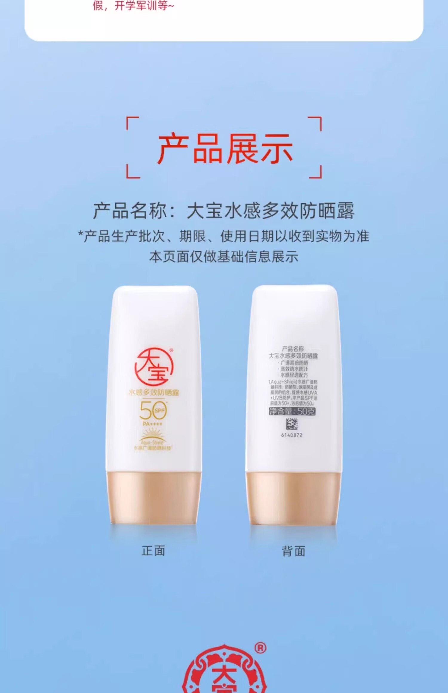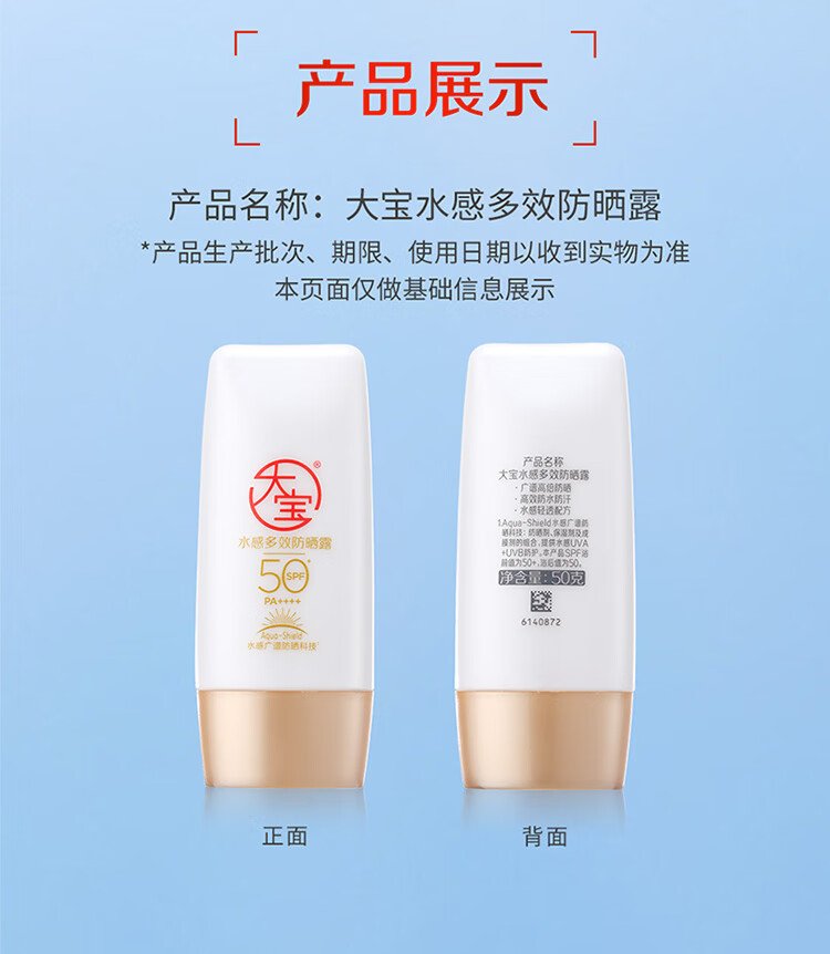 大宝水感多效防晒露50g*2 SPF50+高倍防晒霜防水防汗男女护肤新年礼物 数量