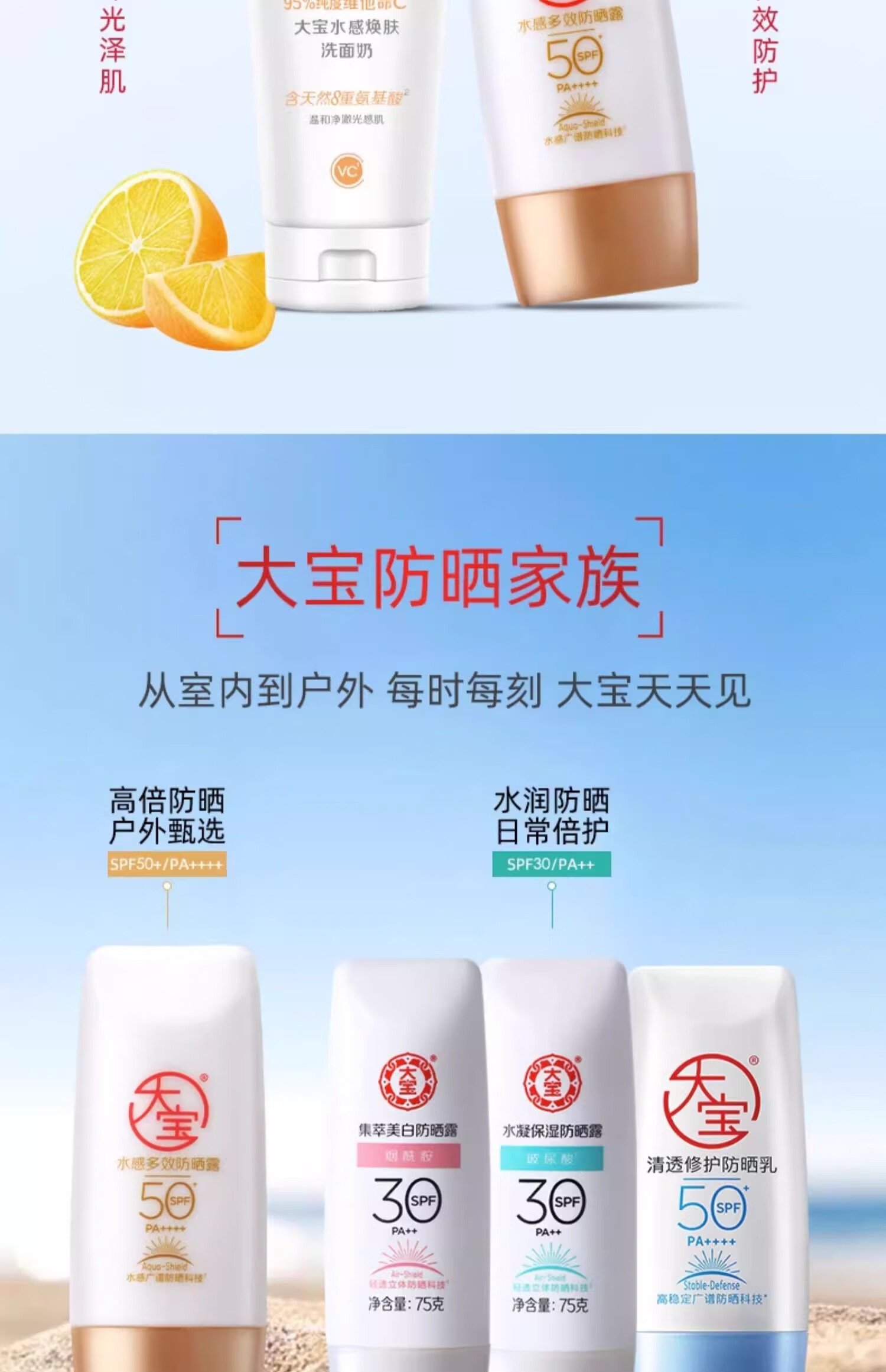 大宝水感多效防晒露50g*2 SPF50+高倍防晒霜防水防汗男女护肤新年礼物