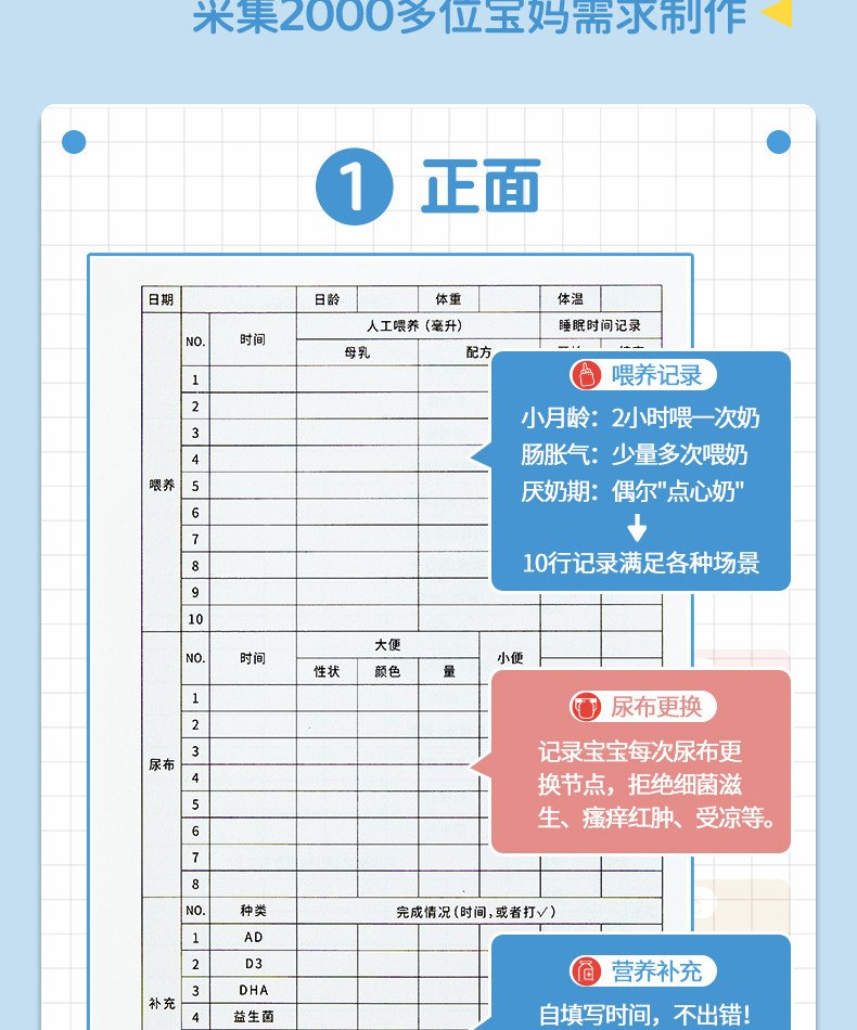 婴儿喂养记录本成长记录日记本宝宝奶粉母乳喂养日记 数量