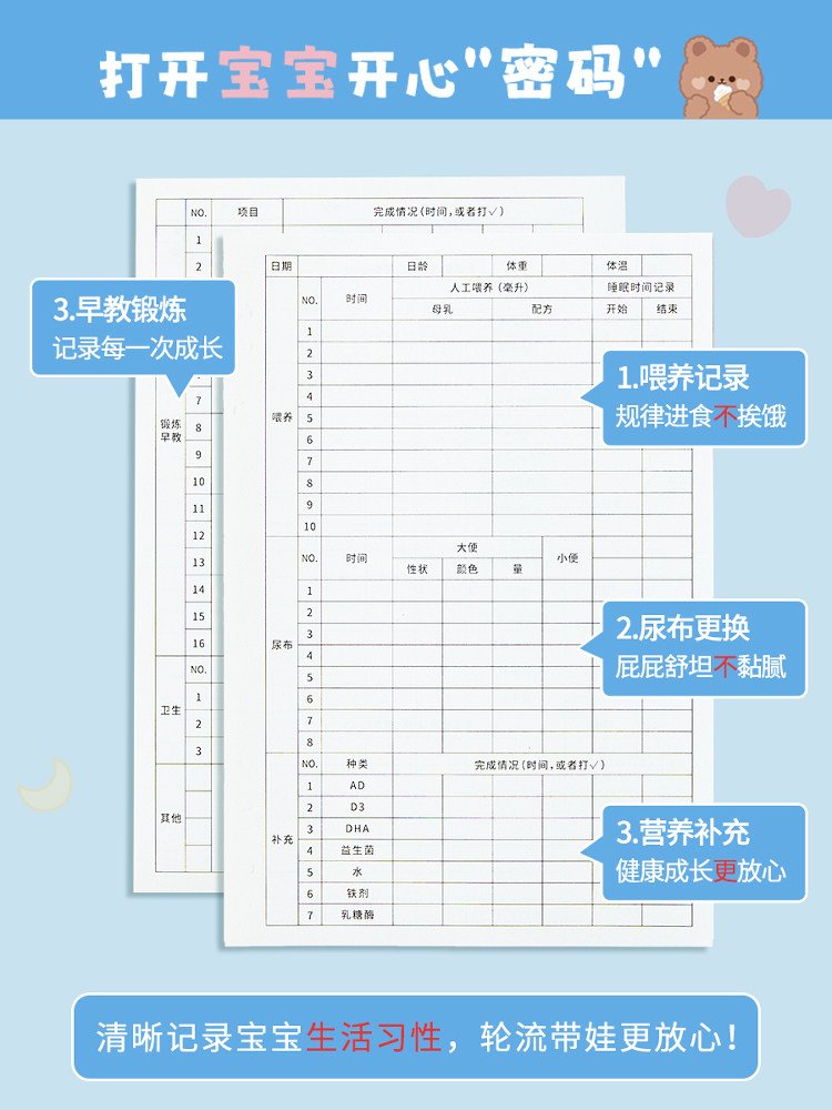婴儿喂养记录本成长记录日记本宝宝奶粉母乳喂养日记