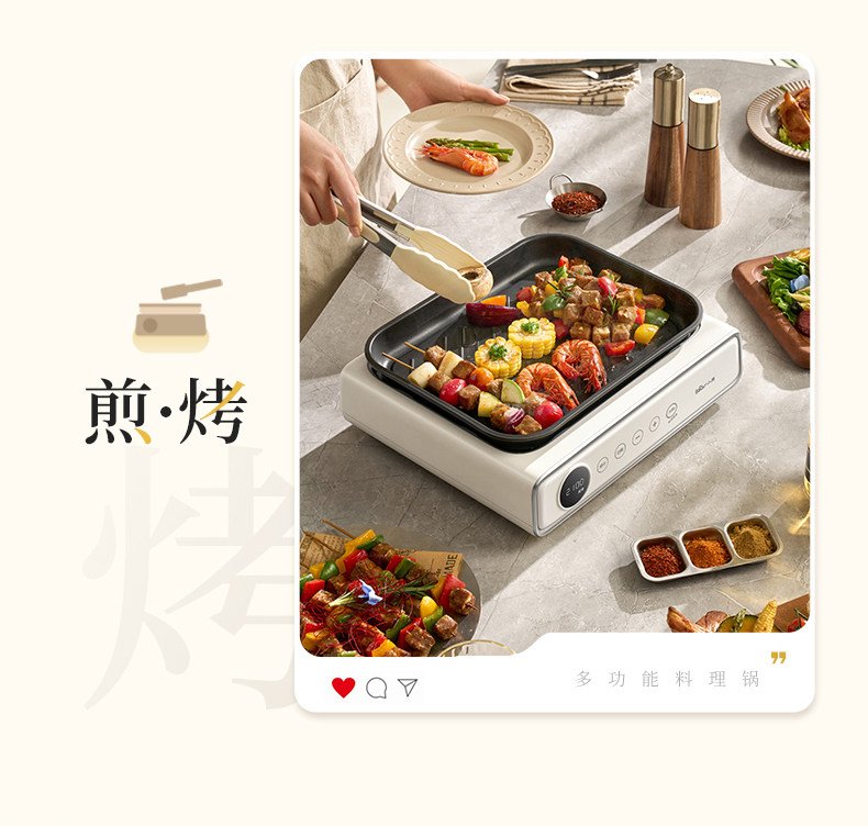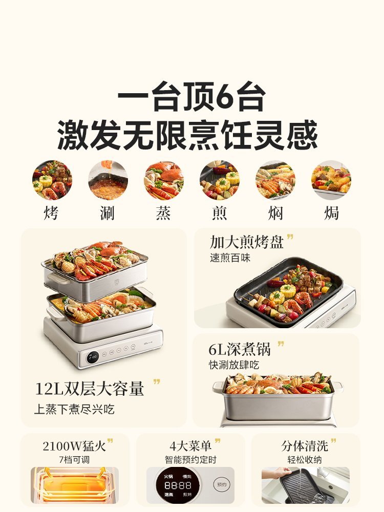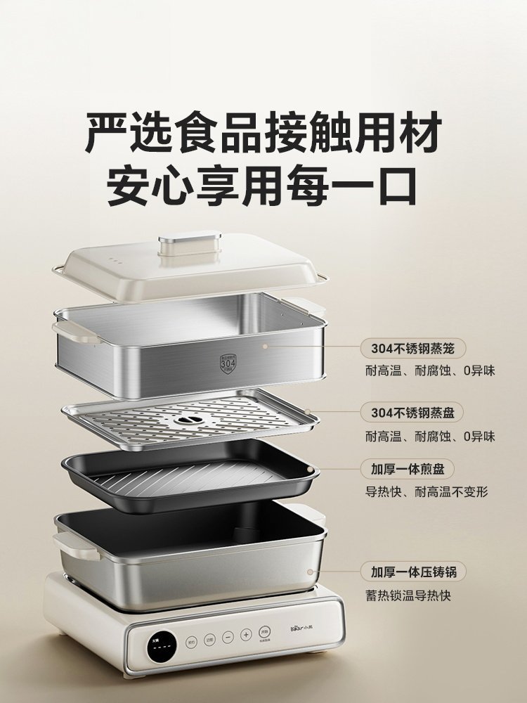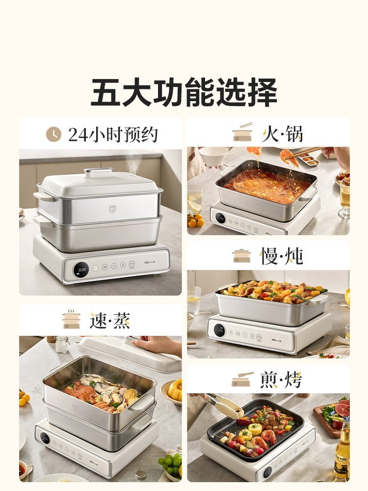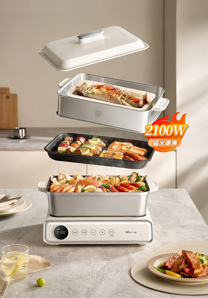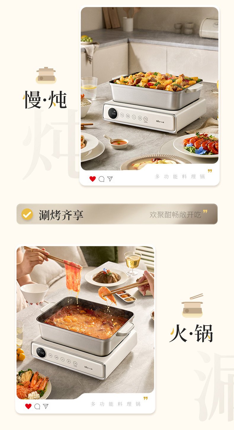 小熊叠叠分体多功能料理锅家用电火锅烤肉一体烤涮电蒸锅多功能锅