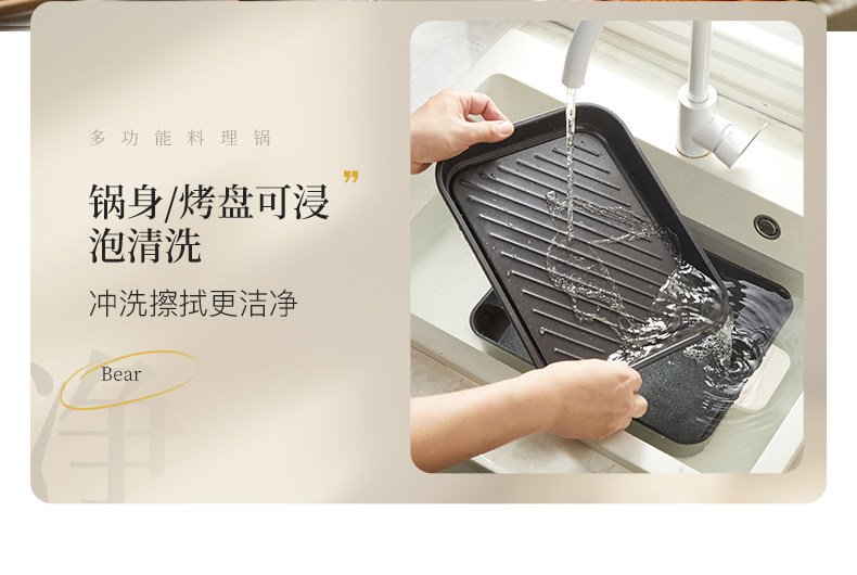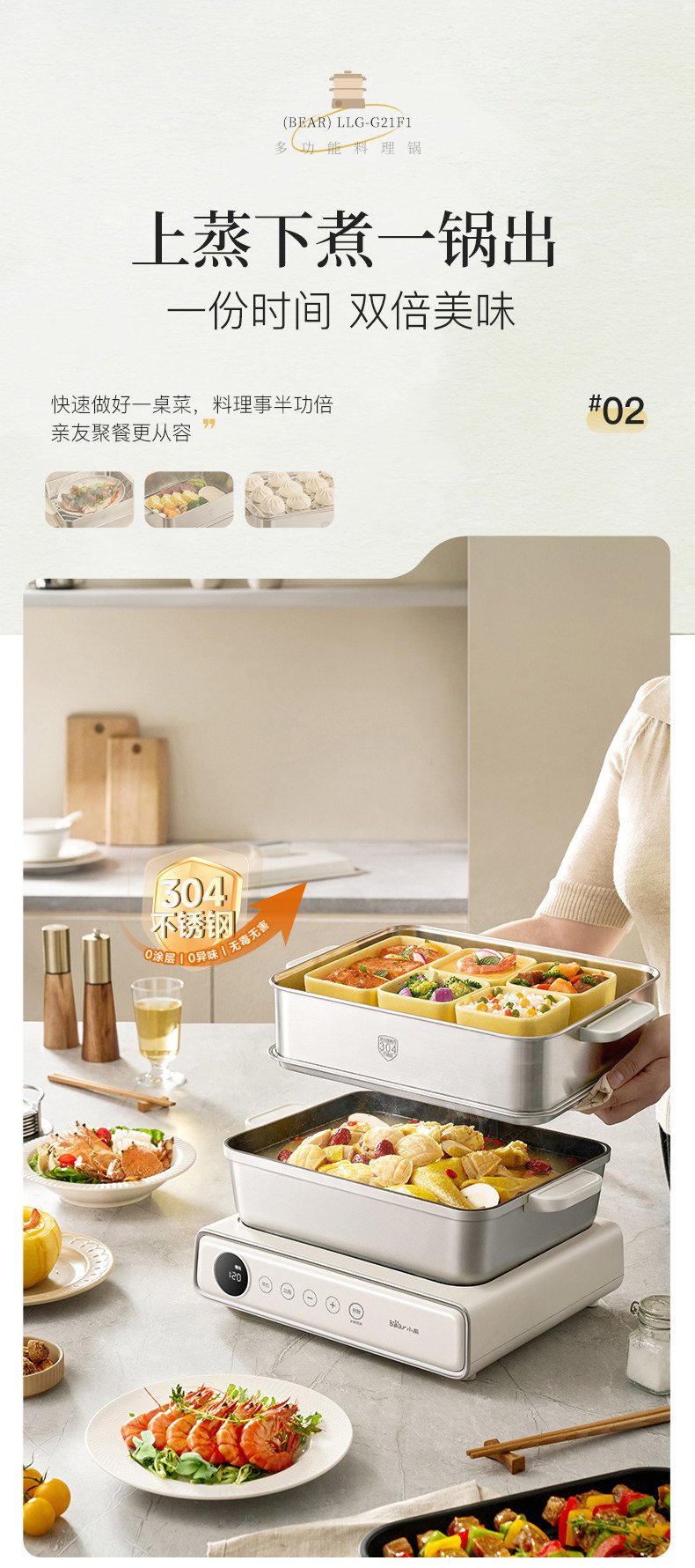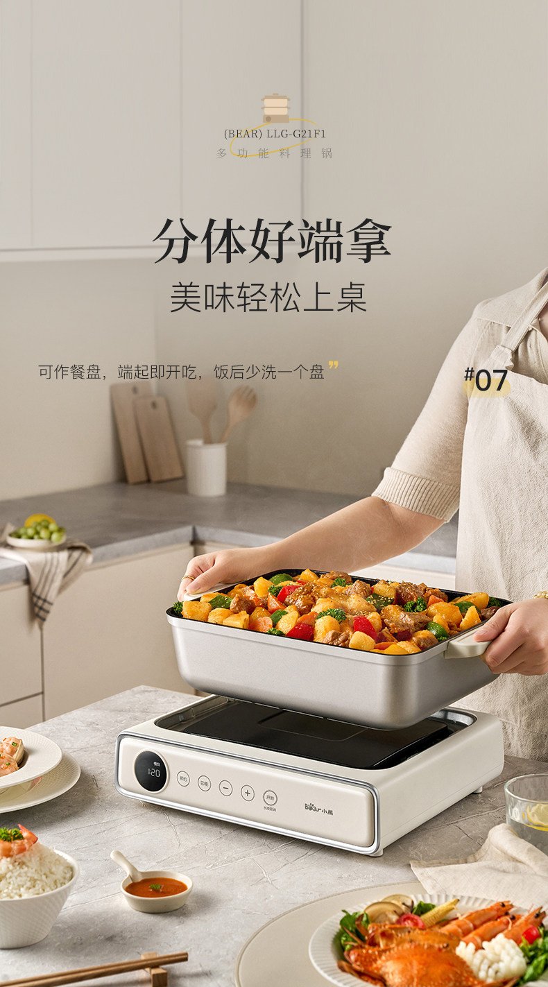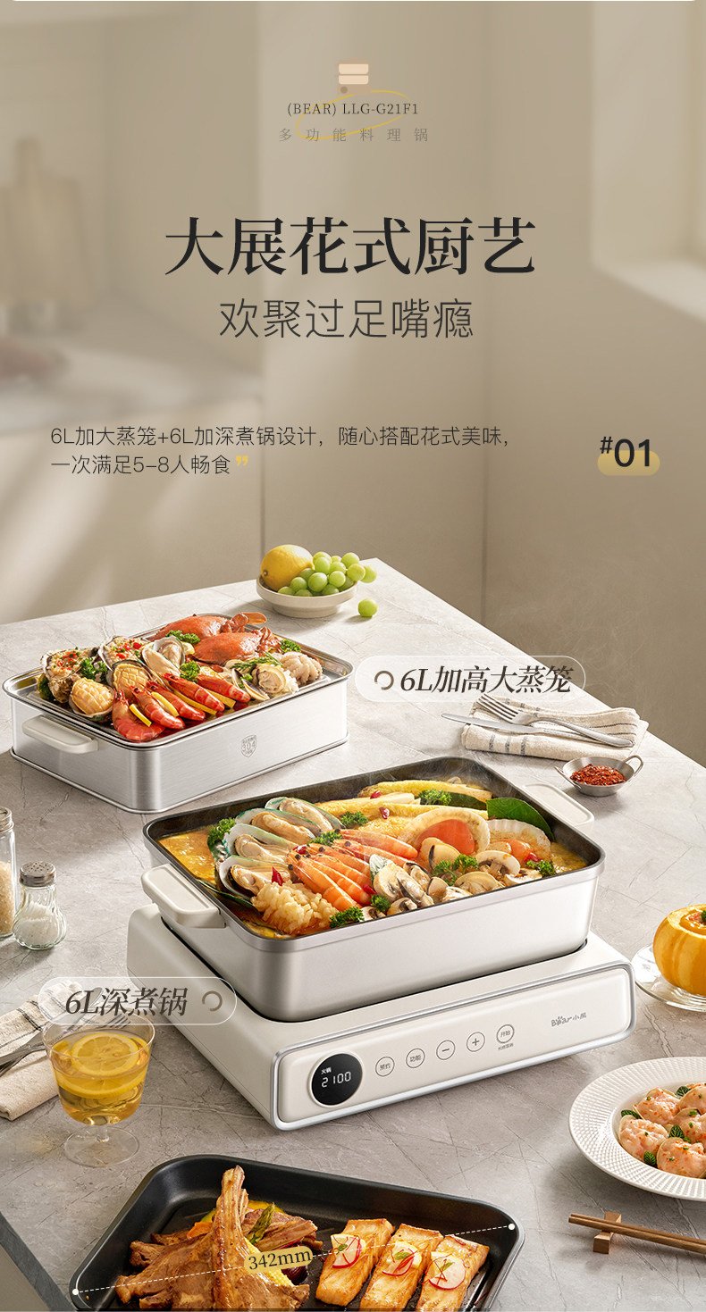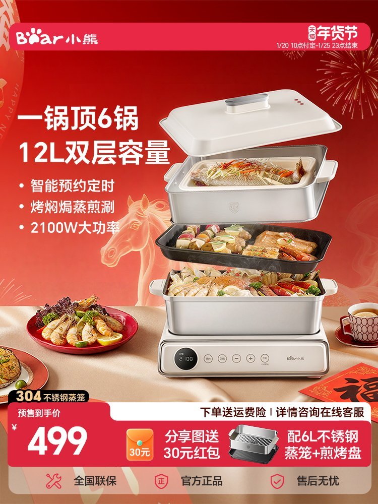 小熊叠叠分体多功能料理锅家用电火锅烤肉一体烤涮电蒸锅多功能锅