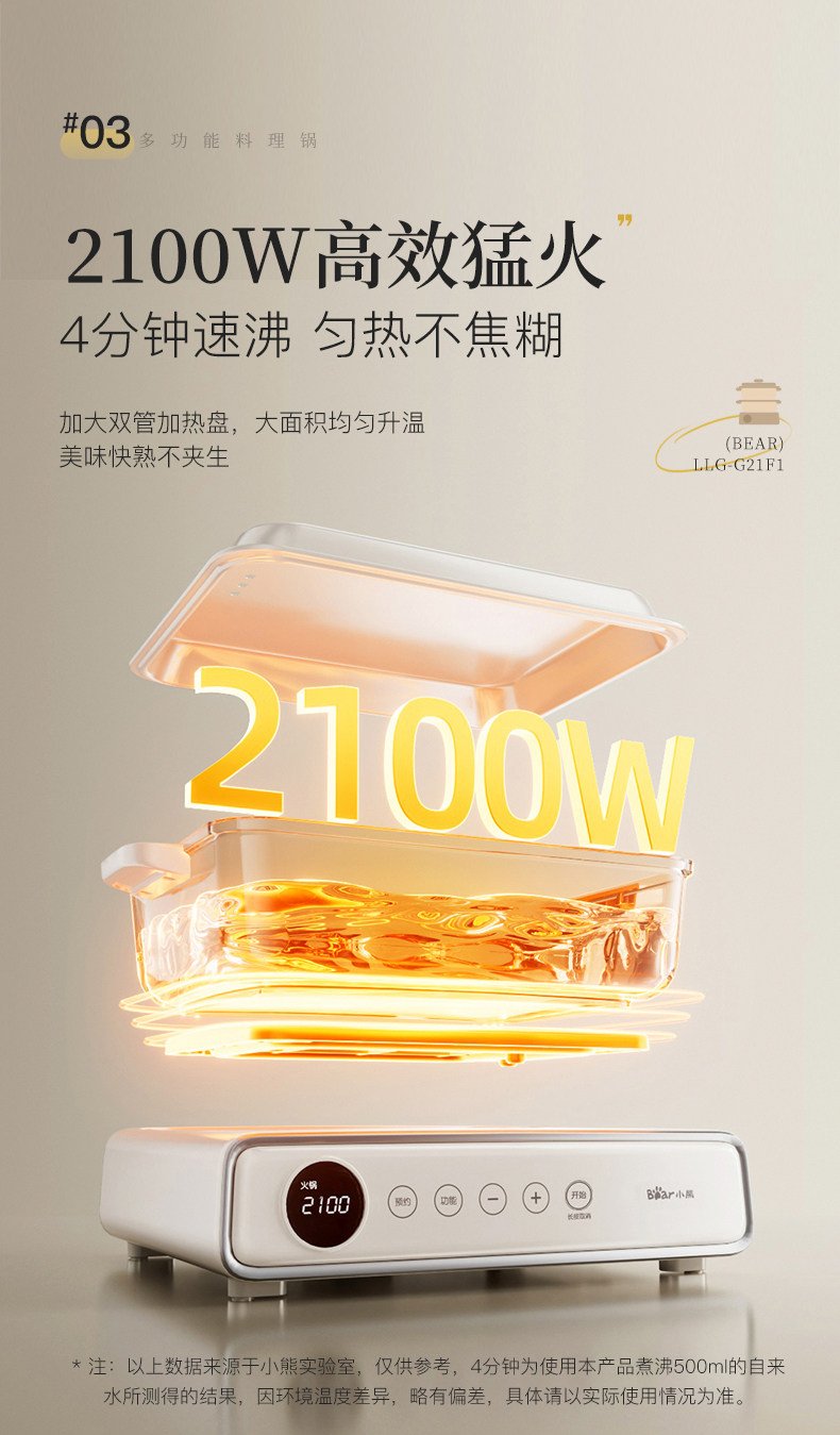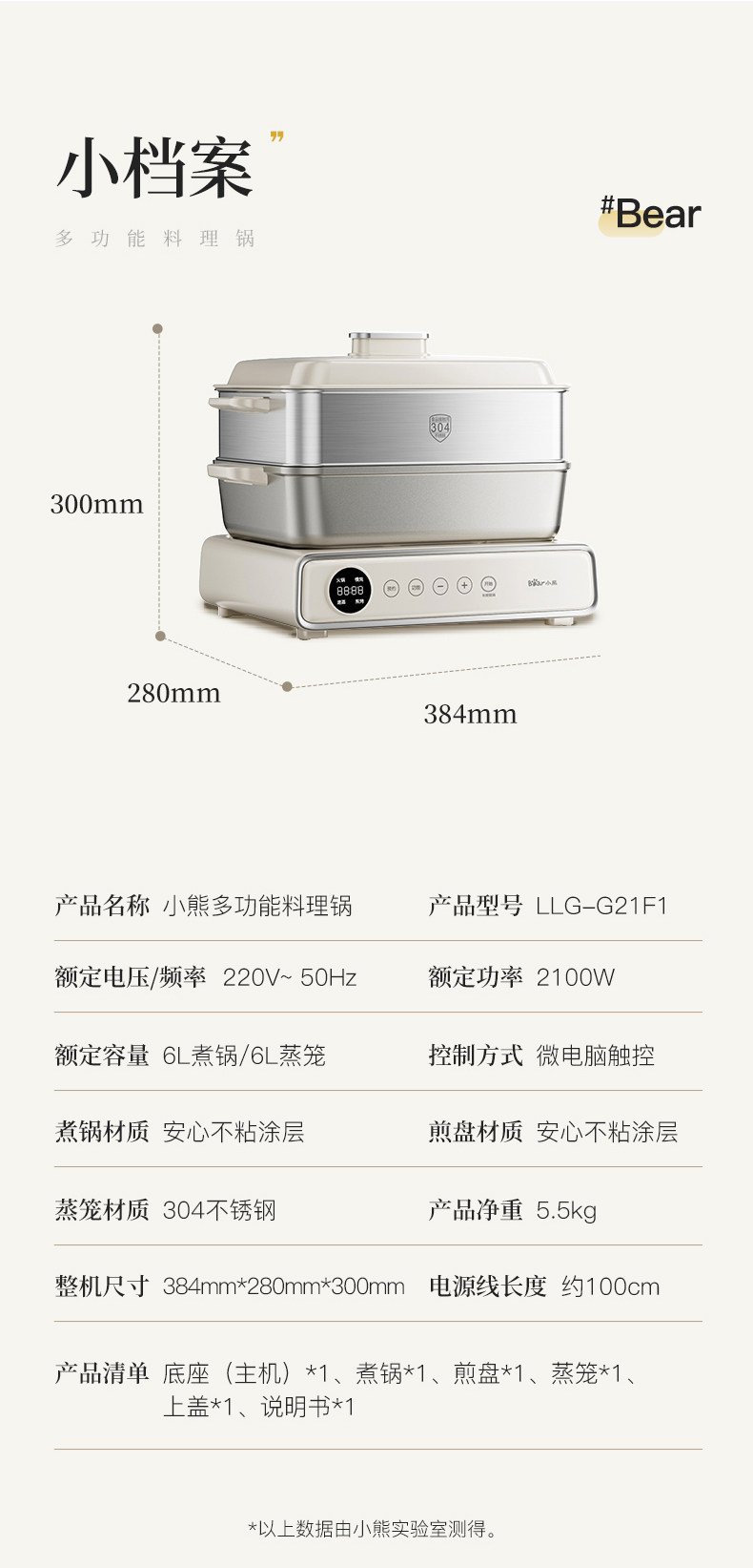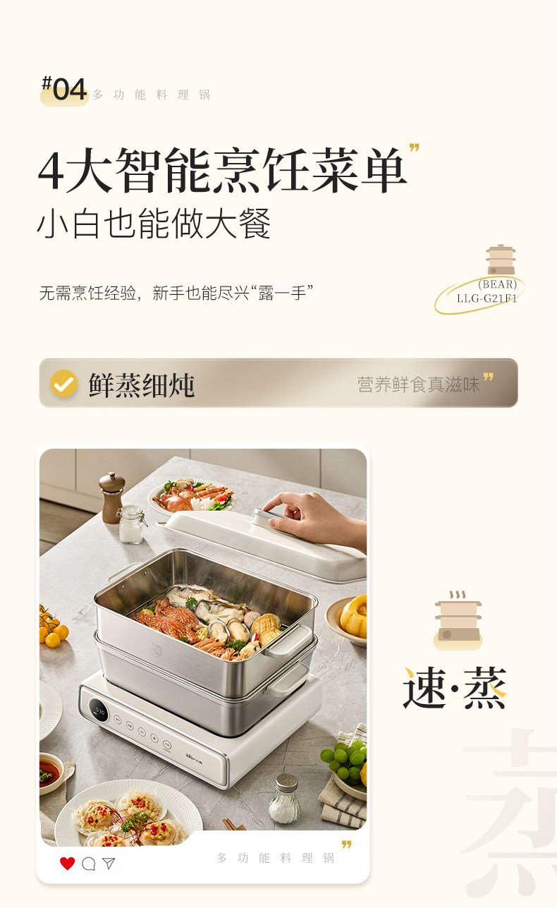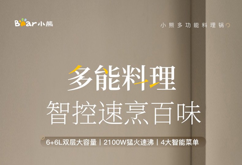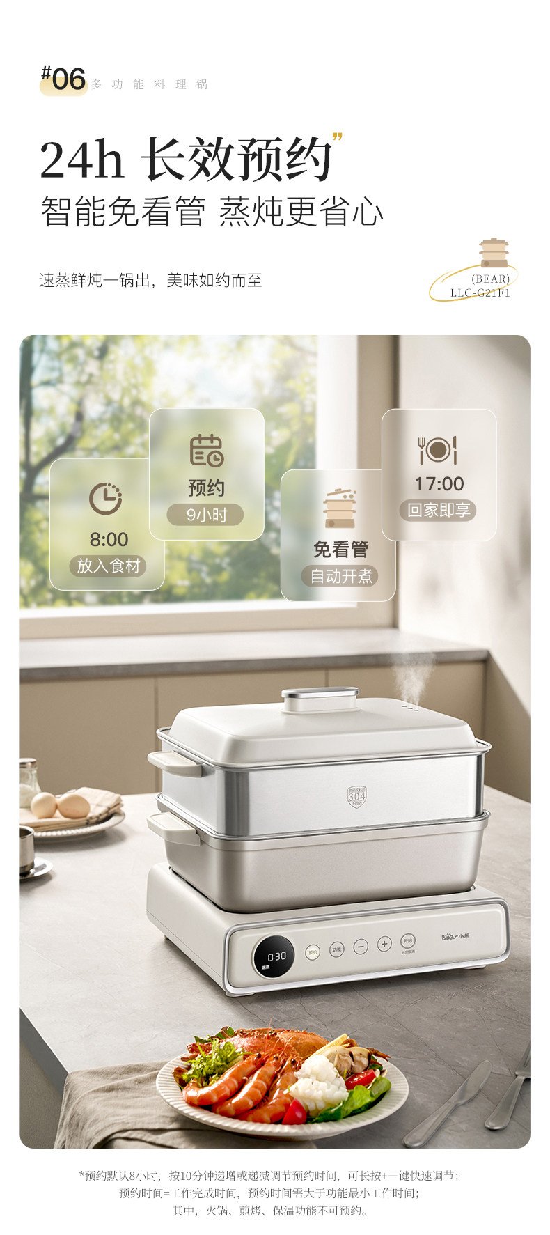小熊叠叠分体多功能料理锅家用电火锅烤肉一体烤涮电蒸锅多功能锅