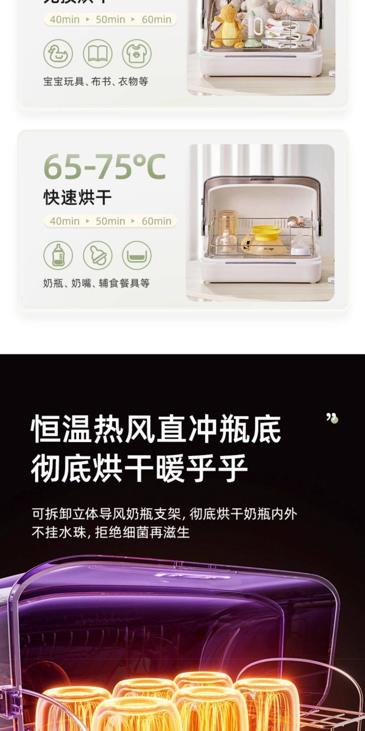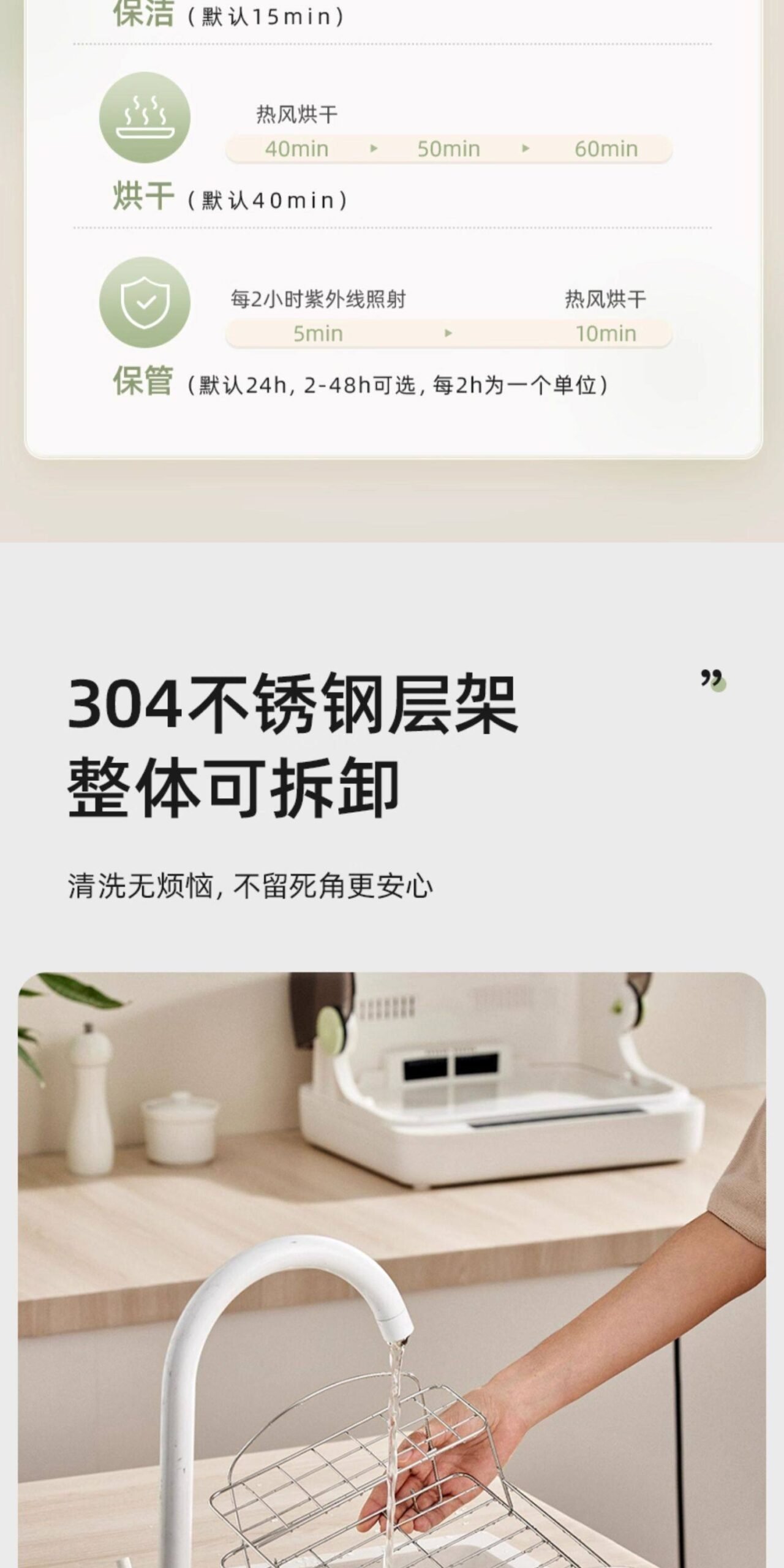 ⭐【旗舰款-白色】高温/低温烘干+5颗UVC灯珠+鲜风保管