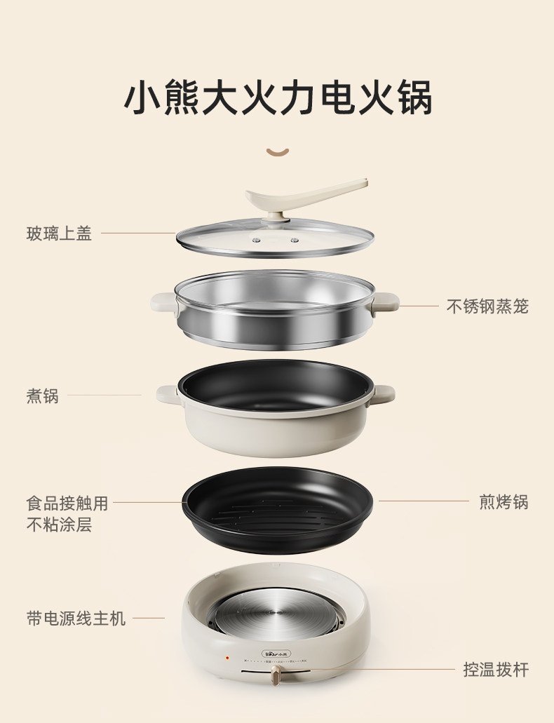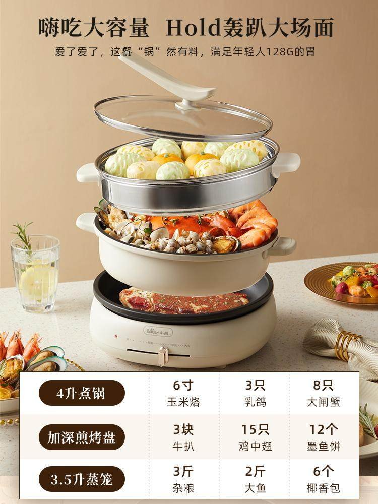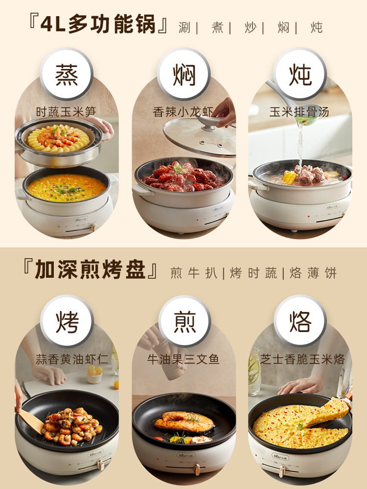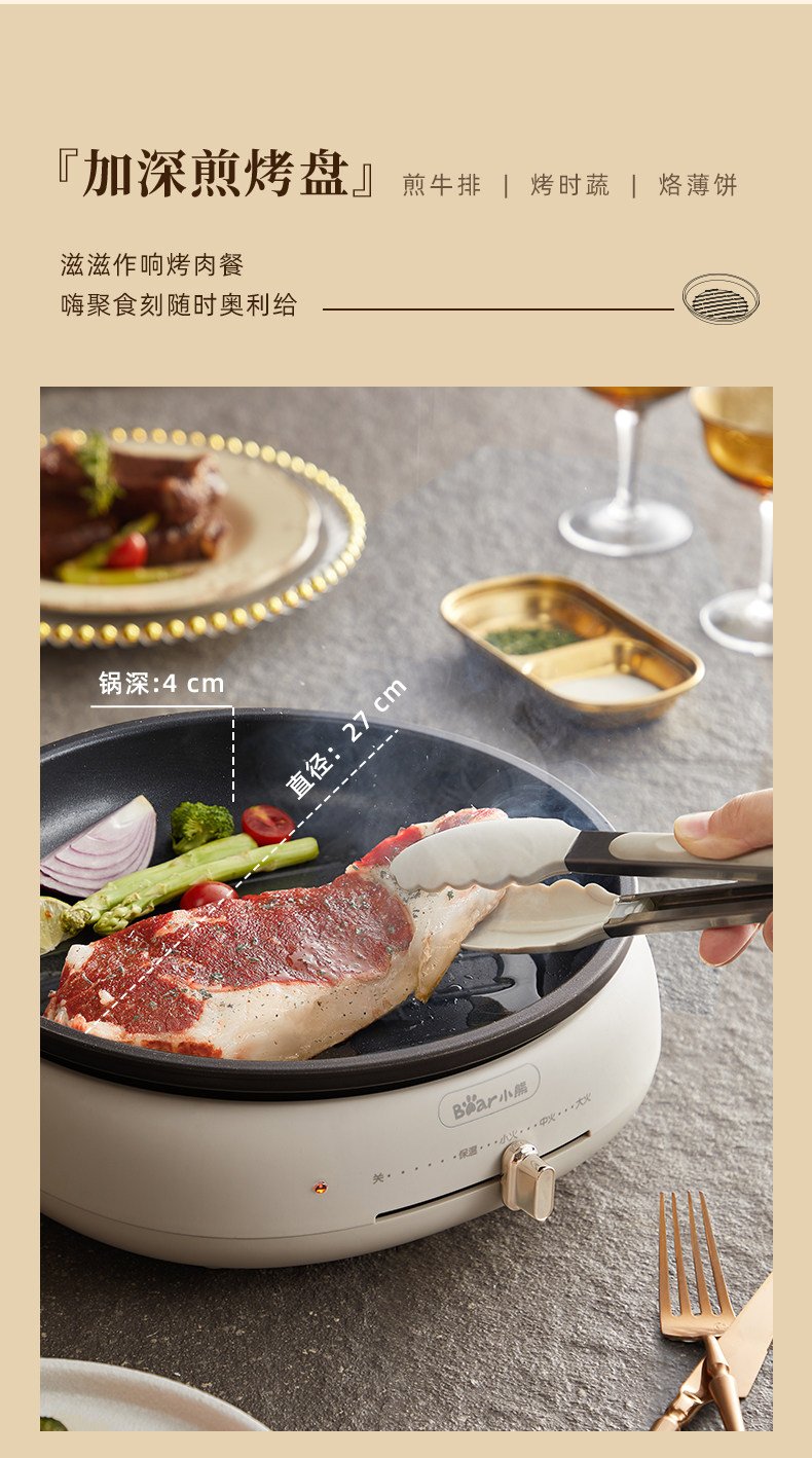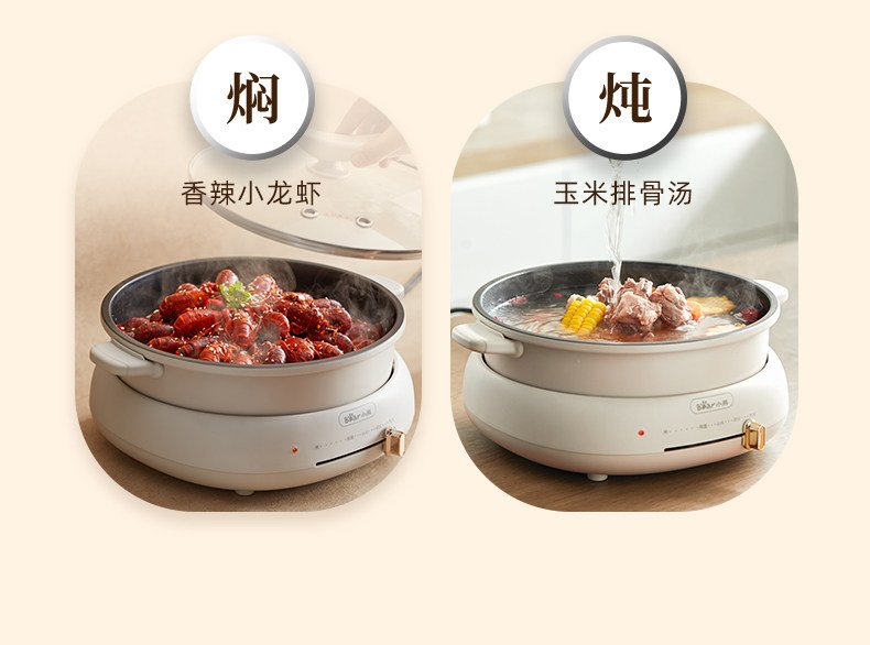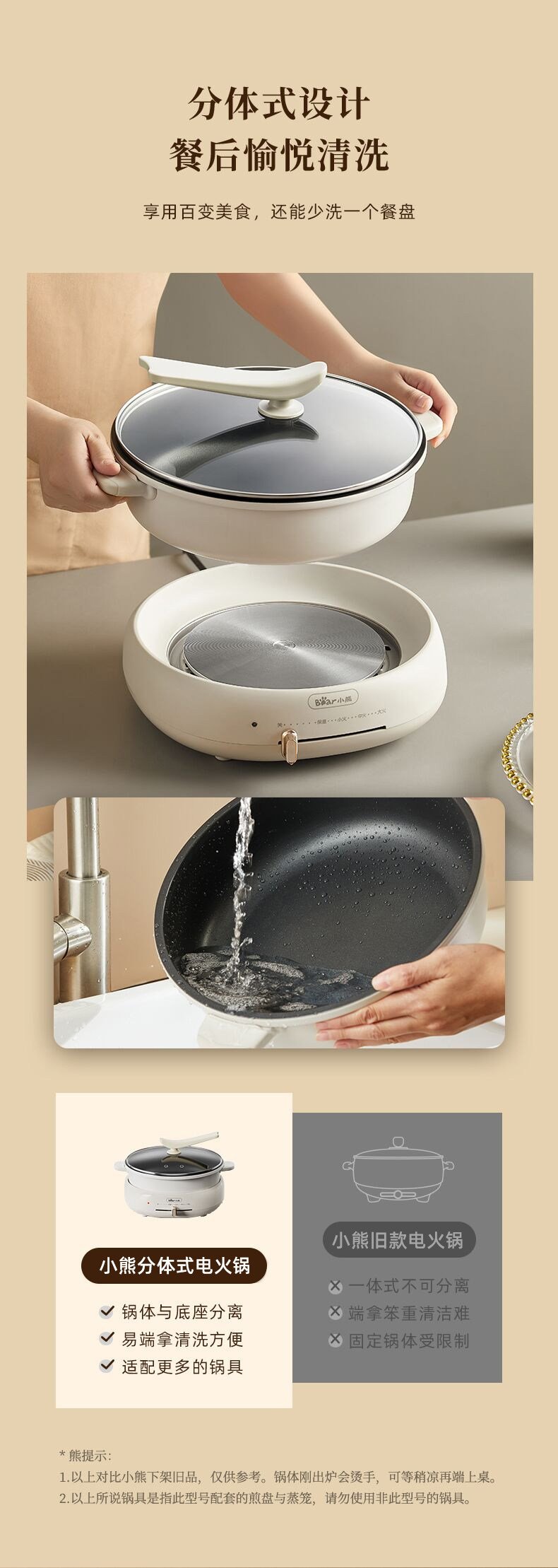 小熊电火锅锅家用多功能分体式可拆洗大电锅电煮锅炒煎炒锅电热锅