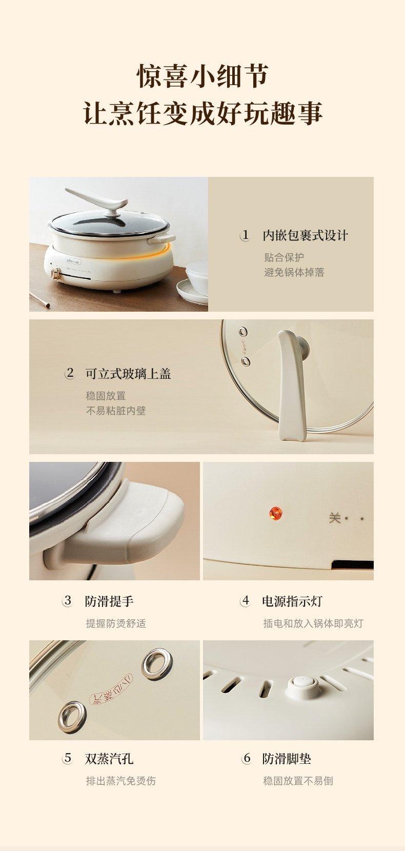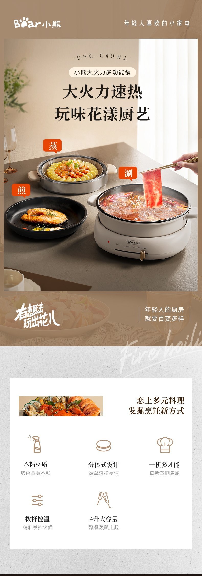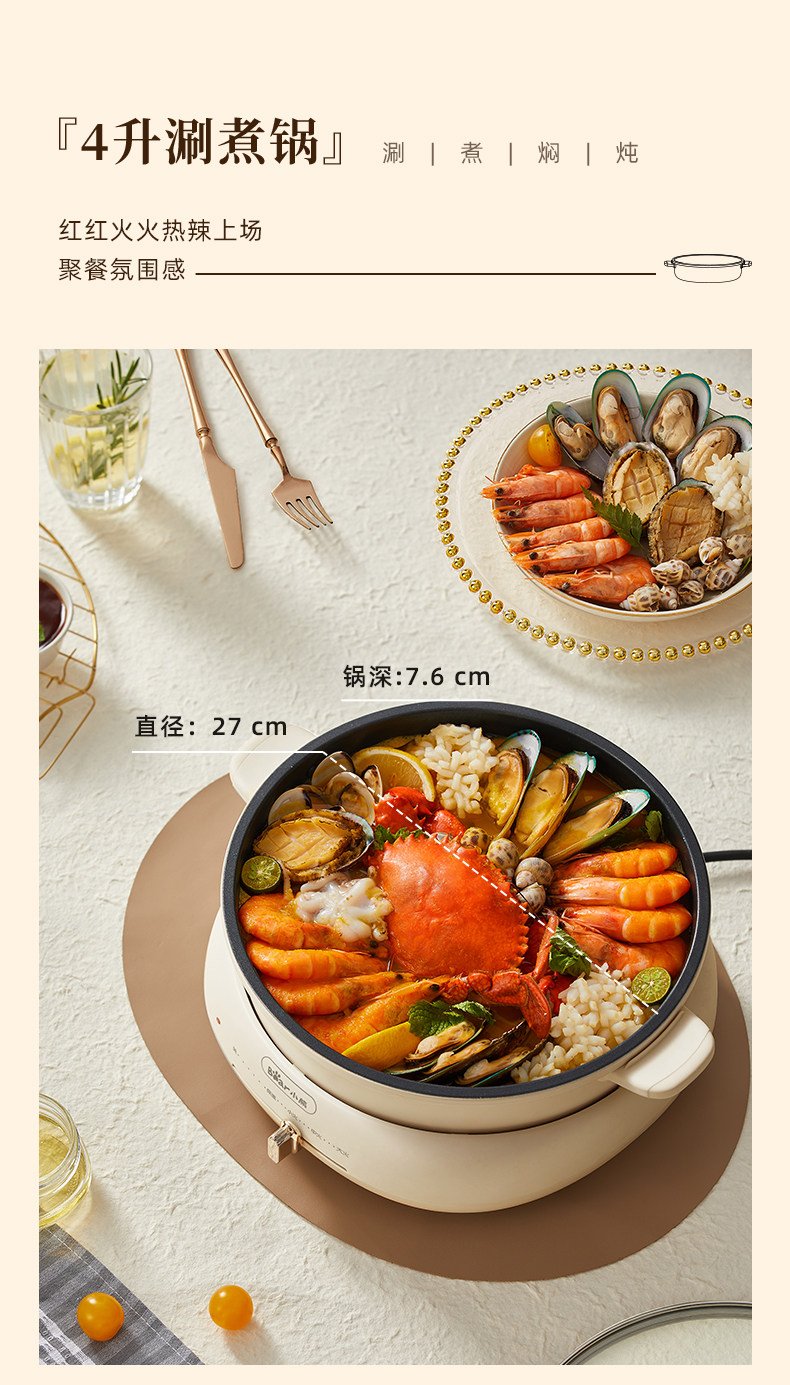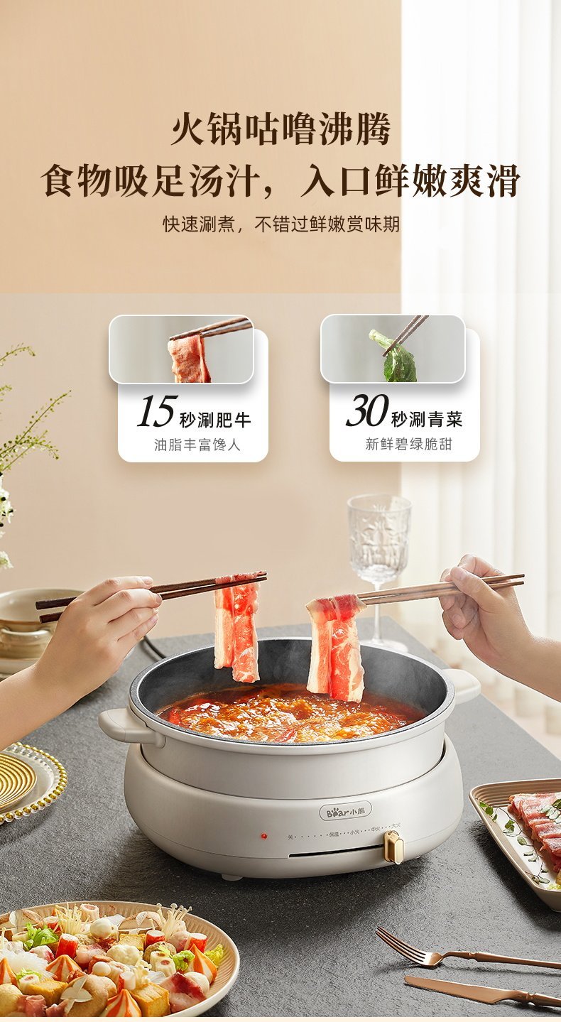 小熊电火锅锅家用多功能分体式可拆洗大电锅电煮锅炒煎炒锅电热锅