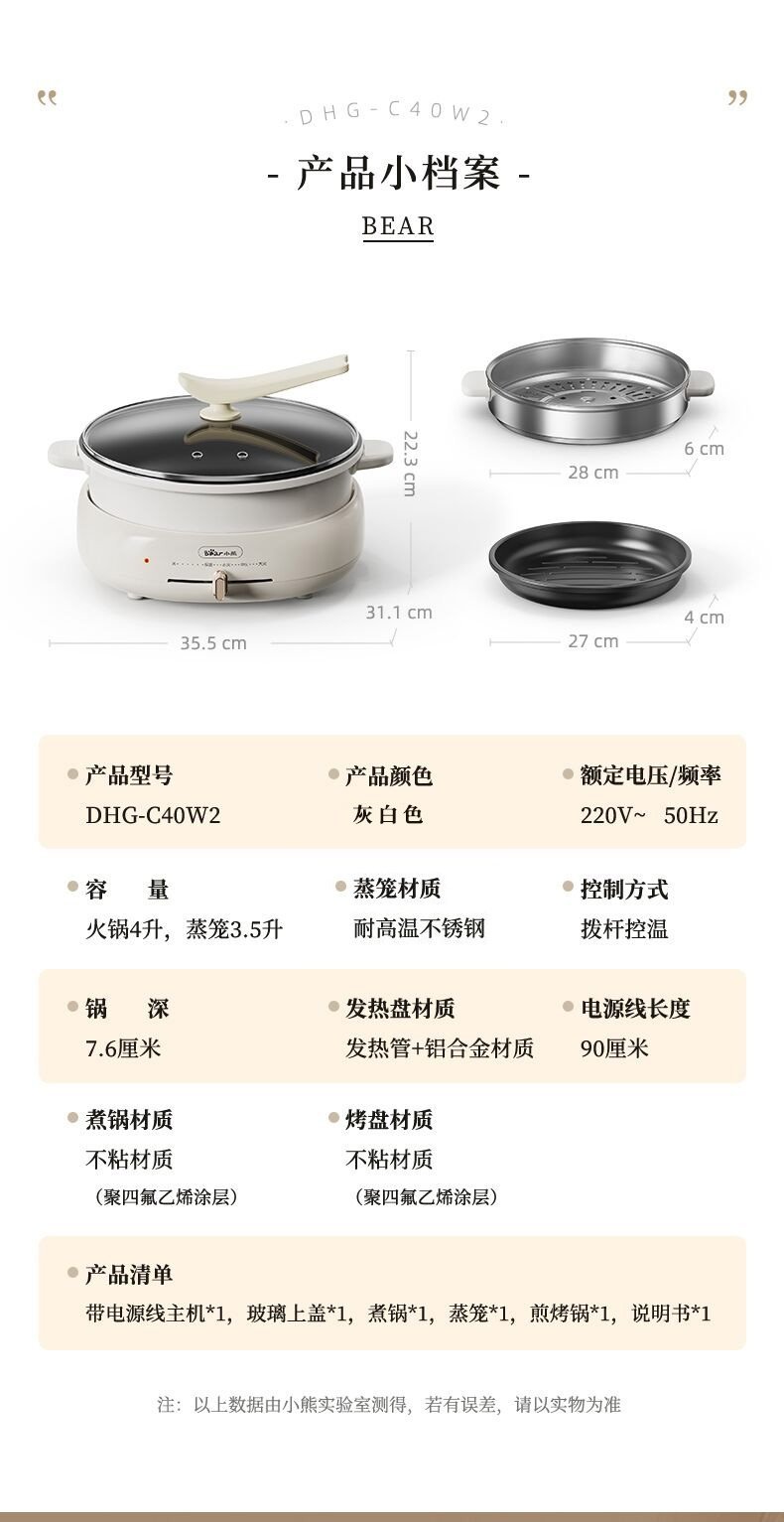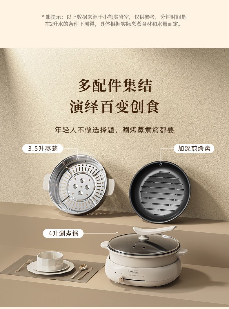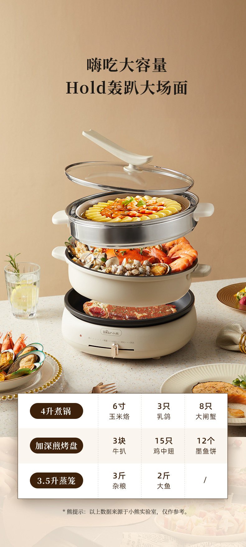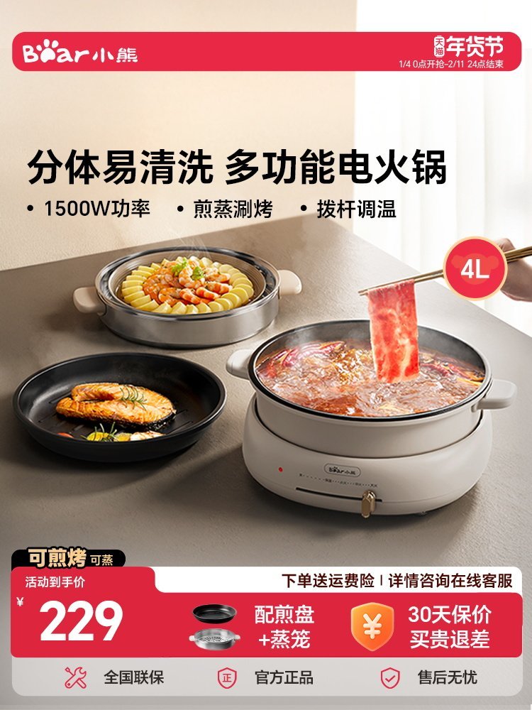 小熊电火锅锅家用多功能分体式可拆洗大电锅电煮锅炒煎炒锅电热锅 数量