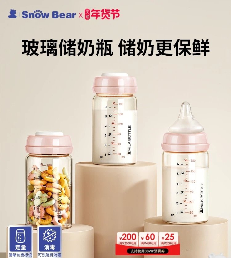 小白熊储奶瓶玻璃冰箱母乳婴儿专用保鲜存奶储奶罐储奶瓶可加热