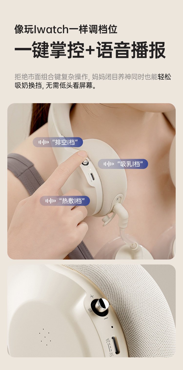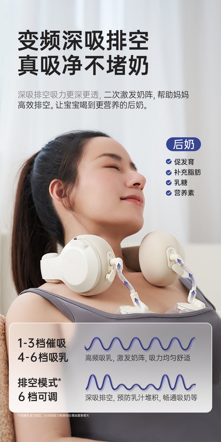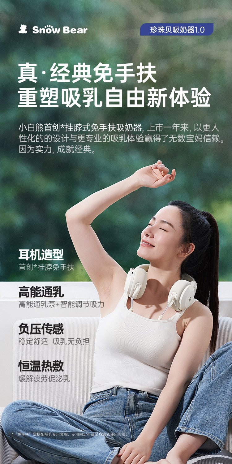 【珍珠贝一代】挂脖免手扶+高能通乳+负压传感+6档吸放排空+恒温热敷