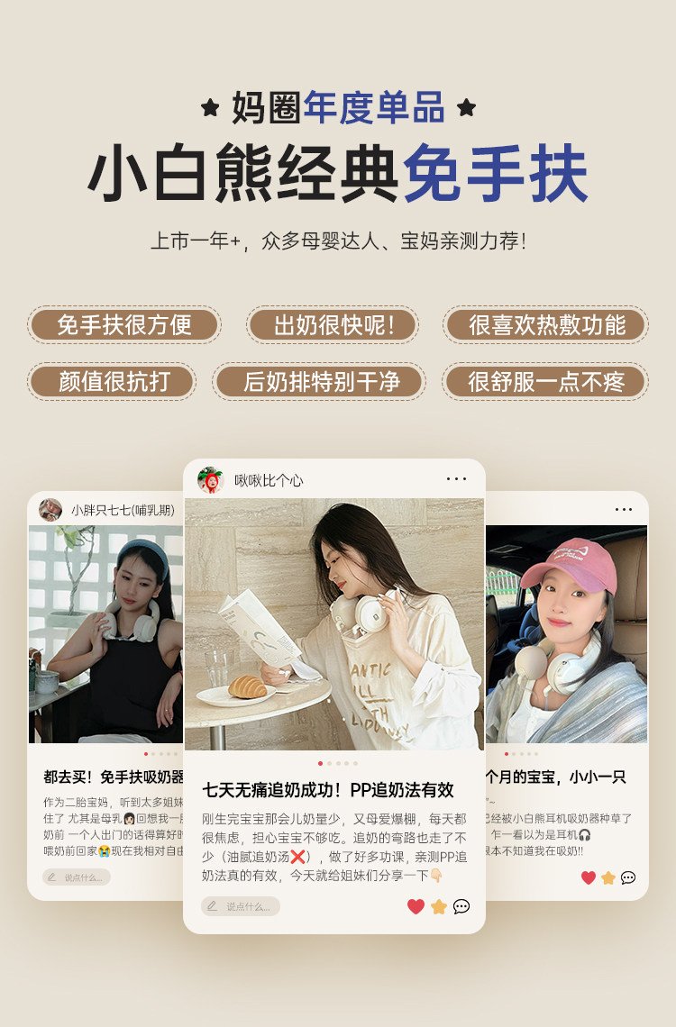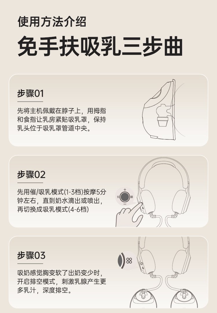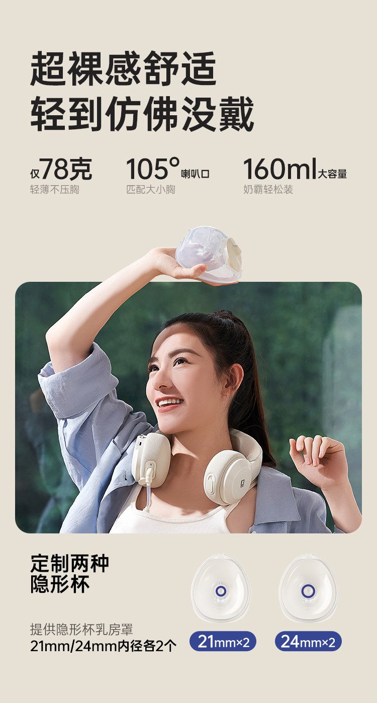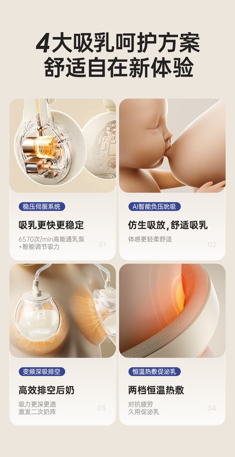 【珍珠贝一代】挂脖免手扶+高能通乳+负压传感+6档吸放排空+恒温热敷