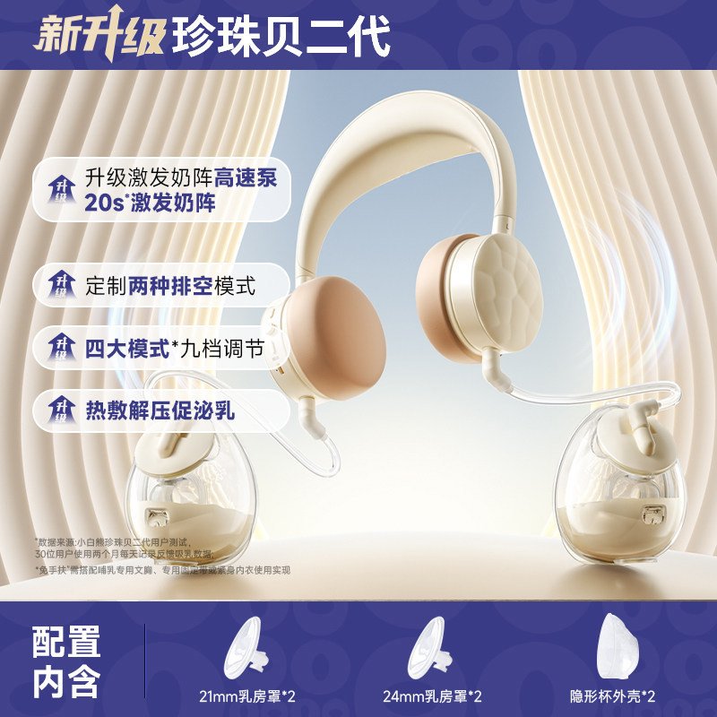 【新•20s激发奶阵 珍珠贝二代】仿生催乳高频泵+负压传感缓解疼痛+9档双排空护乳+泌乳顾问+恒温热敷