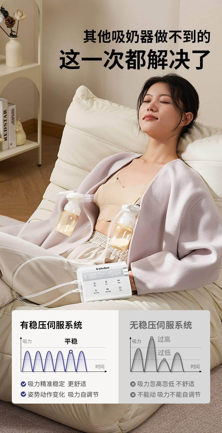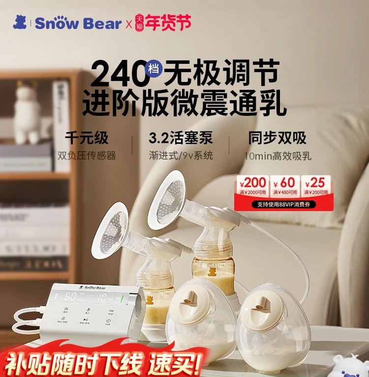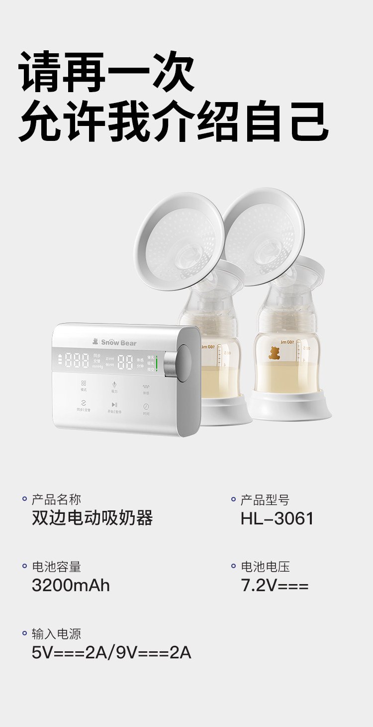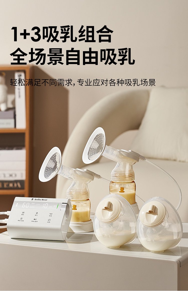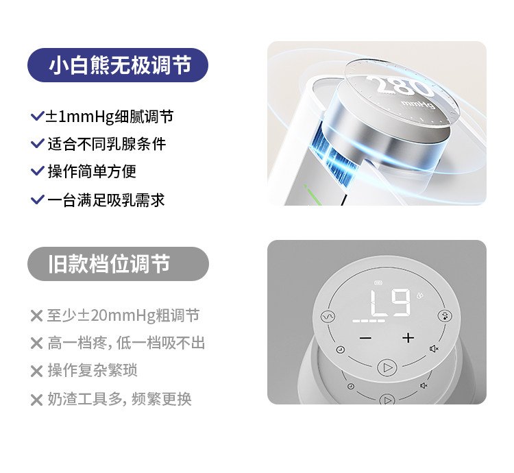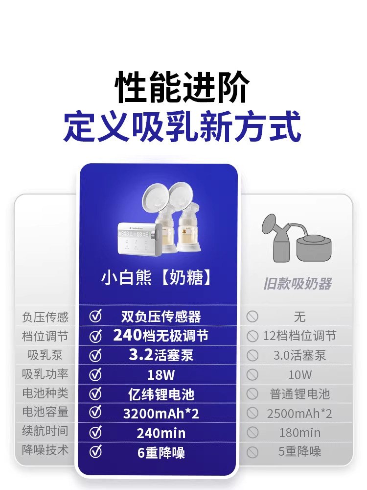 小白熊奶糖无极吸奶器微震双边免手扶无痛全自动吸乳电动静音便携