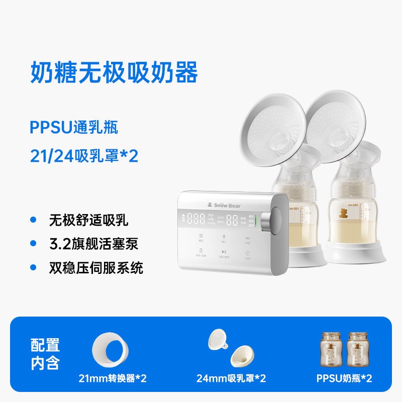 小白熊奶糖无极吸奶器微震双边免手扶无痛全自动吸乳电动静音便携 数量