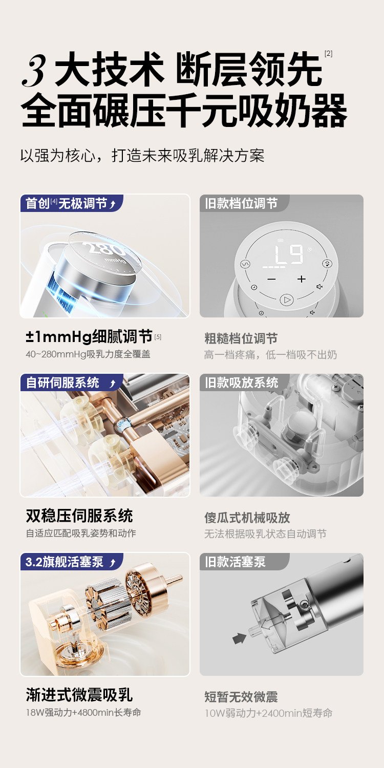 【240档无极舒适吸乳+3.2旗舰活塞泵+6重降噪】无极吸奶器+通乳瓶