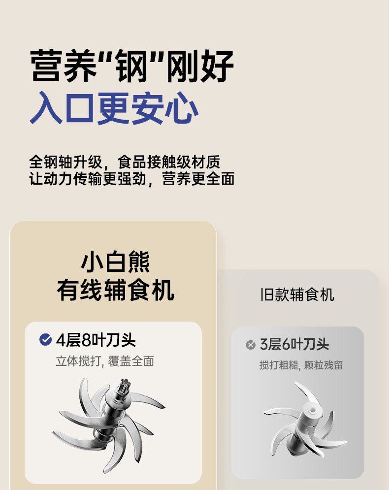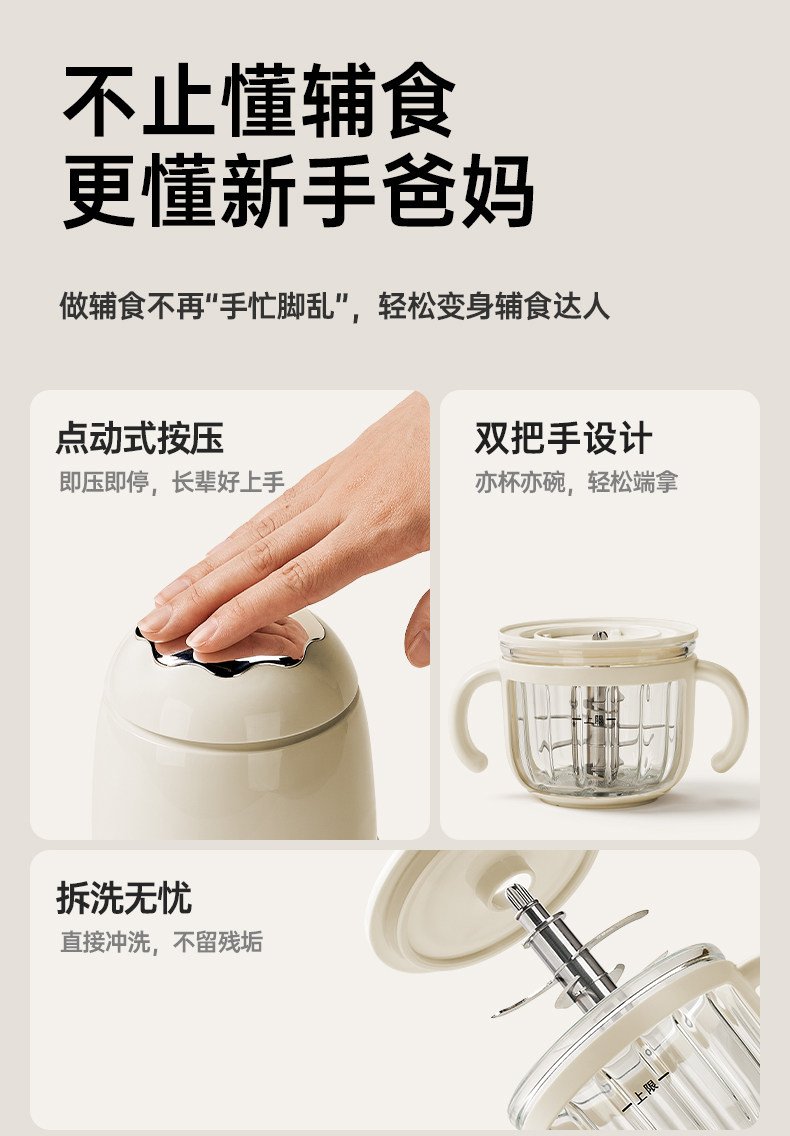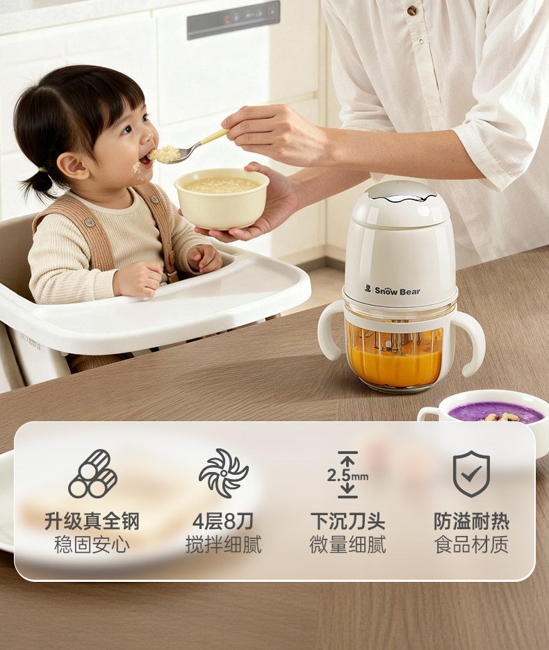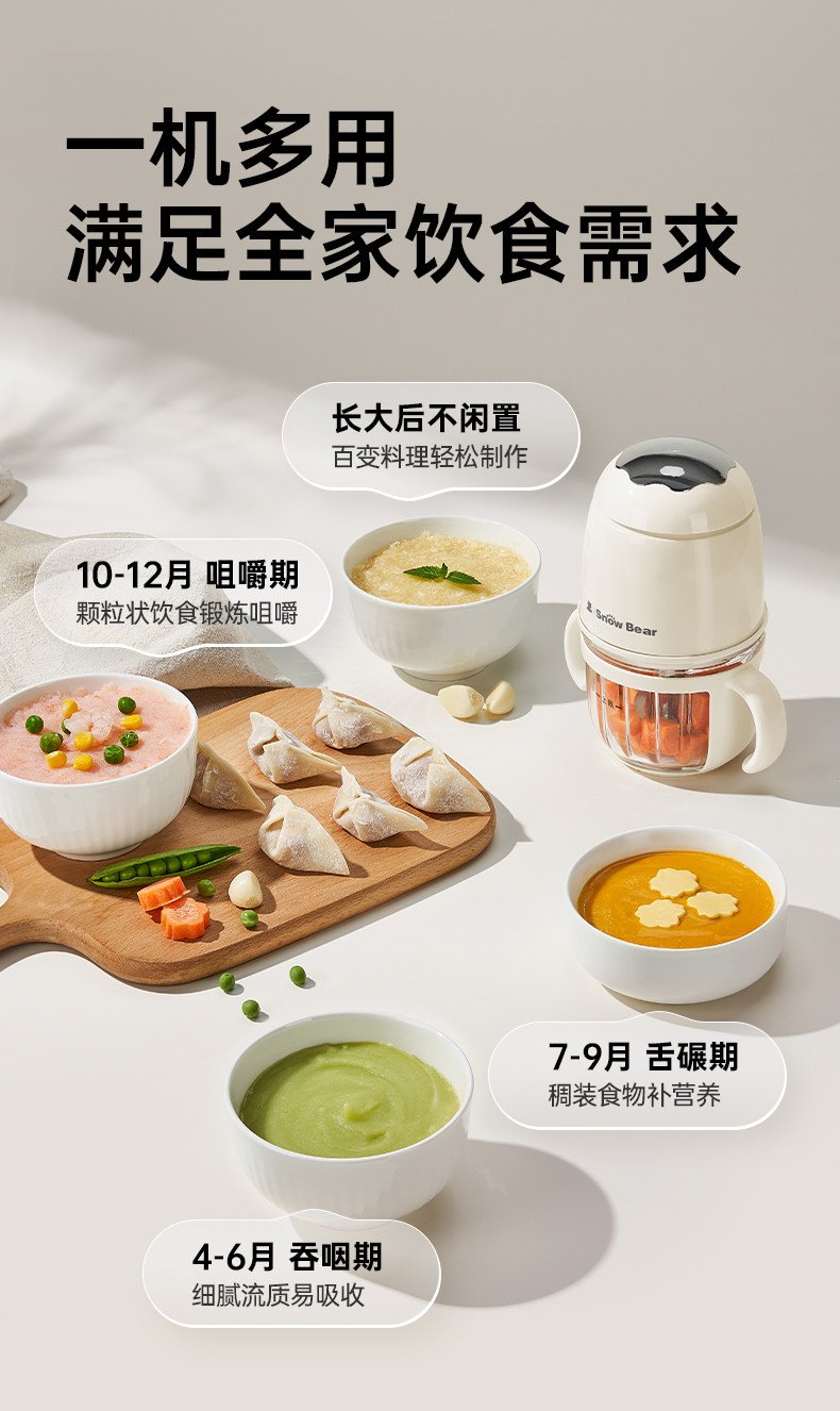 小白熊辅食机婴儿宝宝料理机搅拌机婴幼儿多功能研磨肉泥专用工具 数量