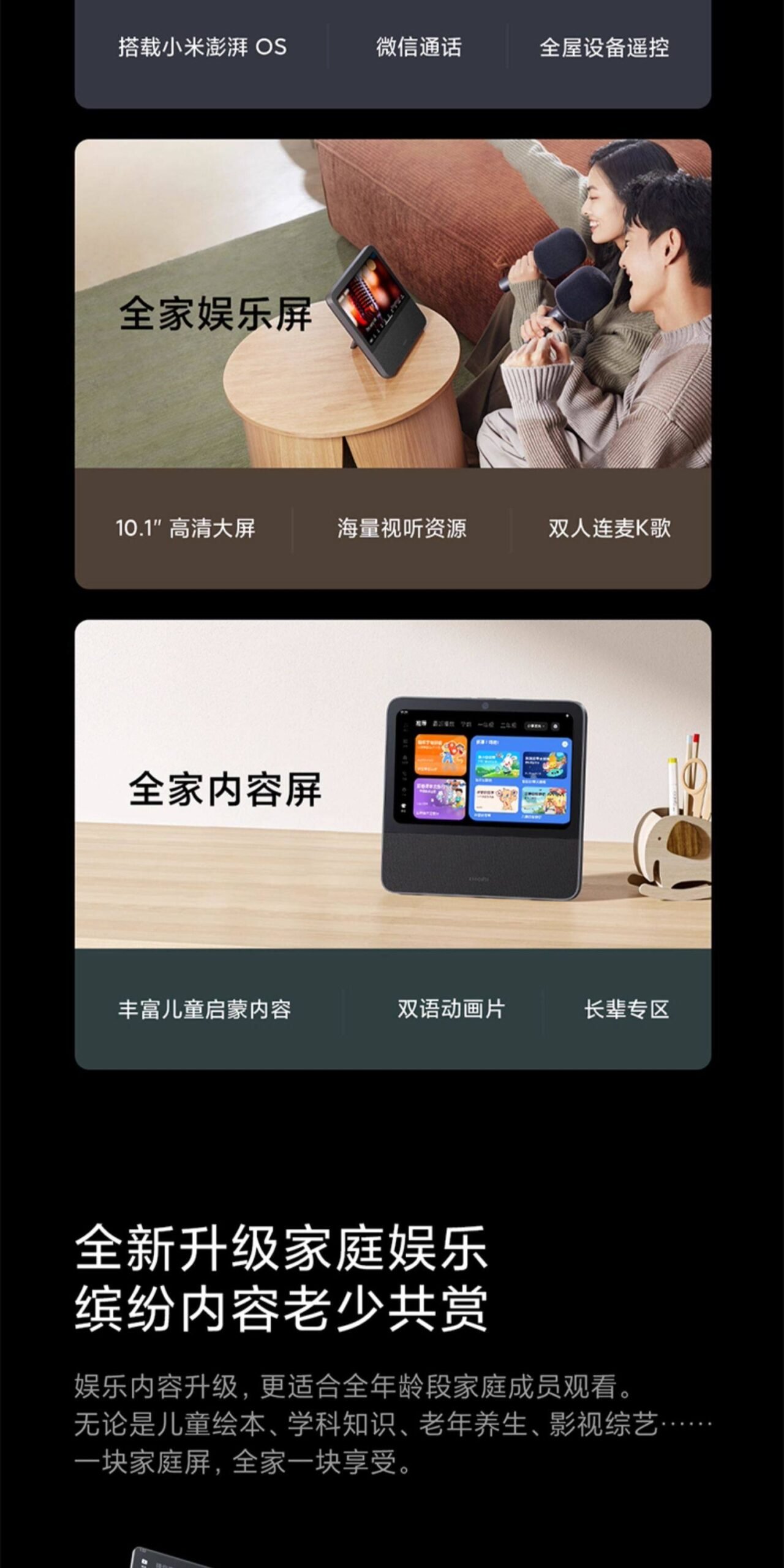 小米智能家庭屏智能音箱小爱同学中控屏10.1英寸微信通话儿童早教