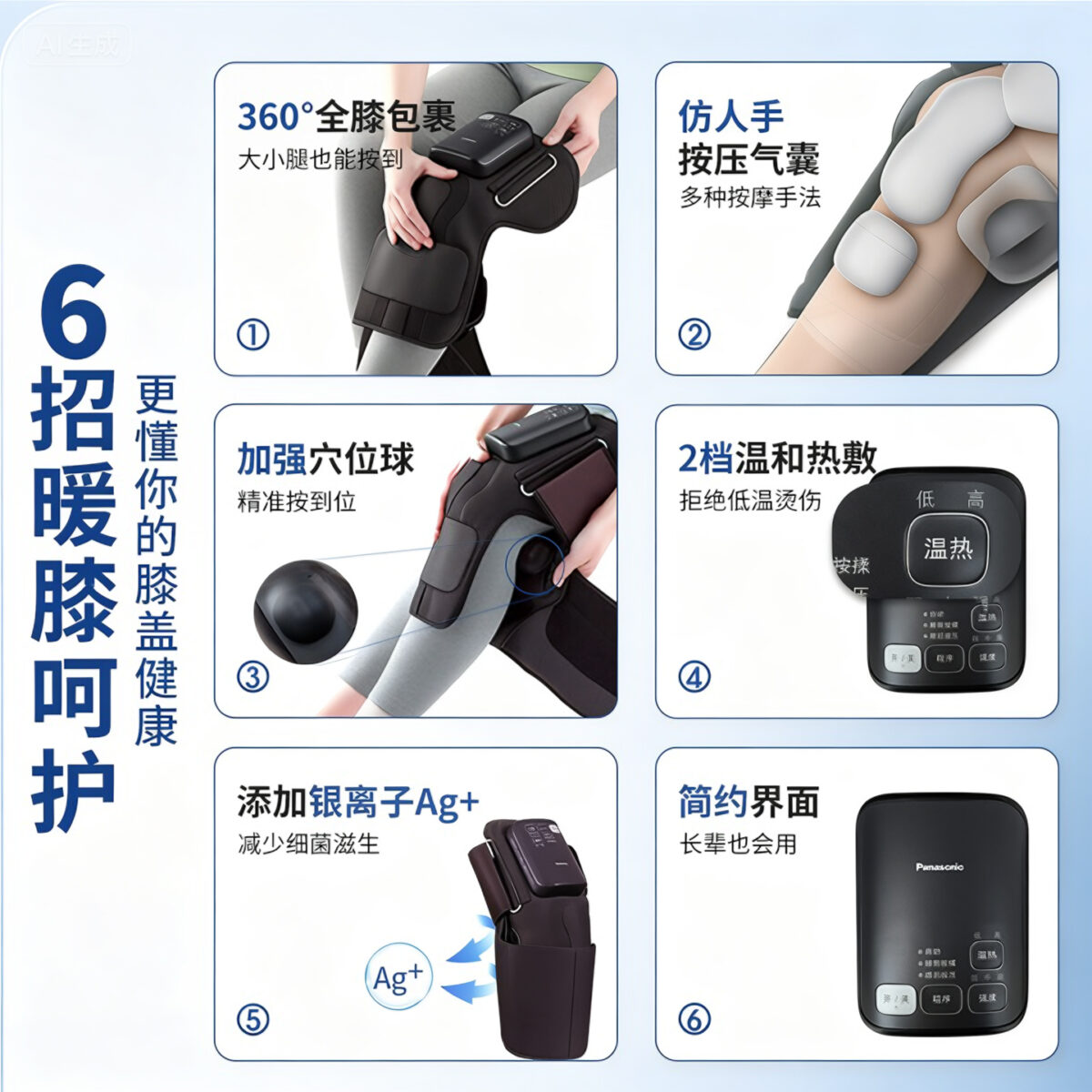 日本松下膝盖按摩仪运动恢复热敷理疗器加热护膝揉捏膝关节仪RJ50