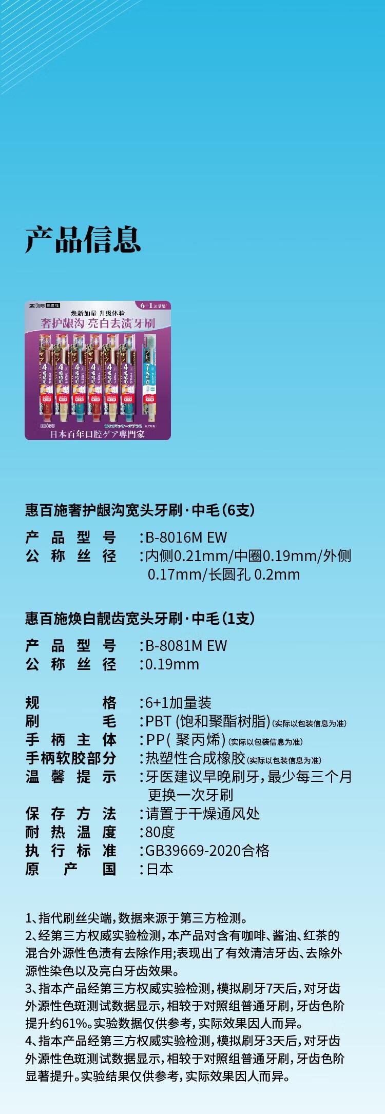 日本进口 奢护龈沟宽头牙刷中毛(6支)+焕白靓齿宽头牙刷中毛(1支) 中毛 7支 数量
