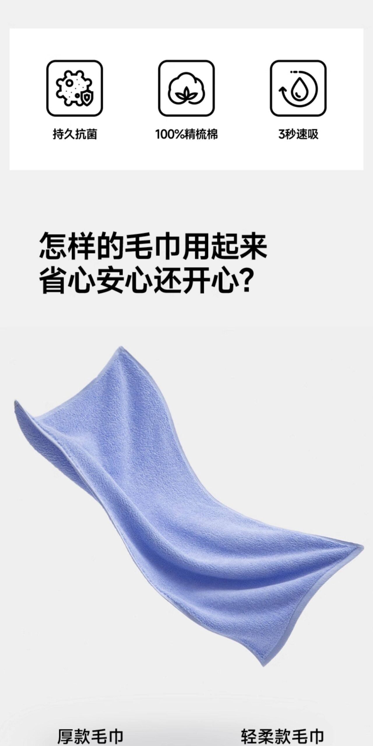 最生活密封毛巾纯棉洗脸家用男女洗澡加厚吸水不易掉毛抗菌新疆棉 数量