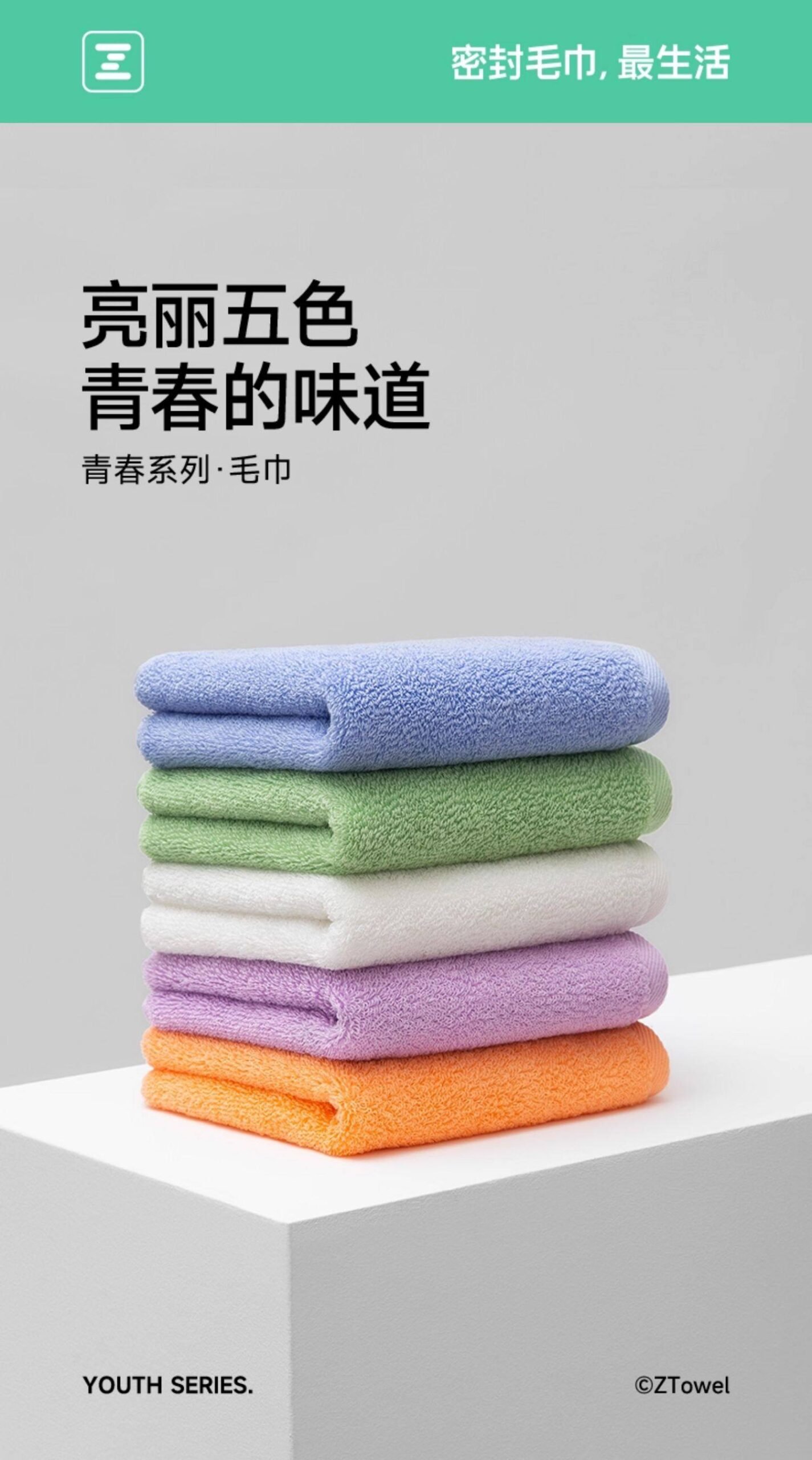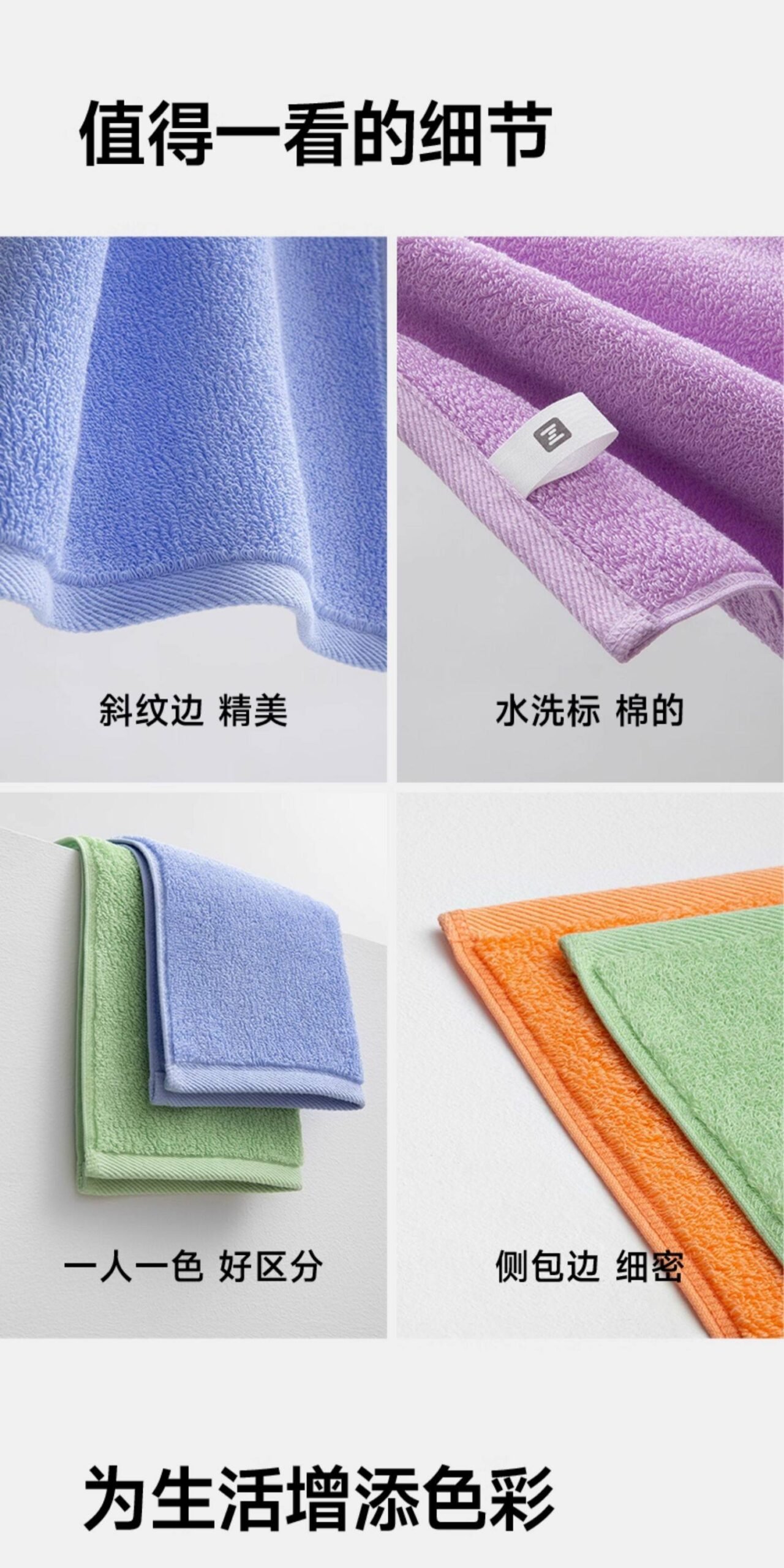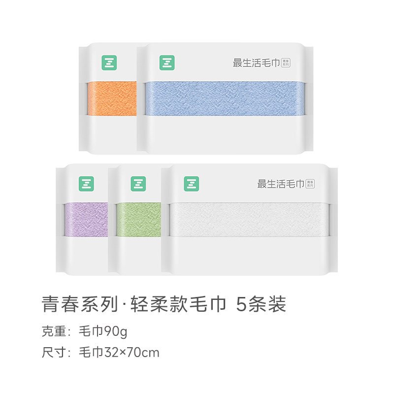 轻柔款 毛巾5条装【白蓝绿紫橘】